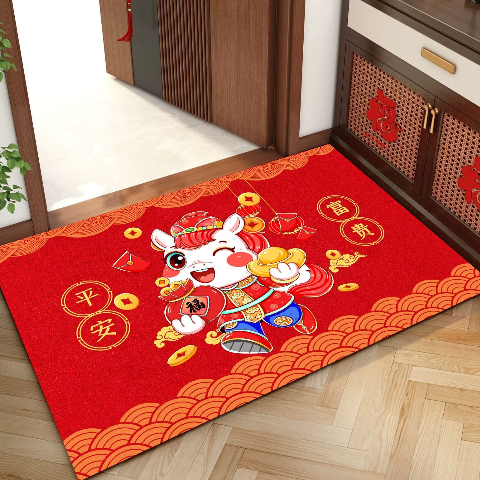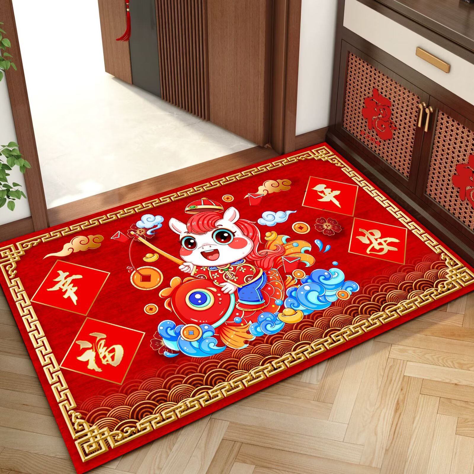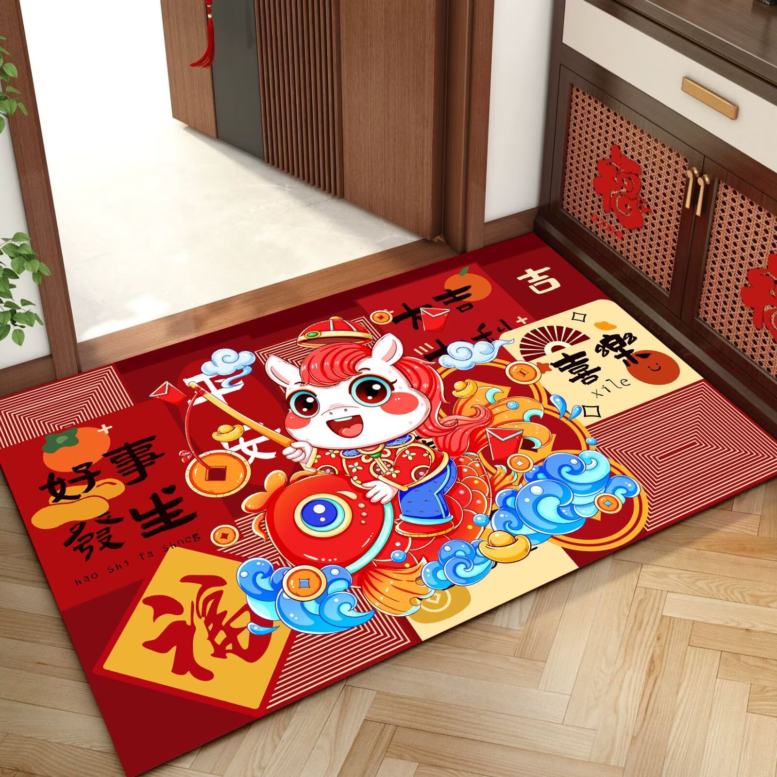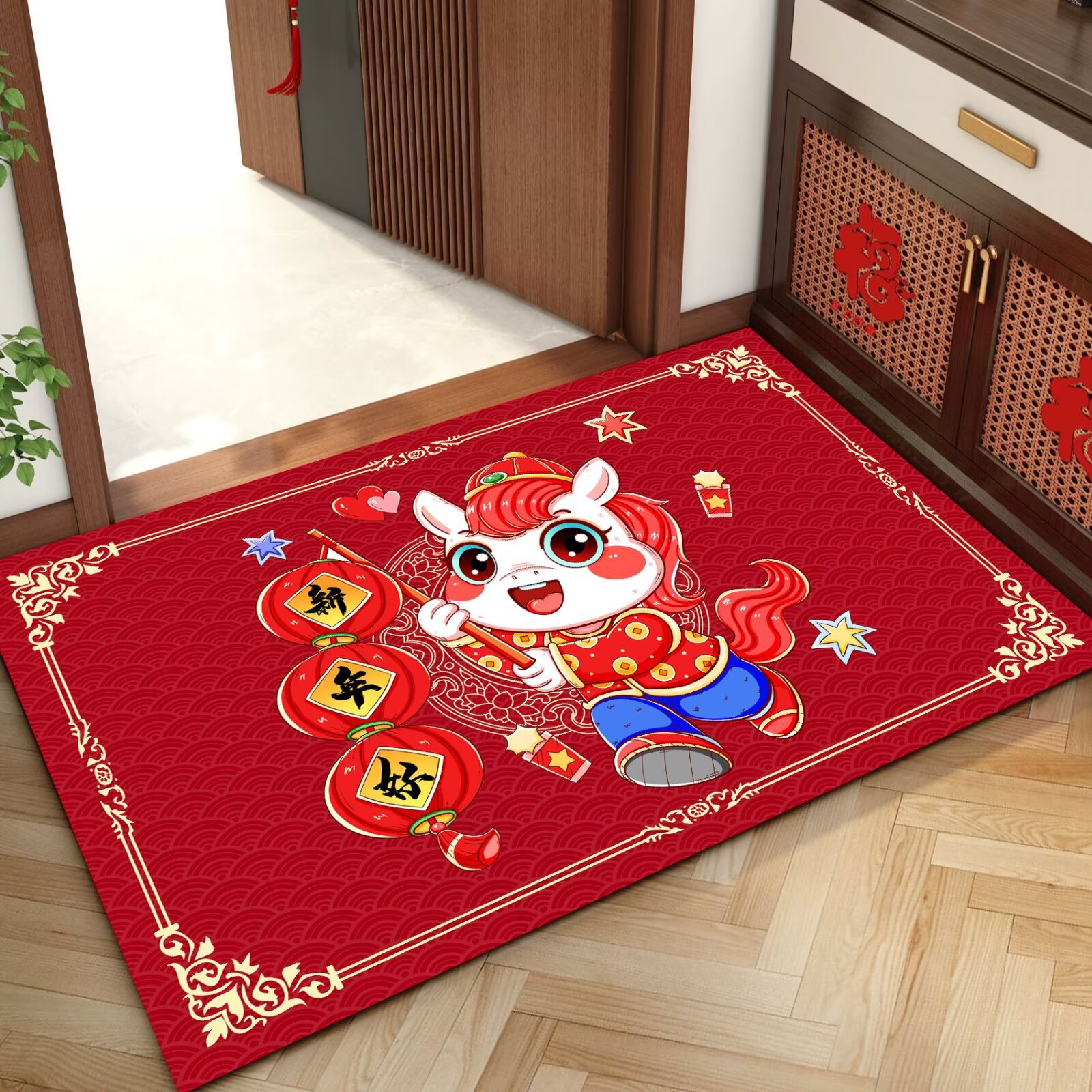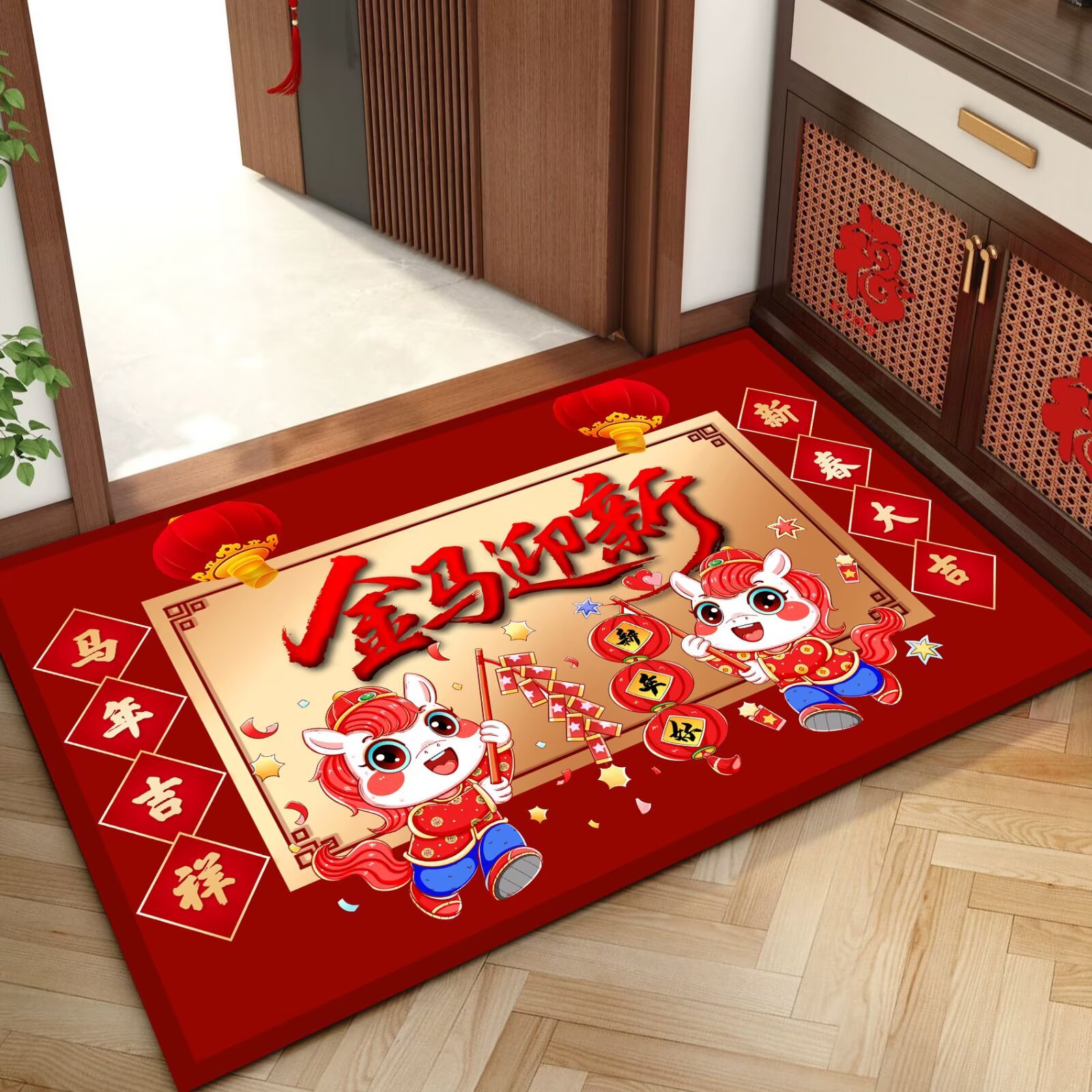 말의 해 입구 문 매트 만화 좋은 의미 홈 입구 발 매트 빨간색 축제 분위기 매트 대리 가능스토어 가기