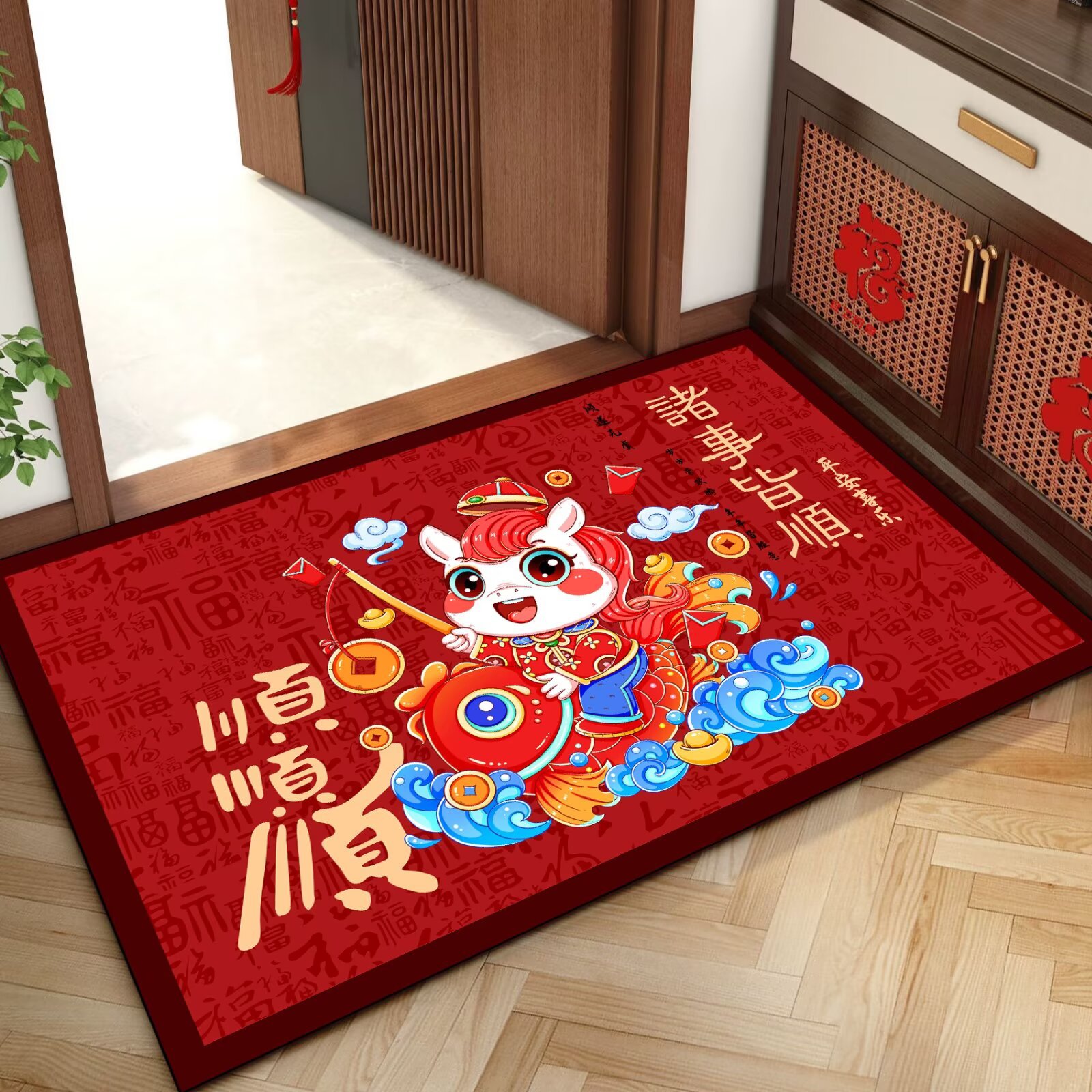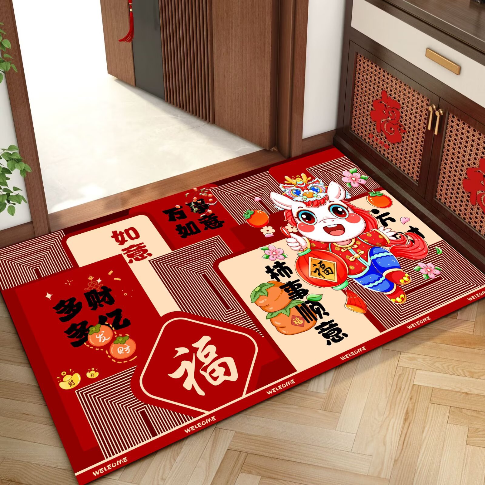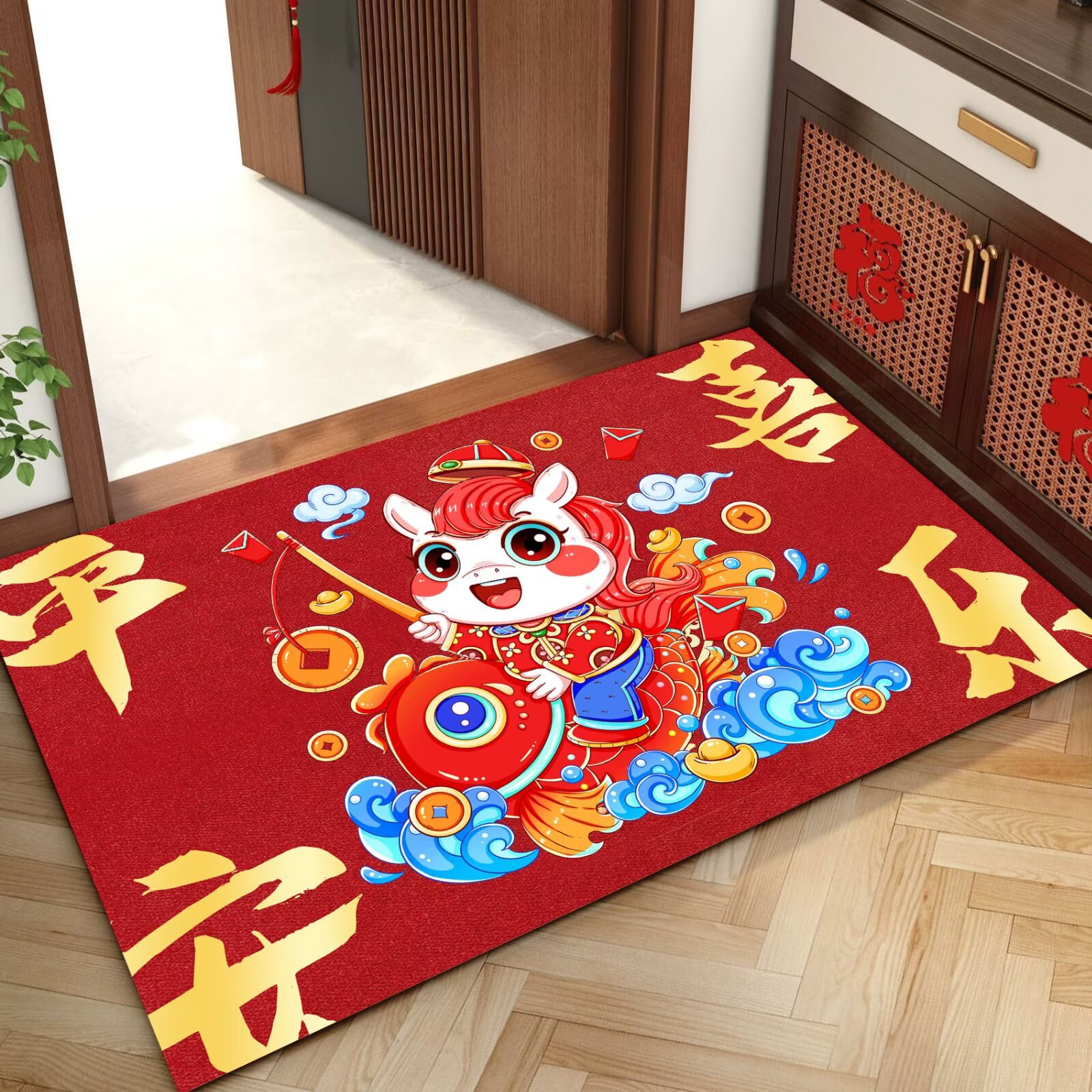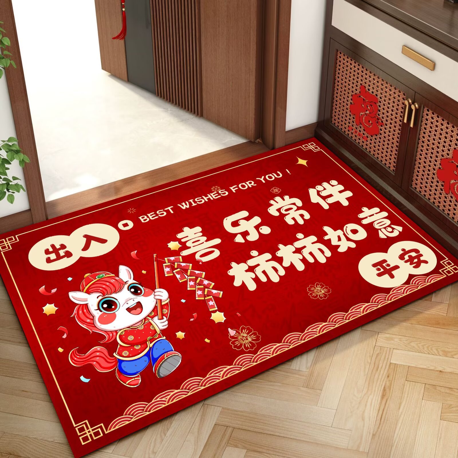 말의 해 입구 문 매트 만화 좋은 의미 홈 입구 발 매트 빨간색 축제 분위기 매트 대리 가능스토어 가기