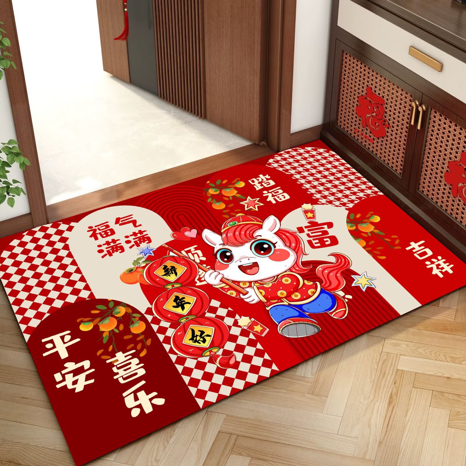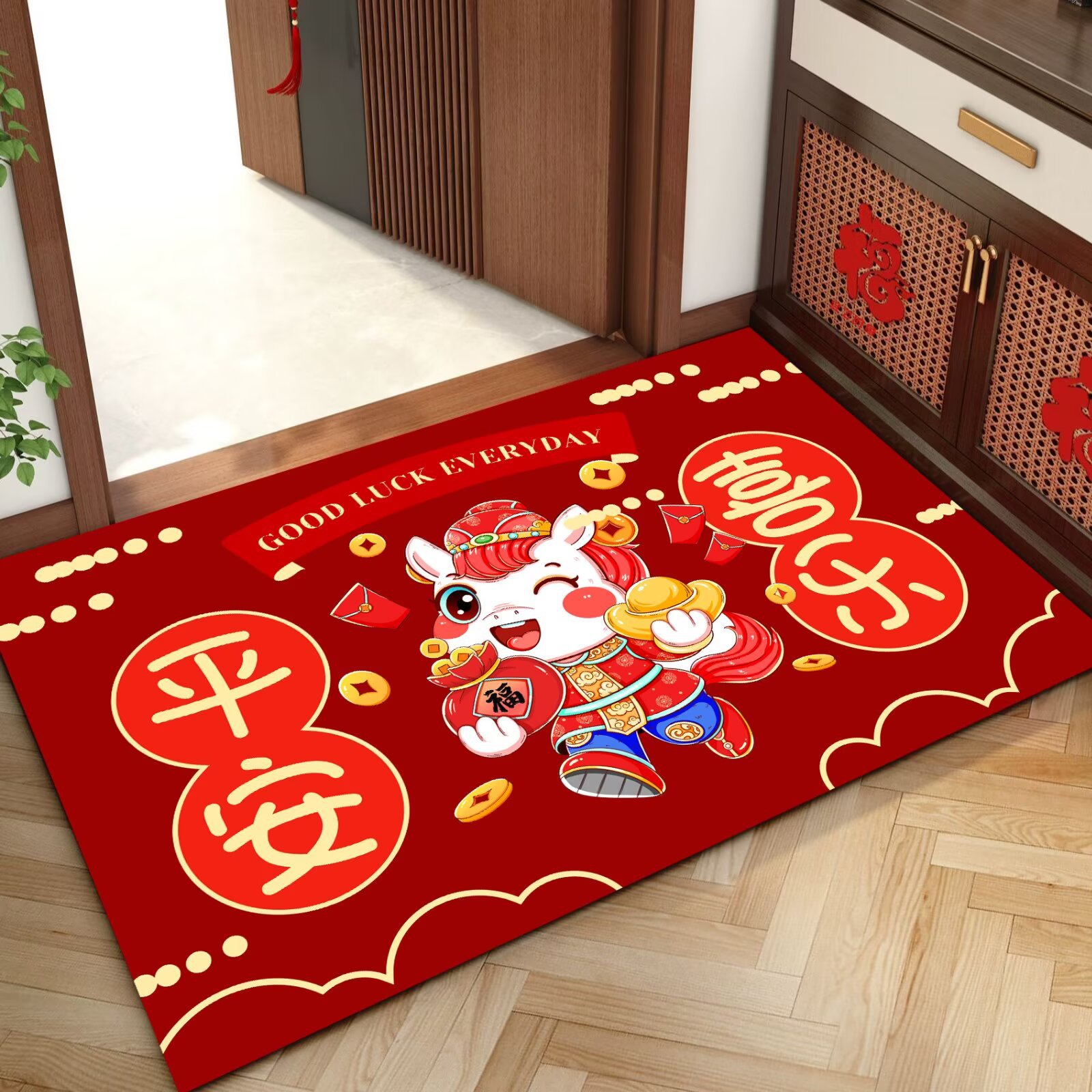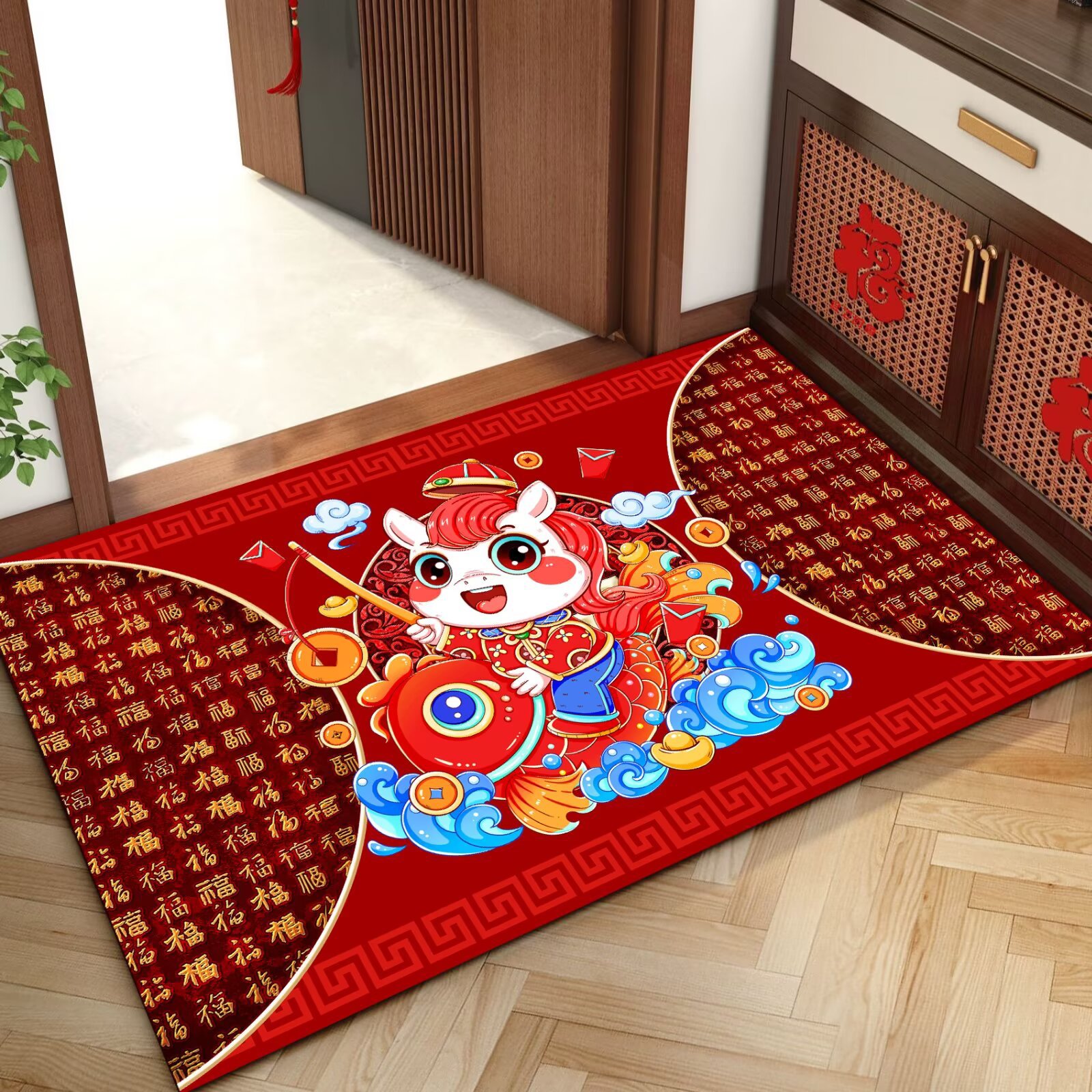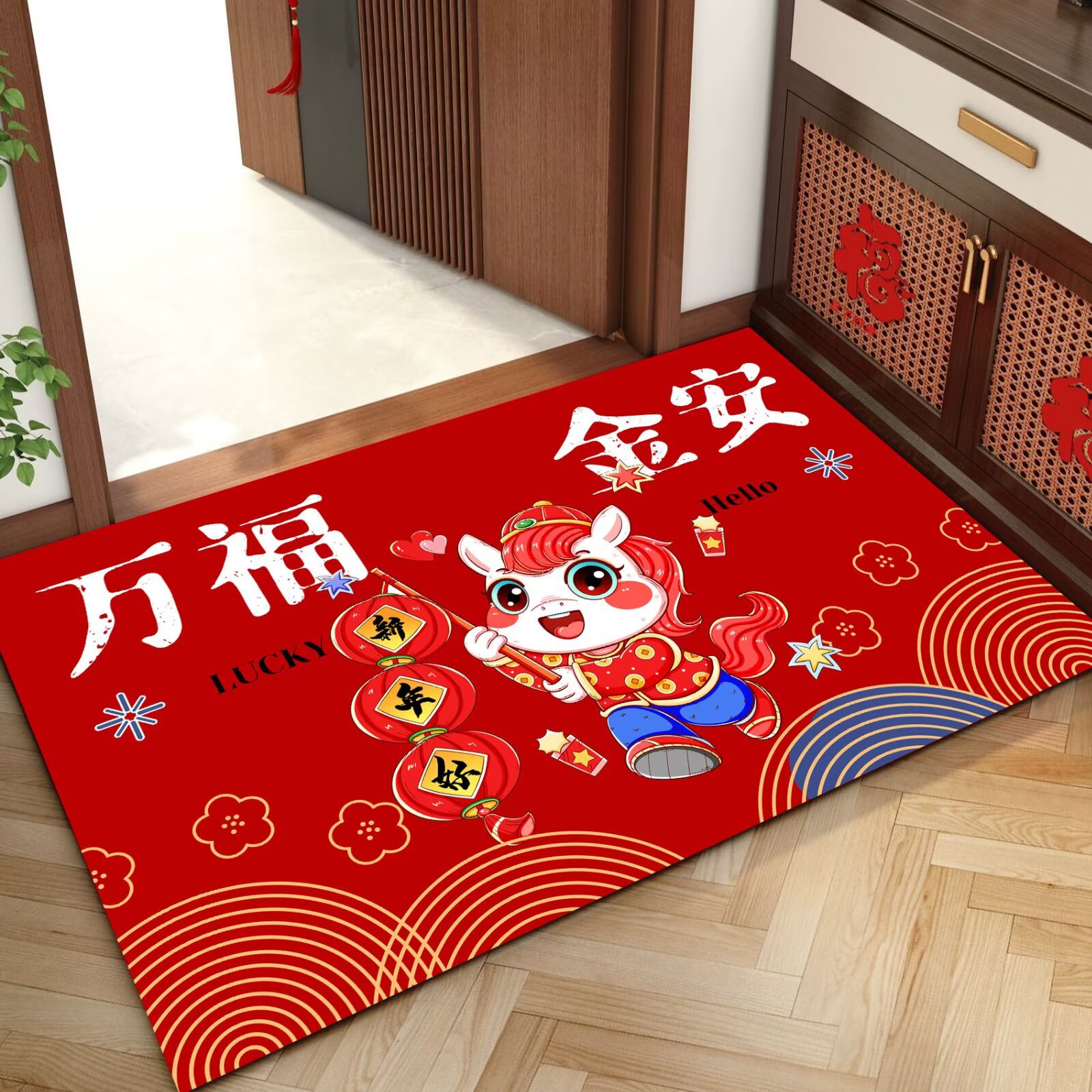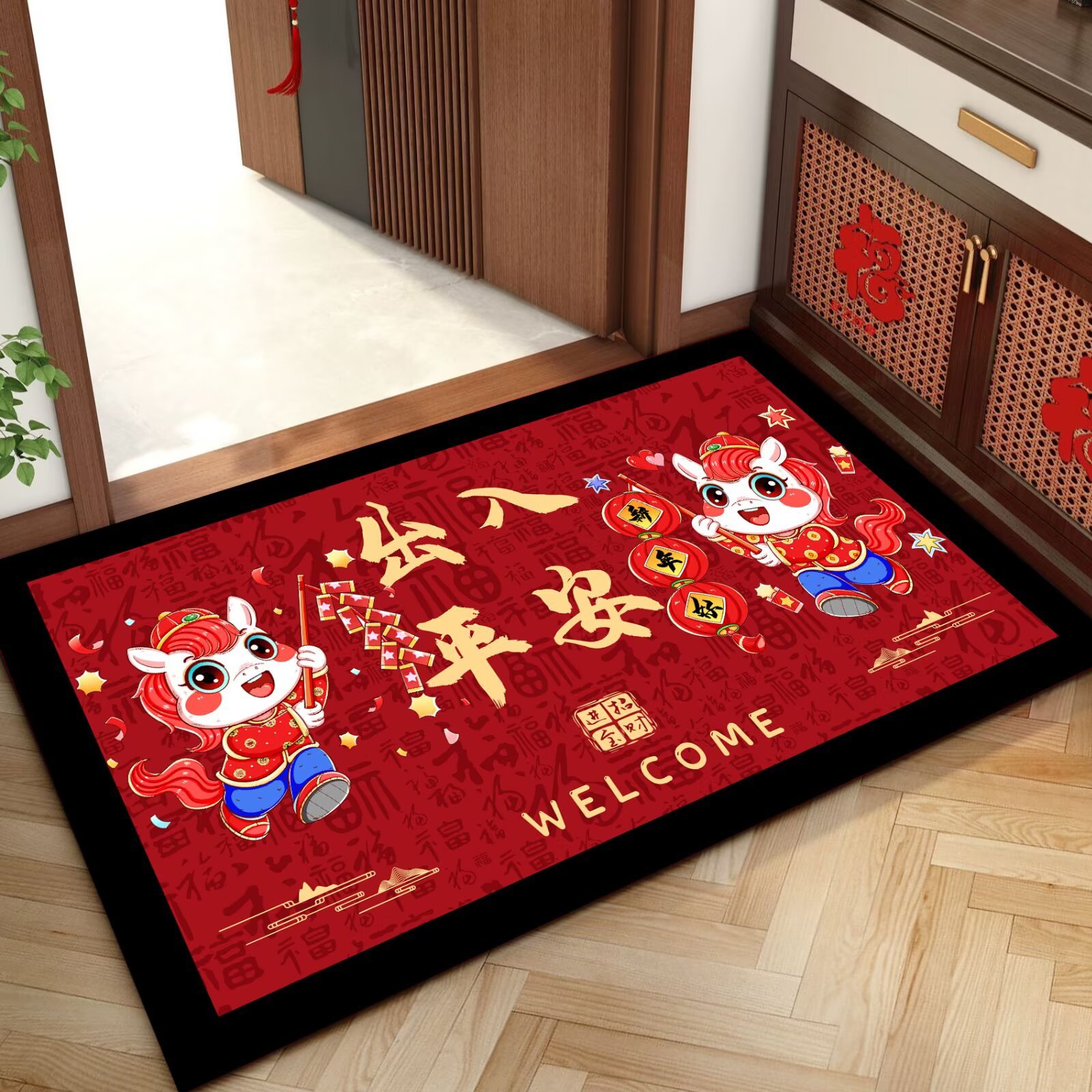 말의 해 입구 문 매트 만화 좋은 의미 홈 입구 발 매트 빨간색 축제 분위기 매트 대리 가능스토어 가기