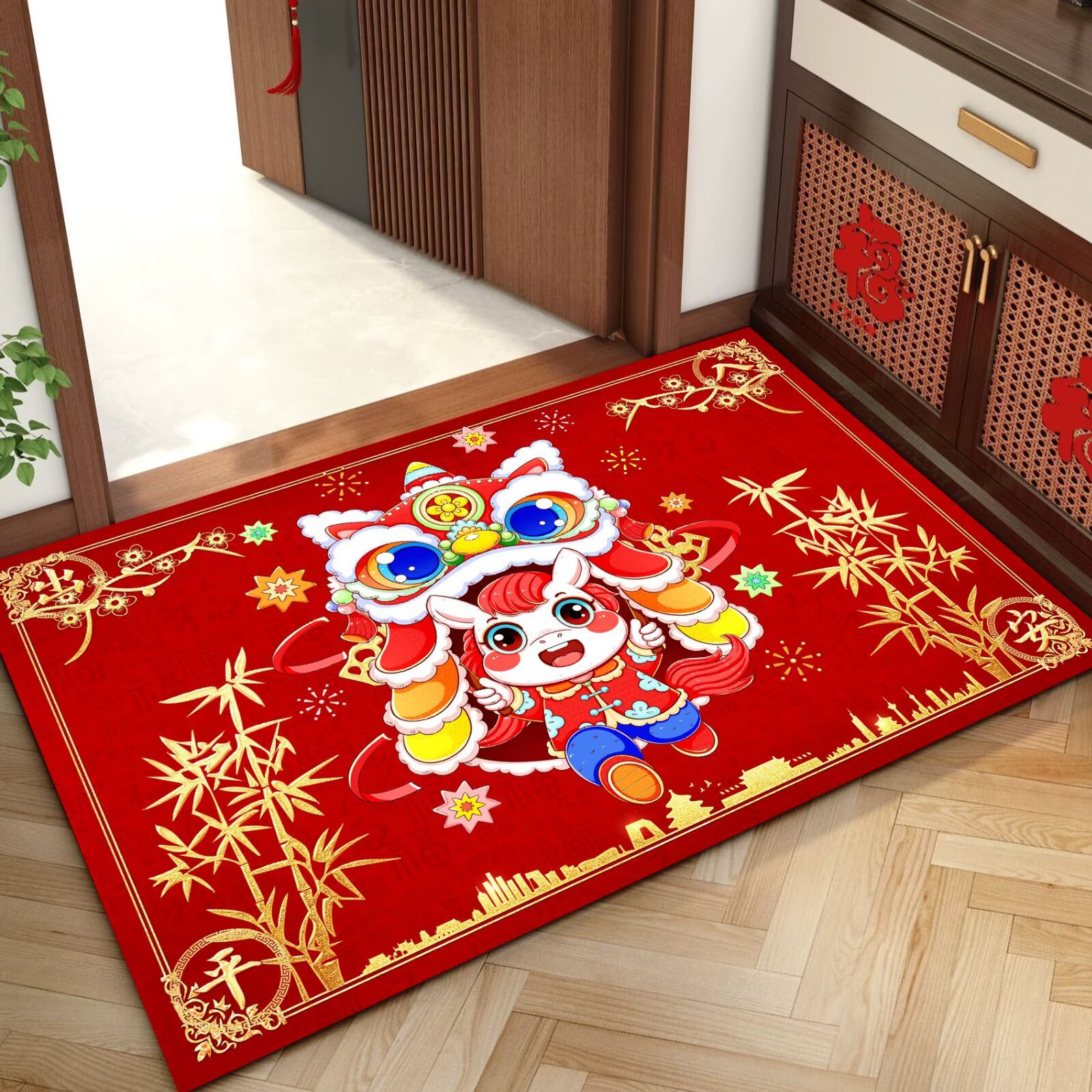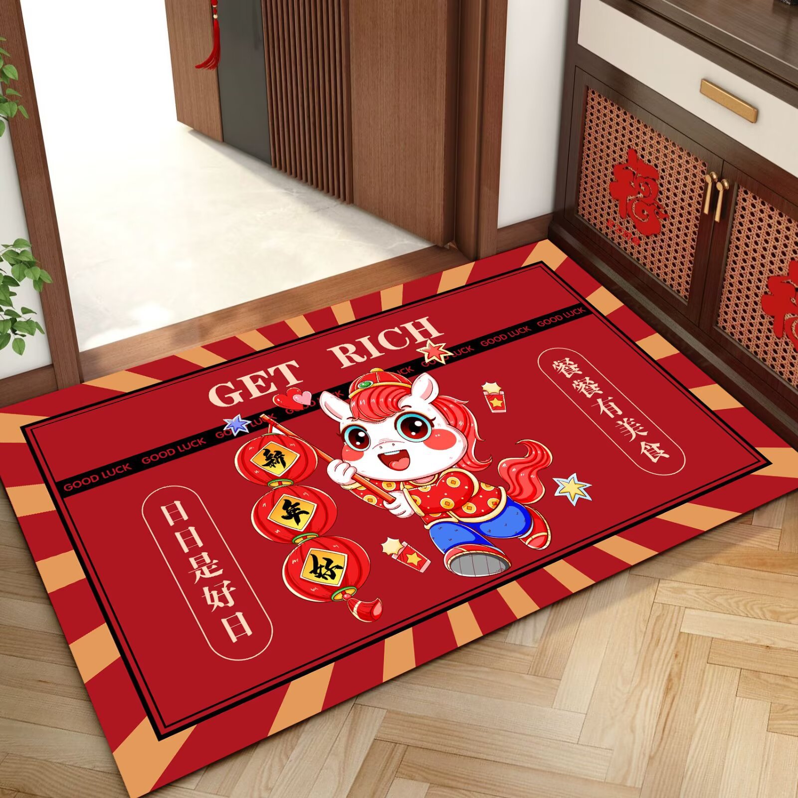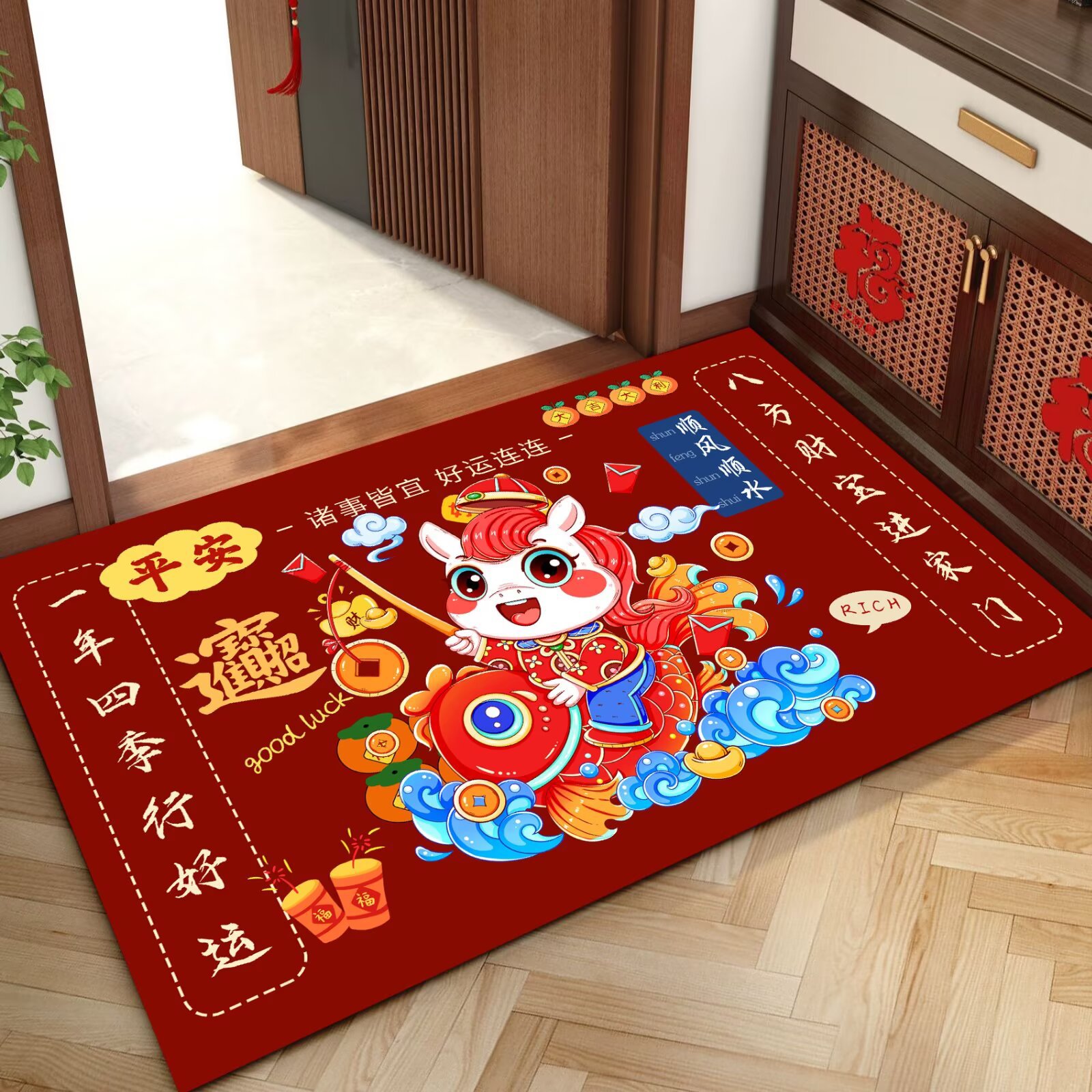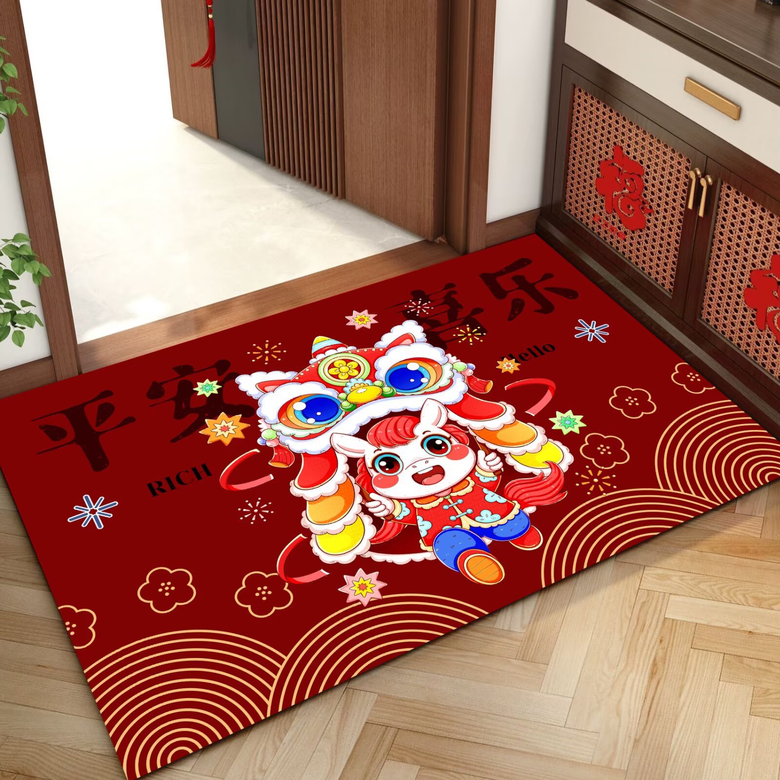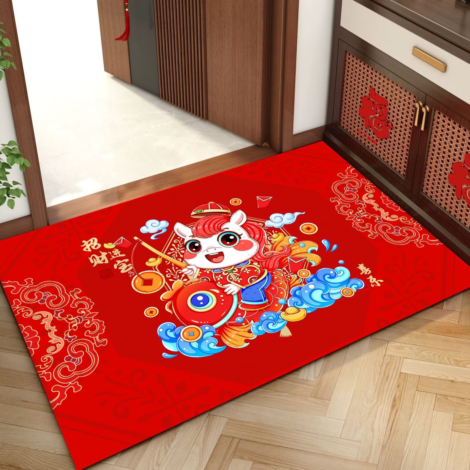 말의 해 입구 문 매트 만화 좋은 의미 홈 입구 발 매트 빨간색 축제 분위기 매트 대리 가능스토어 가기