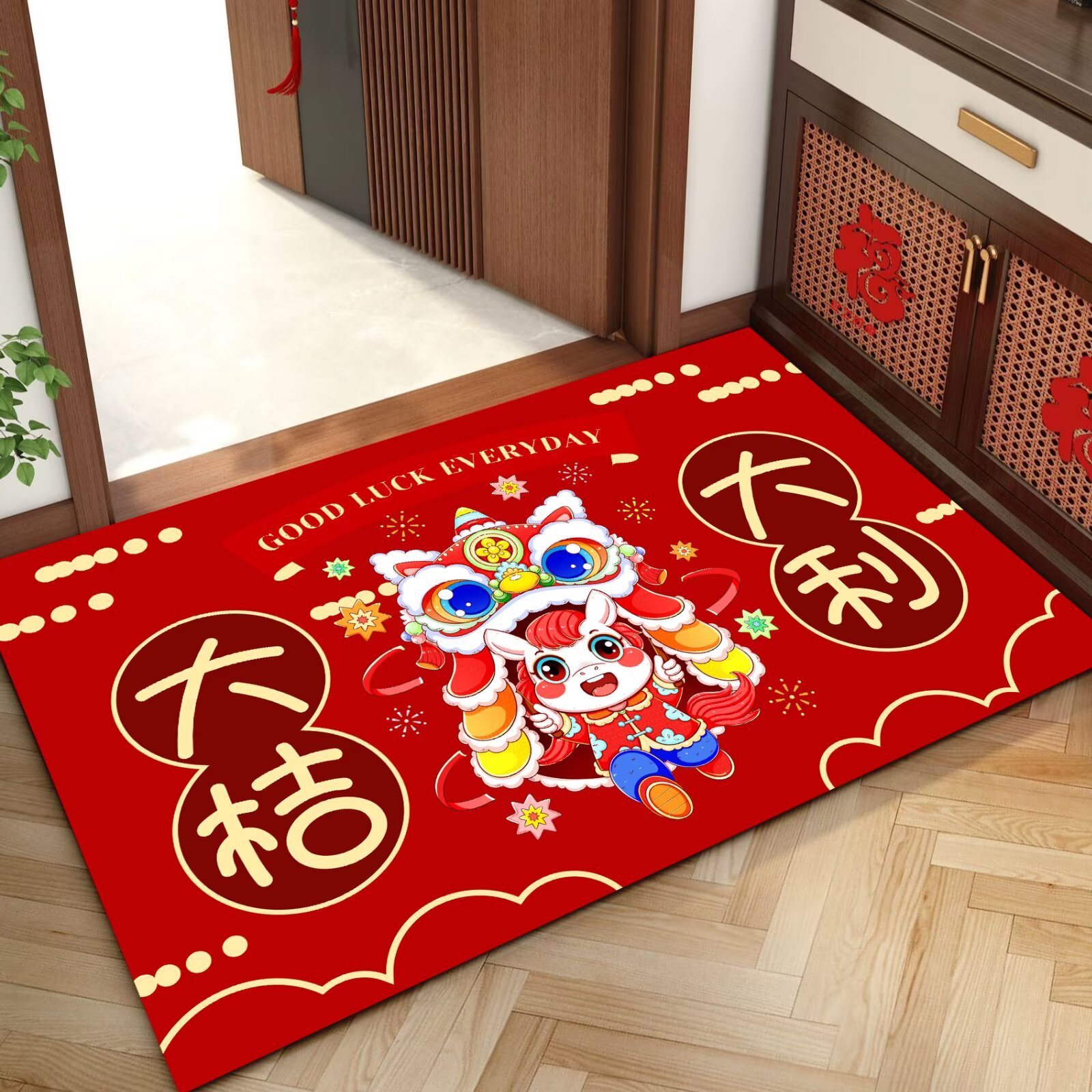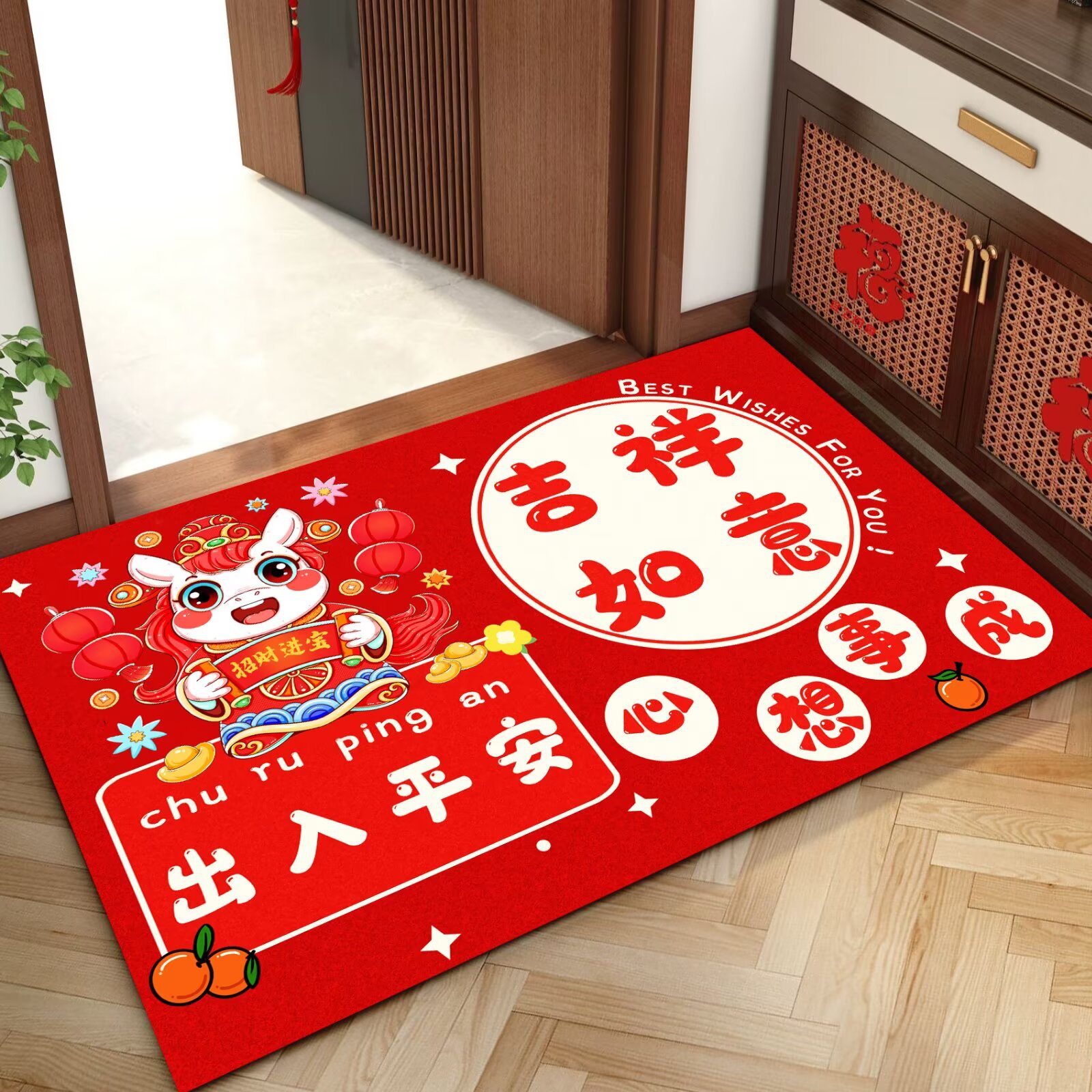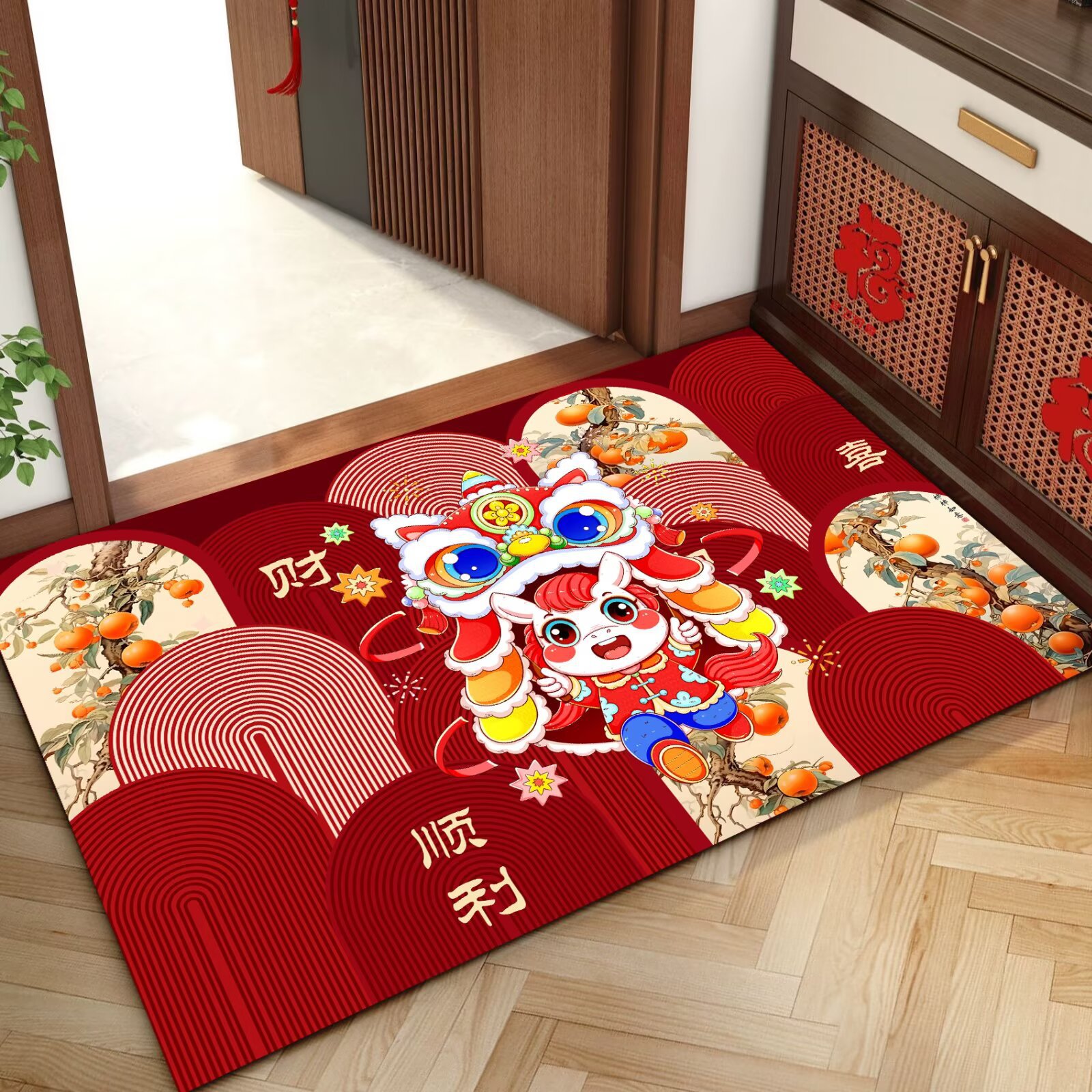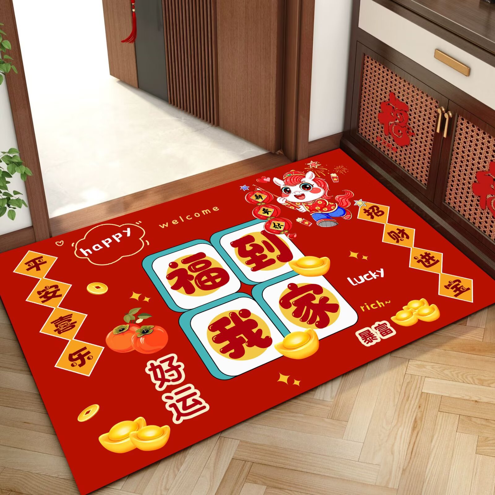 말의 해 입구 문 매트 만화 좋은 의미 홈 입구 발 매트 빨간색 축제 분위기 매트 대리 가능스토어 가기