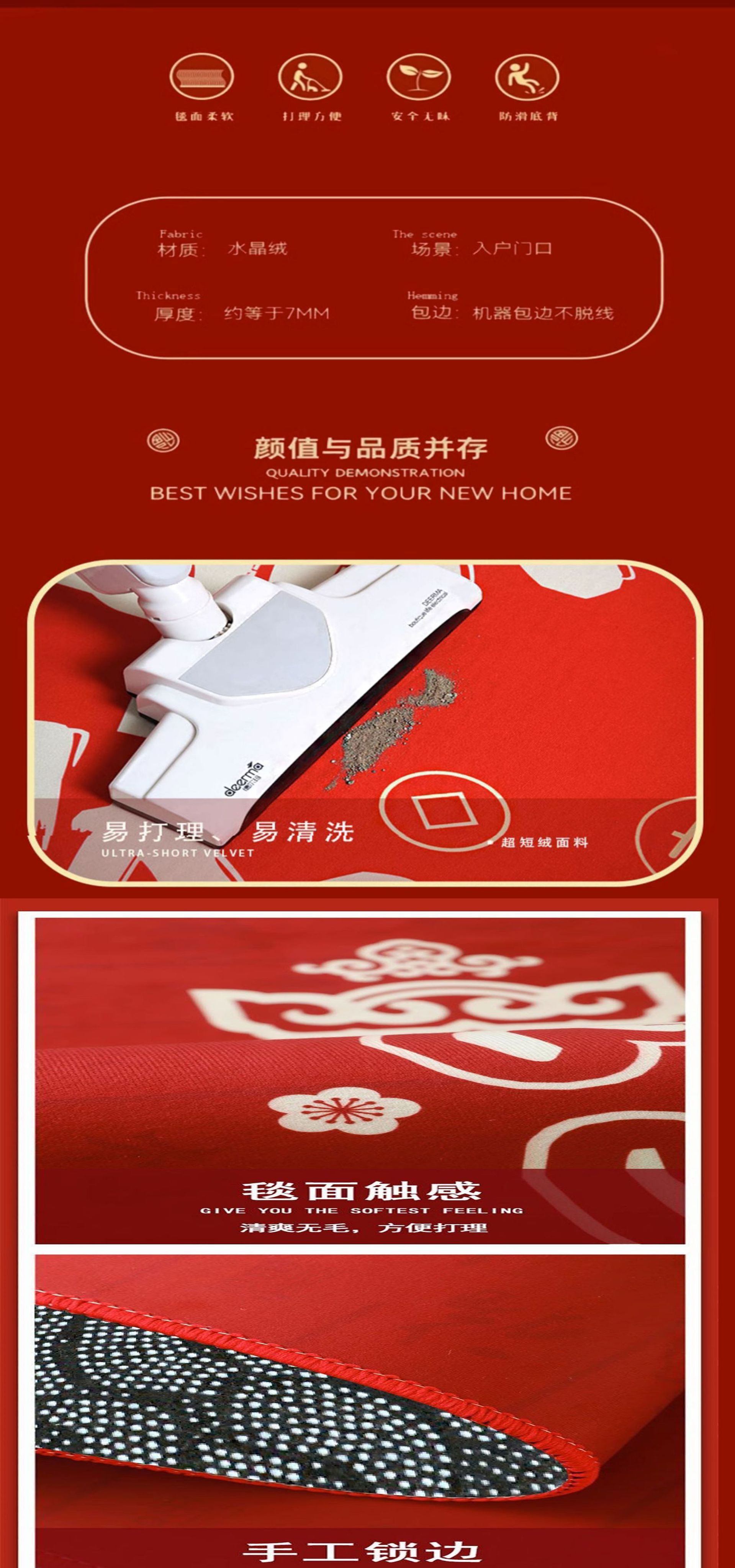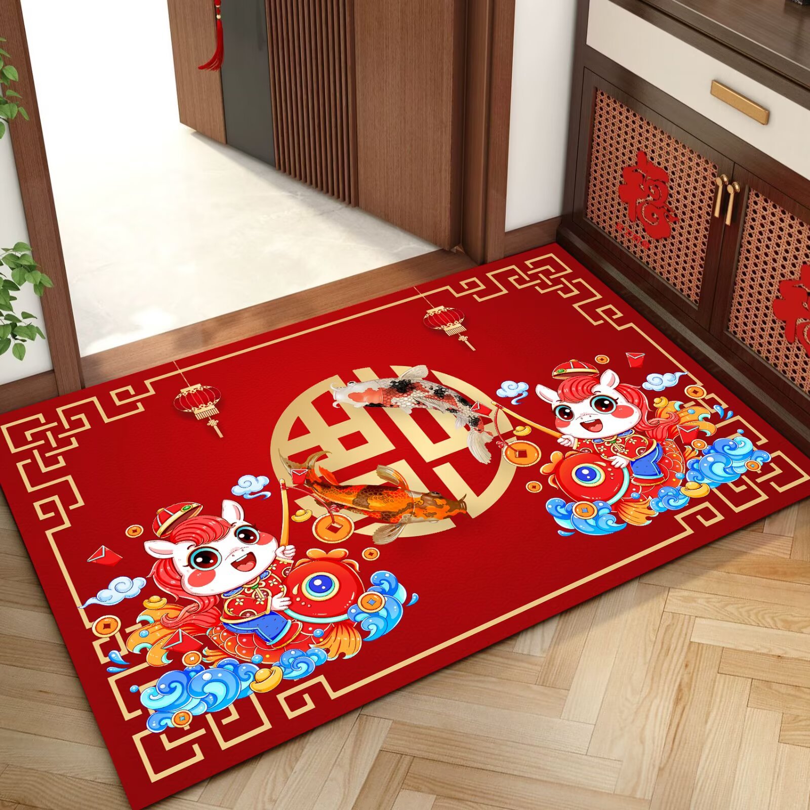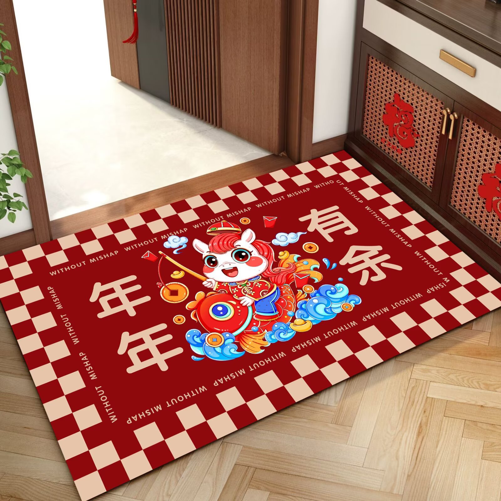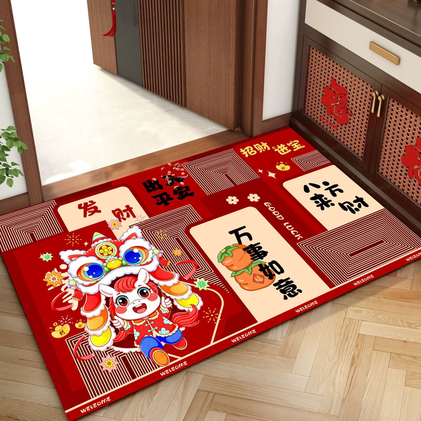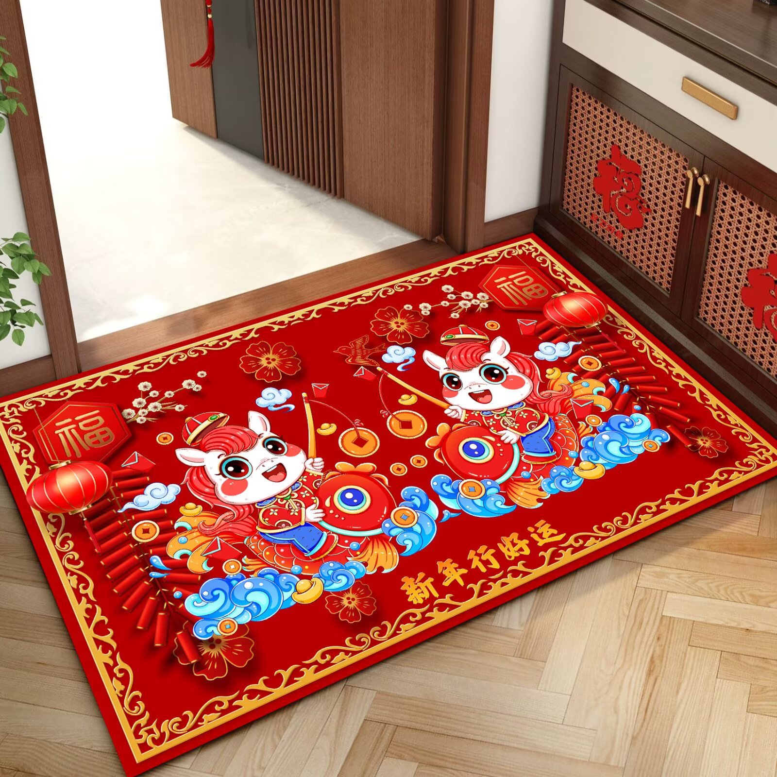 말의 해 입구 문 매트 만화 좋은 의미 홈 입구 발 매트 빨간색 축제 분위기 매트 대리 가능스토어 가기