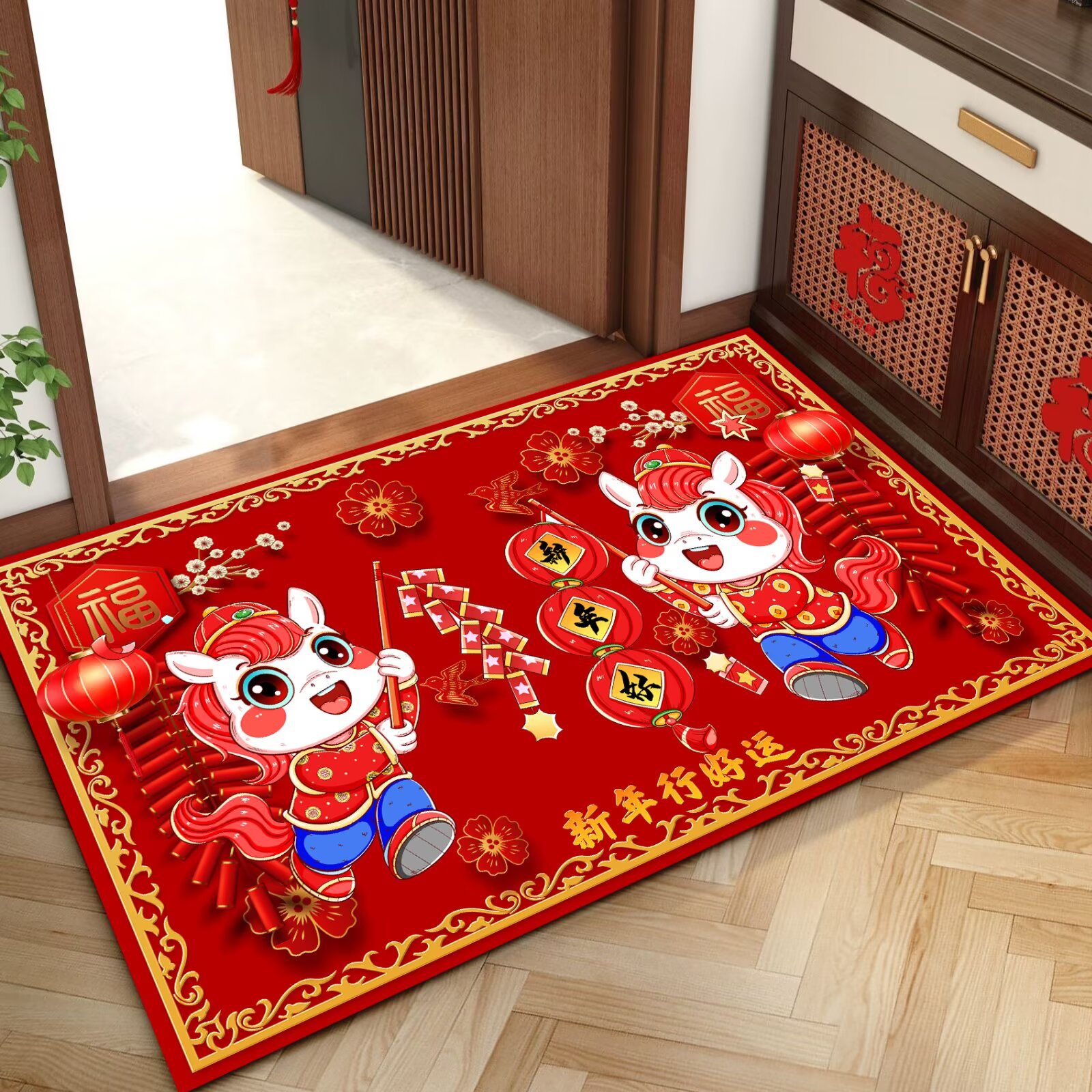 말의 해 입구 문 매트 만화 좋은 의미 홈 입구 발 매트 빨간색 축제 분위기 매트 대리 가능