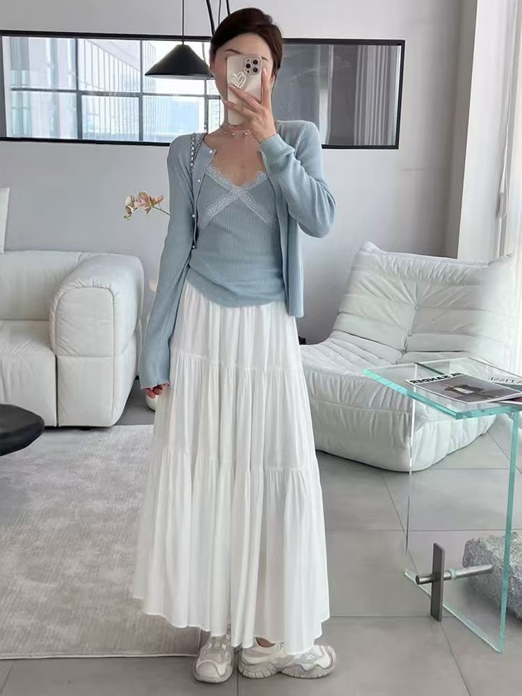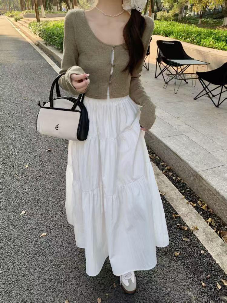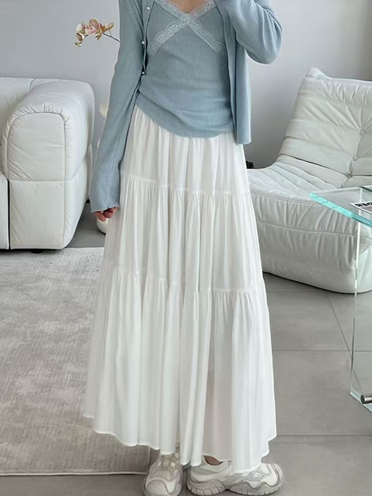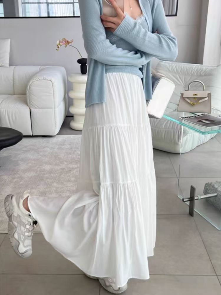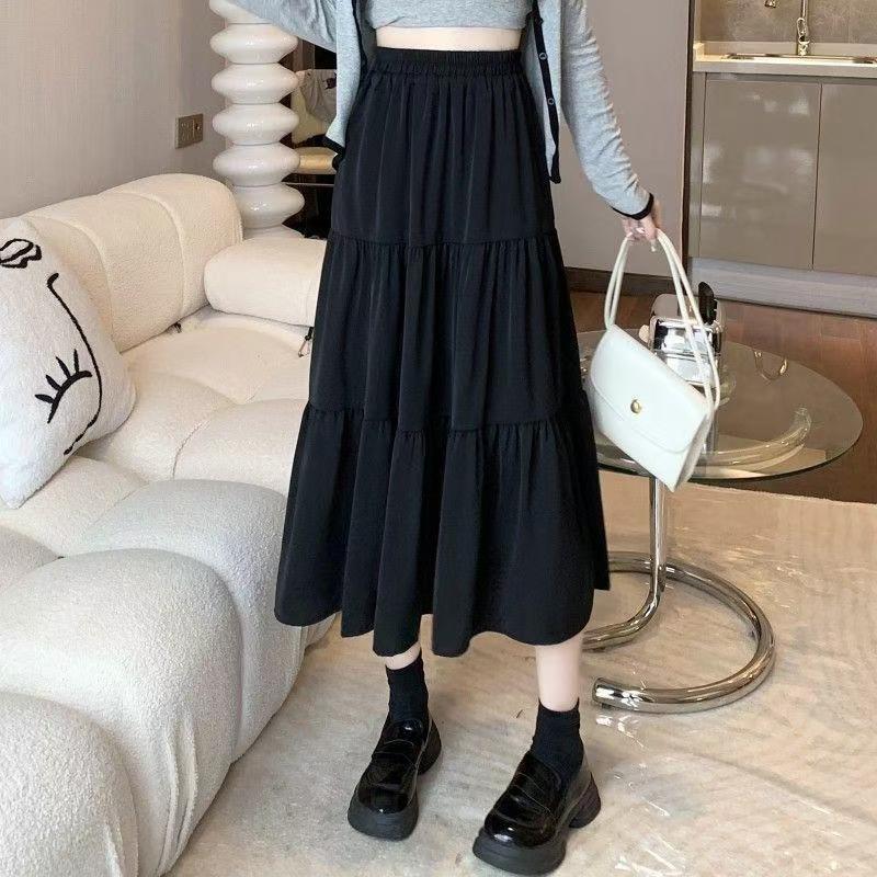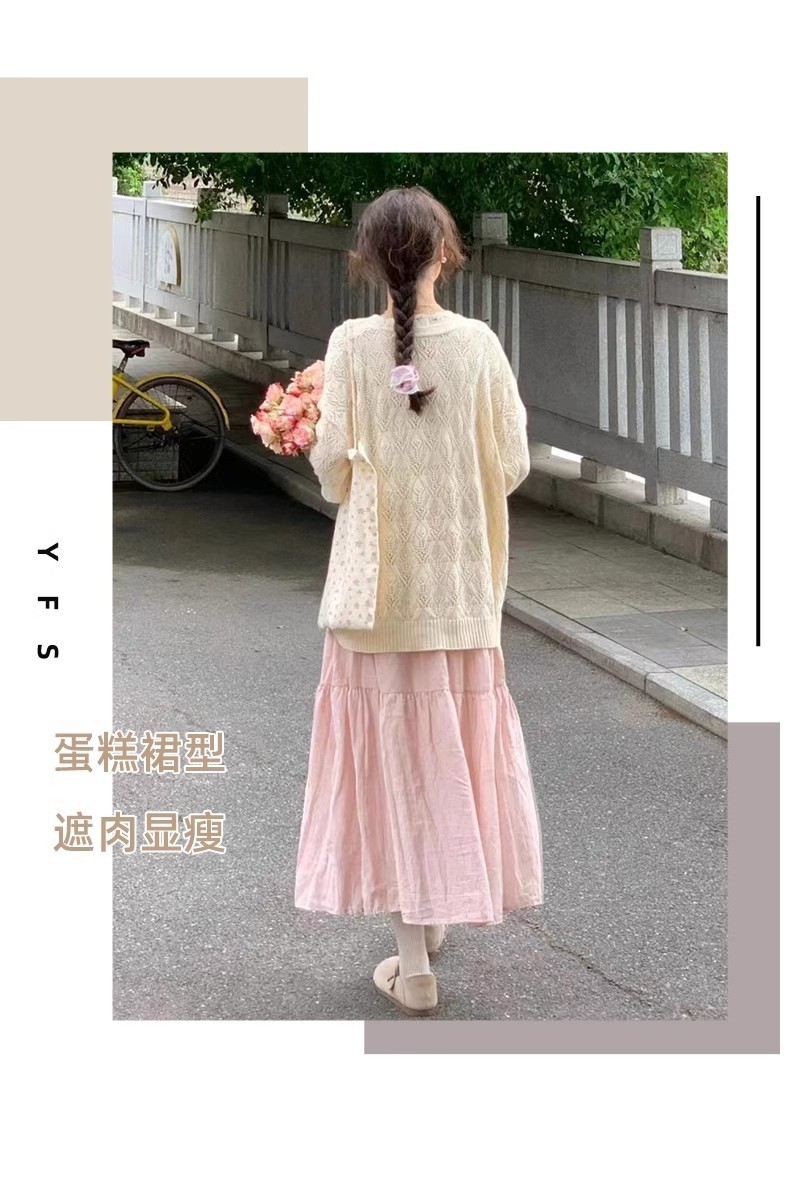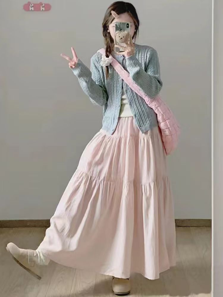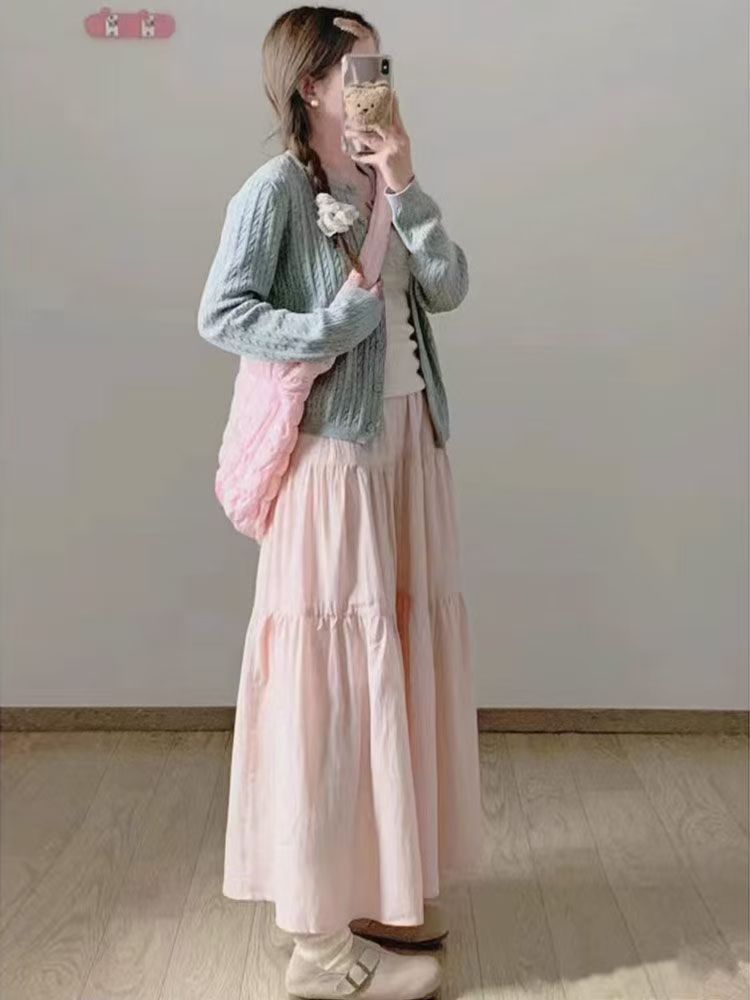 핑크 치마 여성의 봄과 가을 2024 새로운 부드러운 높은 허리 A-라인 긴 치마 슬림 작은 치마스토어 가기