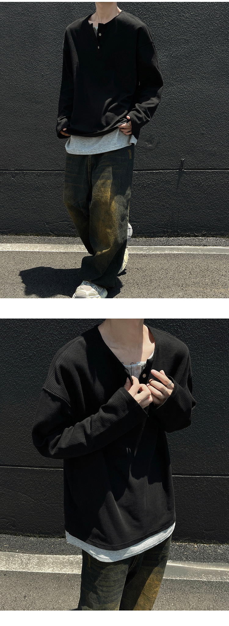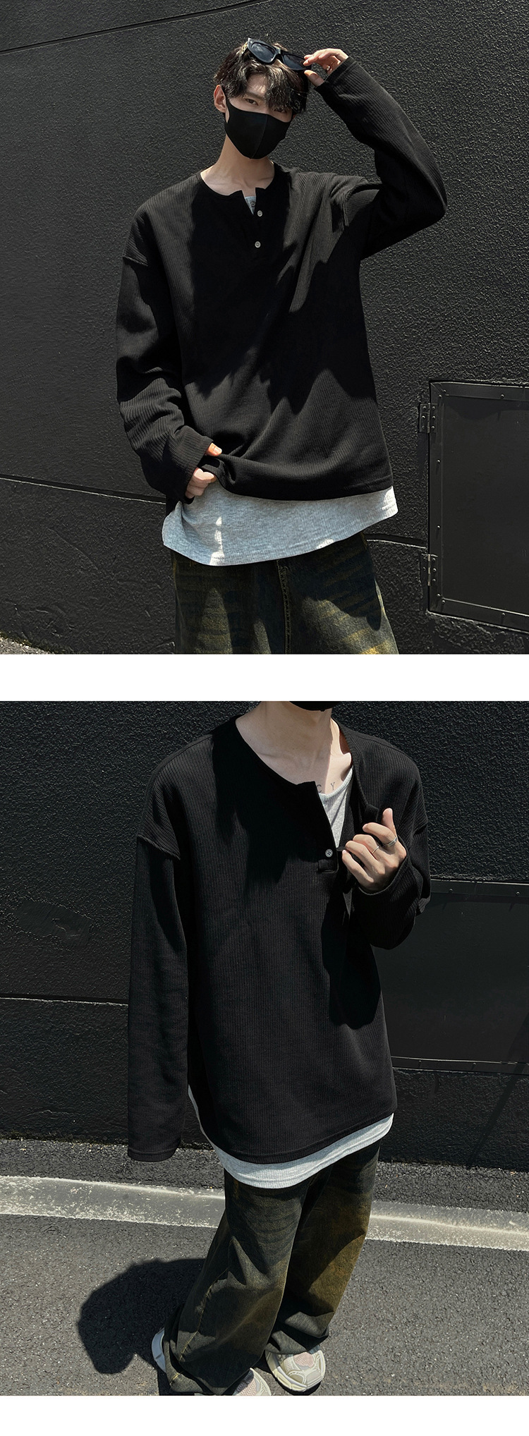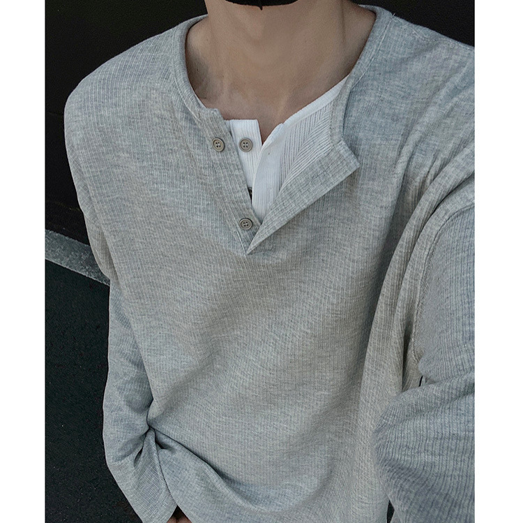 가짜 투피스 헨리 칼라 긴팔 티셔츠 남성용 봄과 가을 2024 뉴 헤비 내베이스 셔츠 루즈 탑스토어 가기
