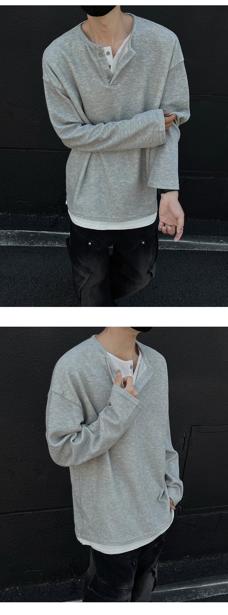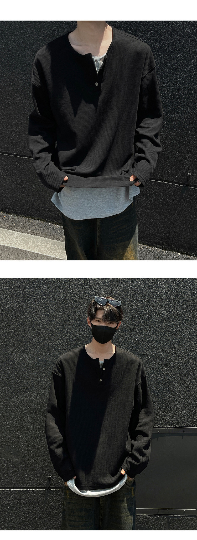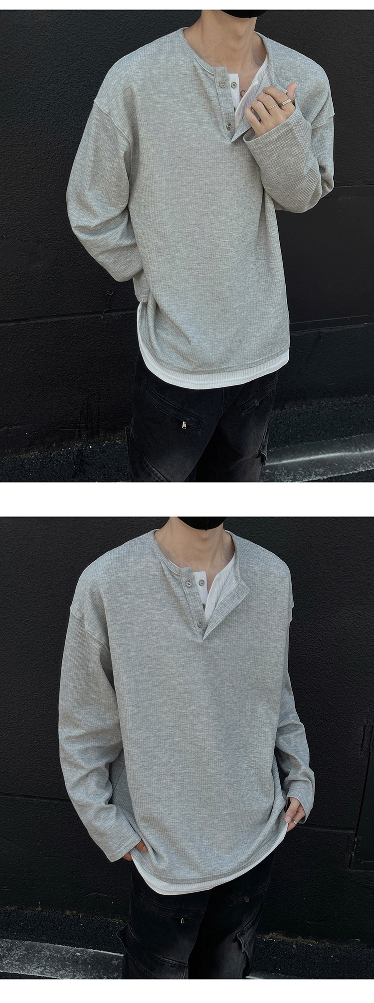 가짜 투피스 헨리 칼라 긴팔 티셔츠 남성용 봄과 가을 2024 뉴 헤비 내베이스 셔츠 루즈 탑스토어 가기