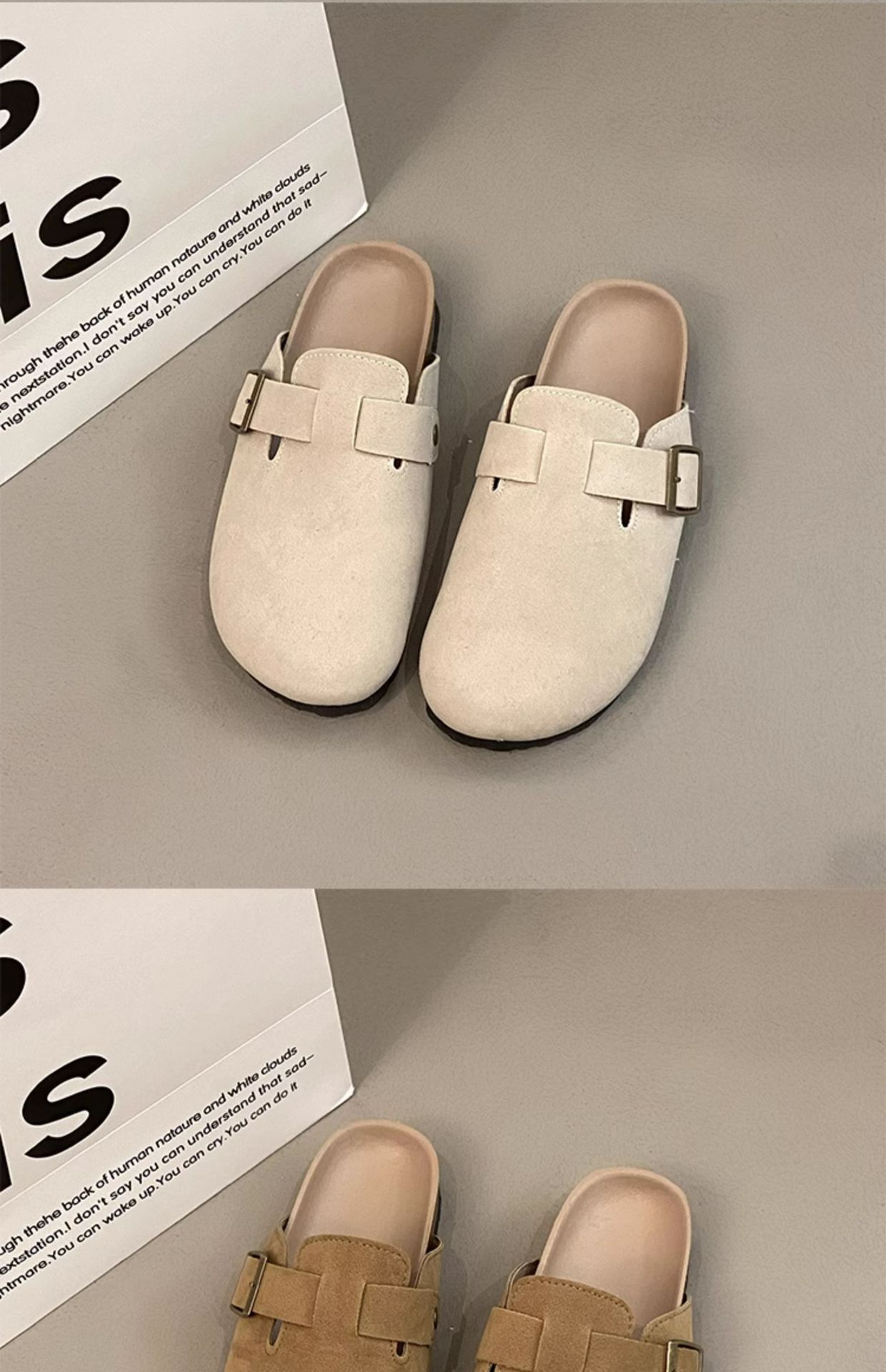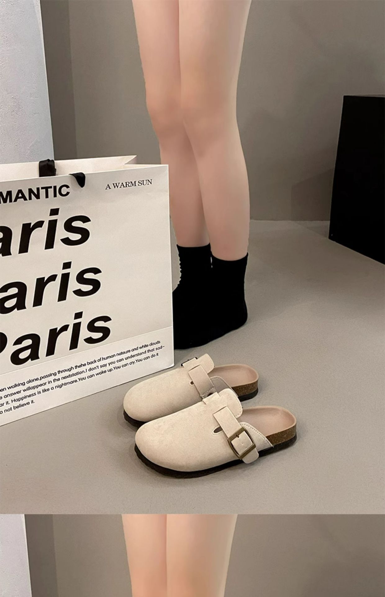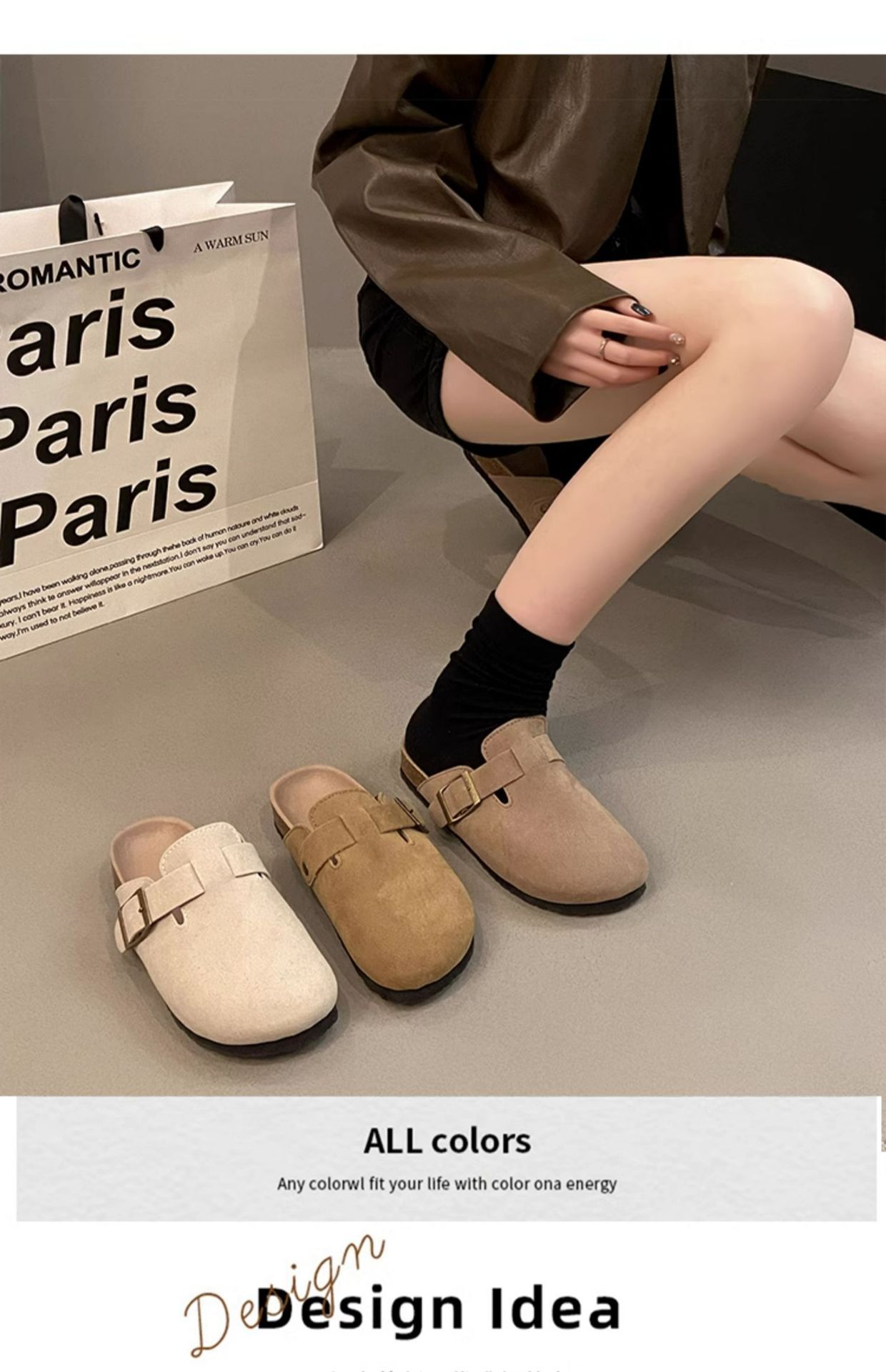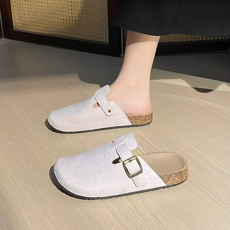 새 가죽 캐주얼 두꺼운 밑창 남자의 반쯤 덮인 슬리퍼 출산 신발 여자 외부 착용