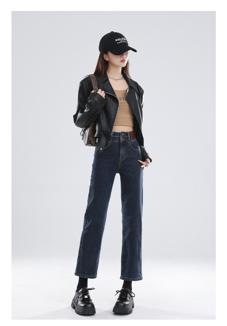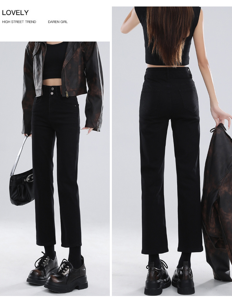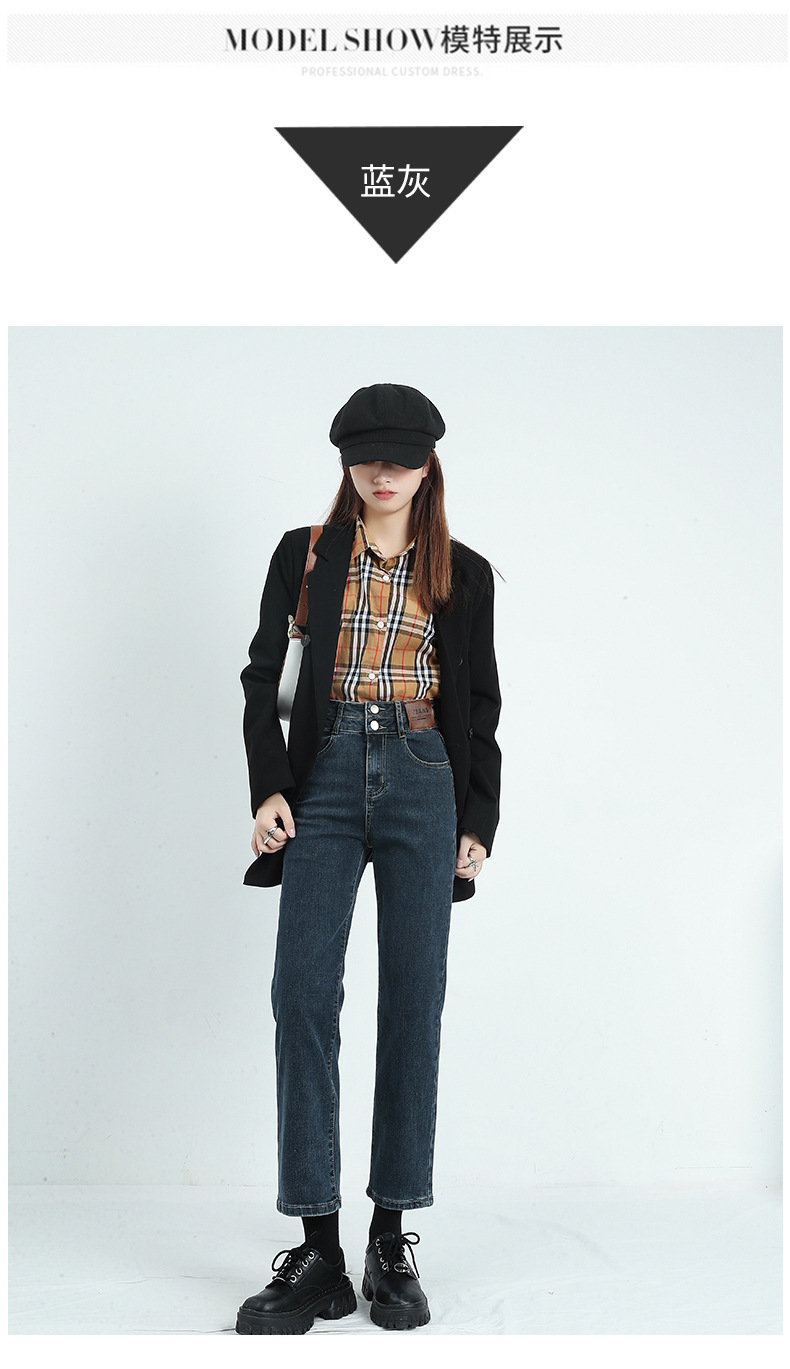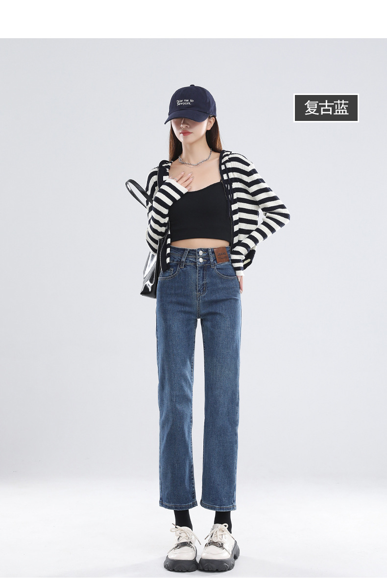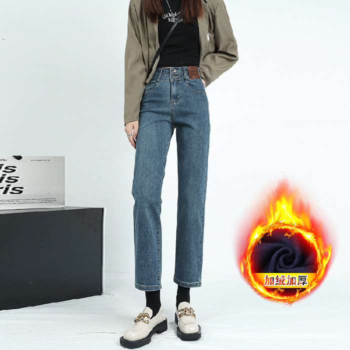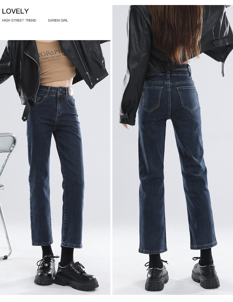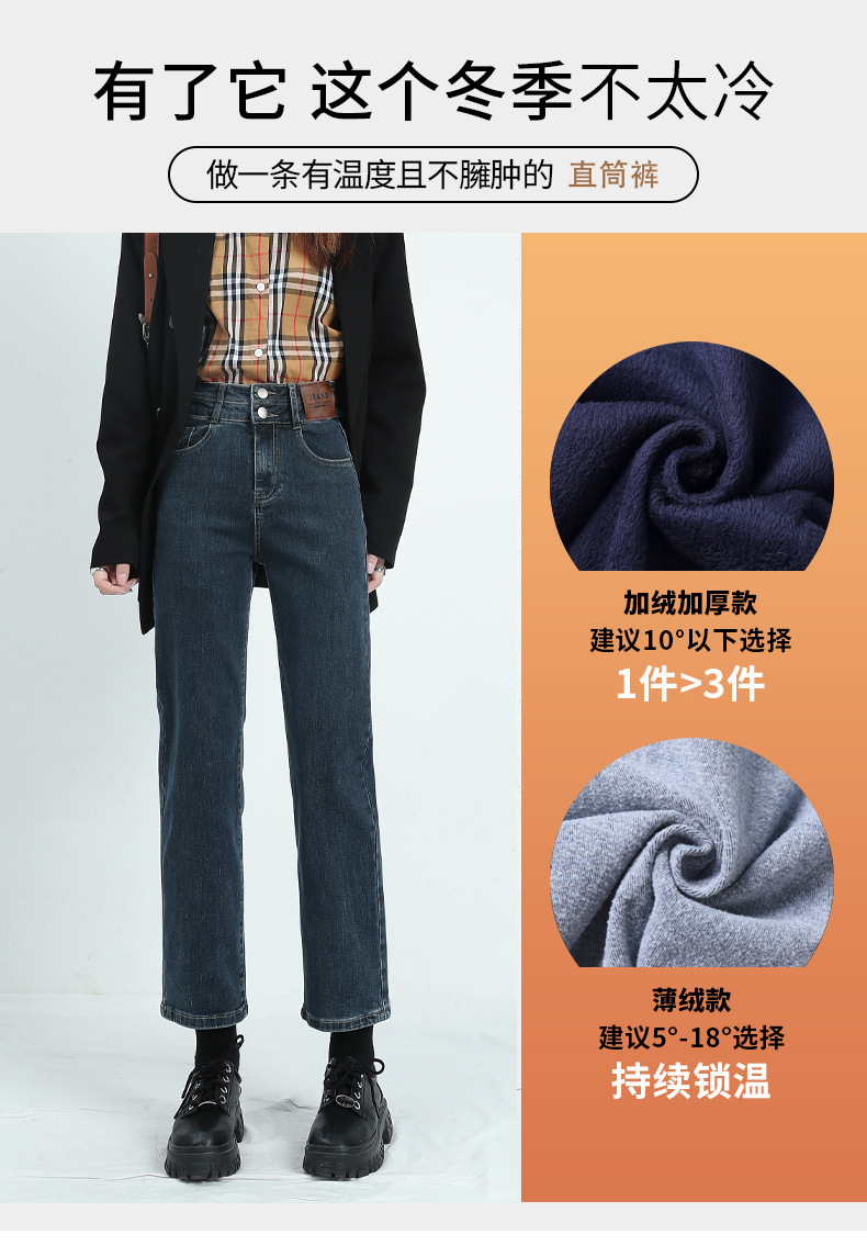 여성용 9부 스트레이트 레그 기모 데님 팬츠, 가을 겨울용 슬림핏, 키 작아도 키가 보이는 신축성 있는 스모크 팬츠스토어 가기