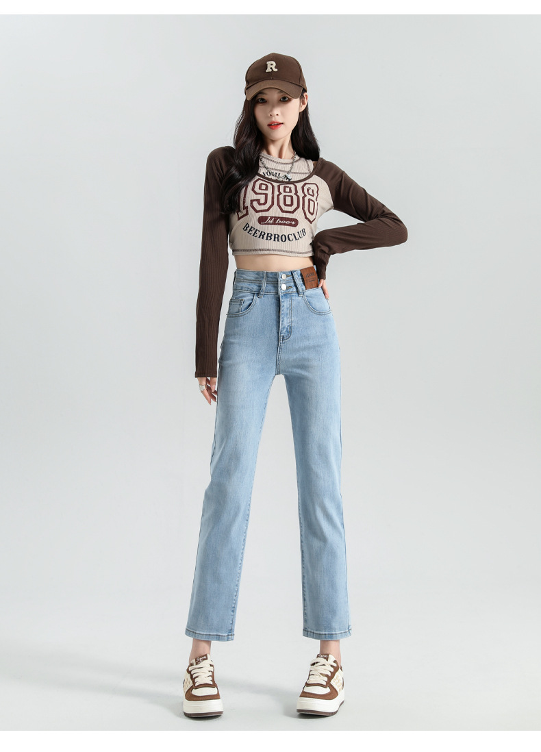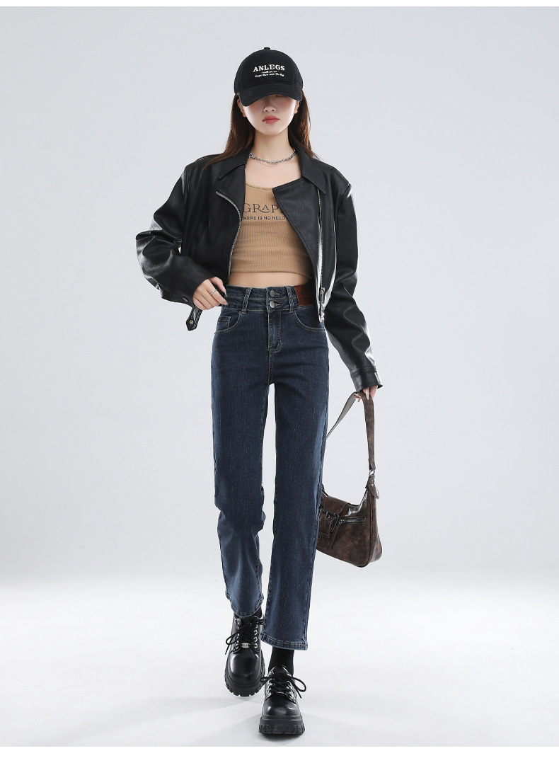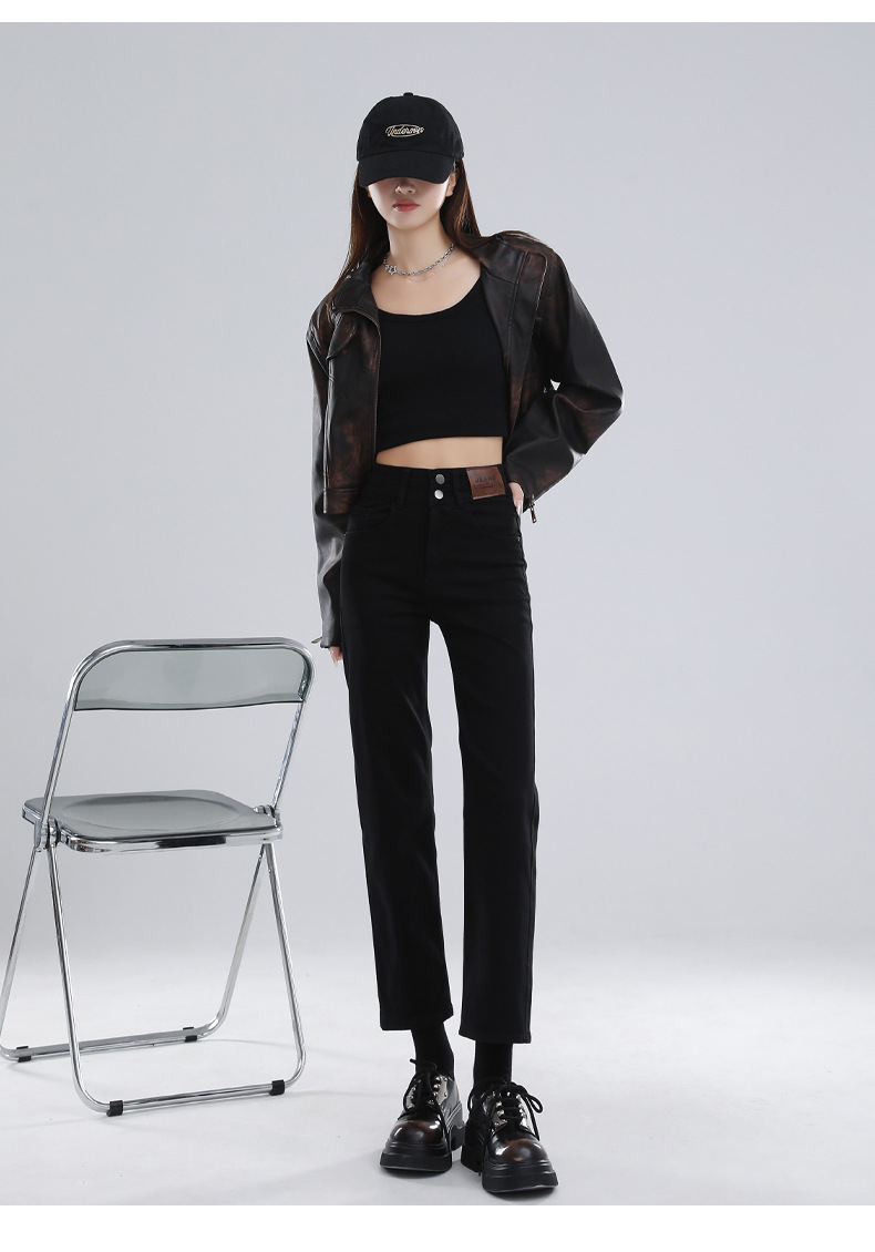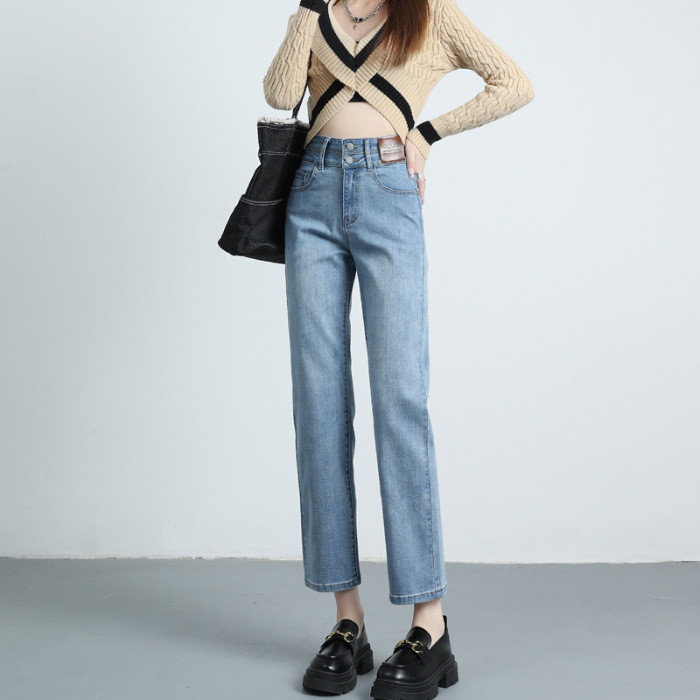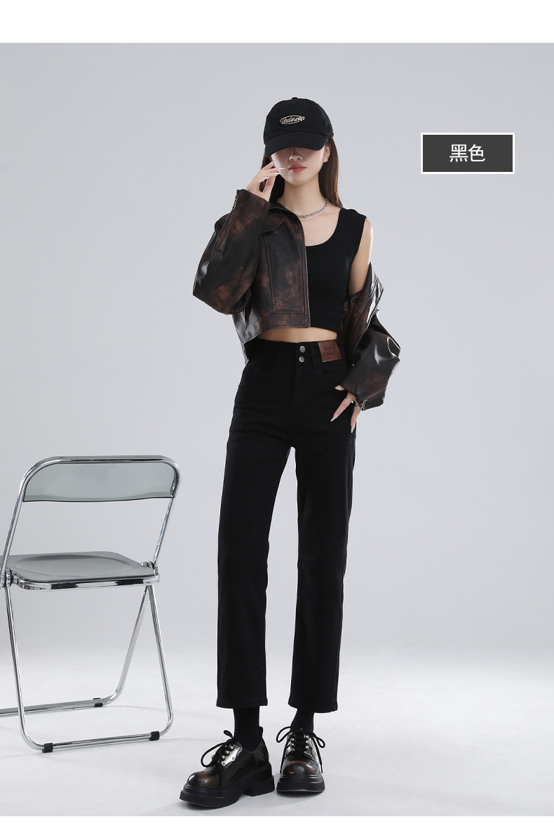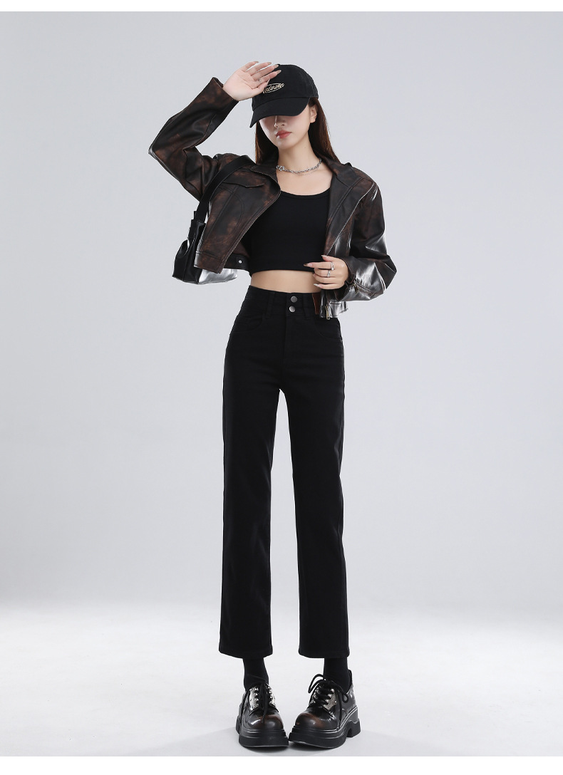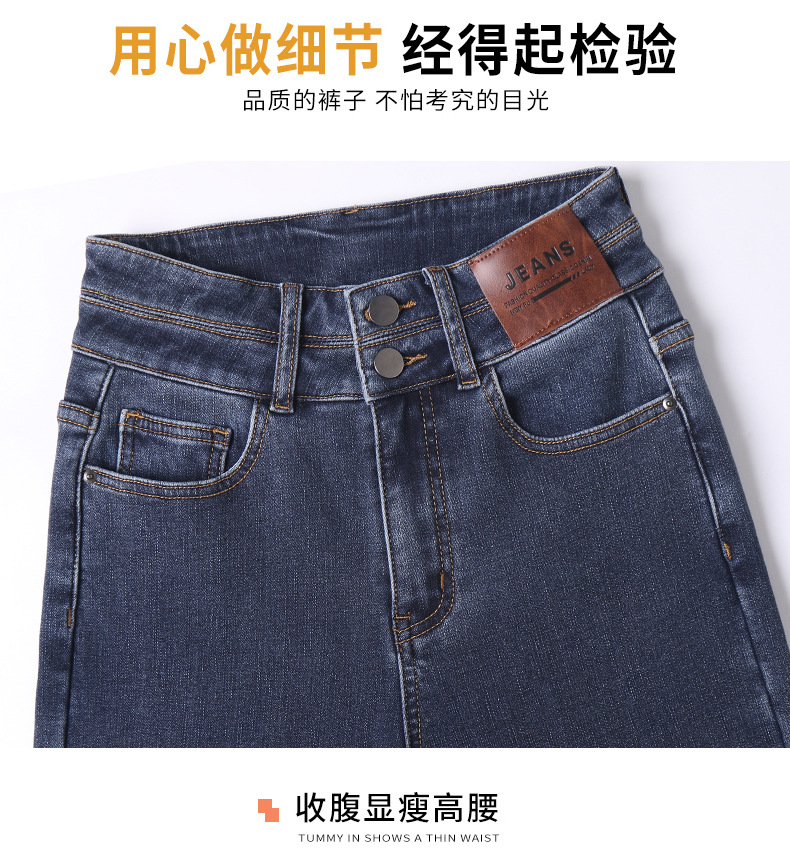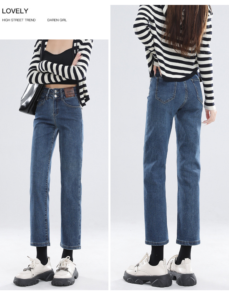 여성용 9부 스트레이트 레그 기모 데님 팬츠, 가을 겨울용 슬림핏, 키 작아도 키가 보이는 신축성 있는 스모크 팬츠스토어 가기