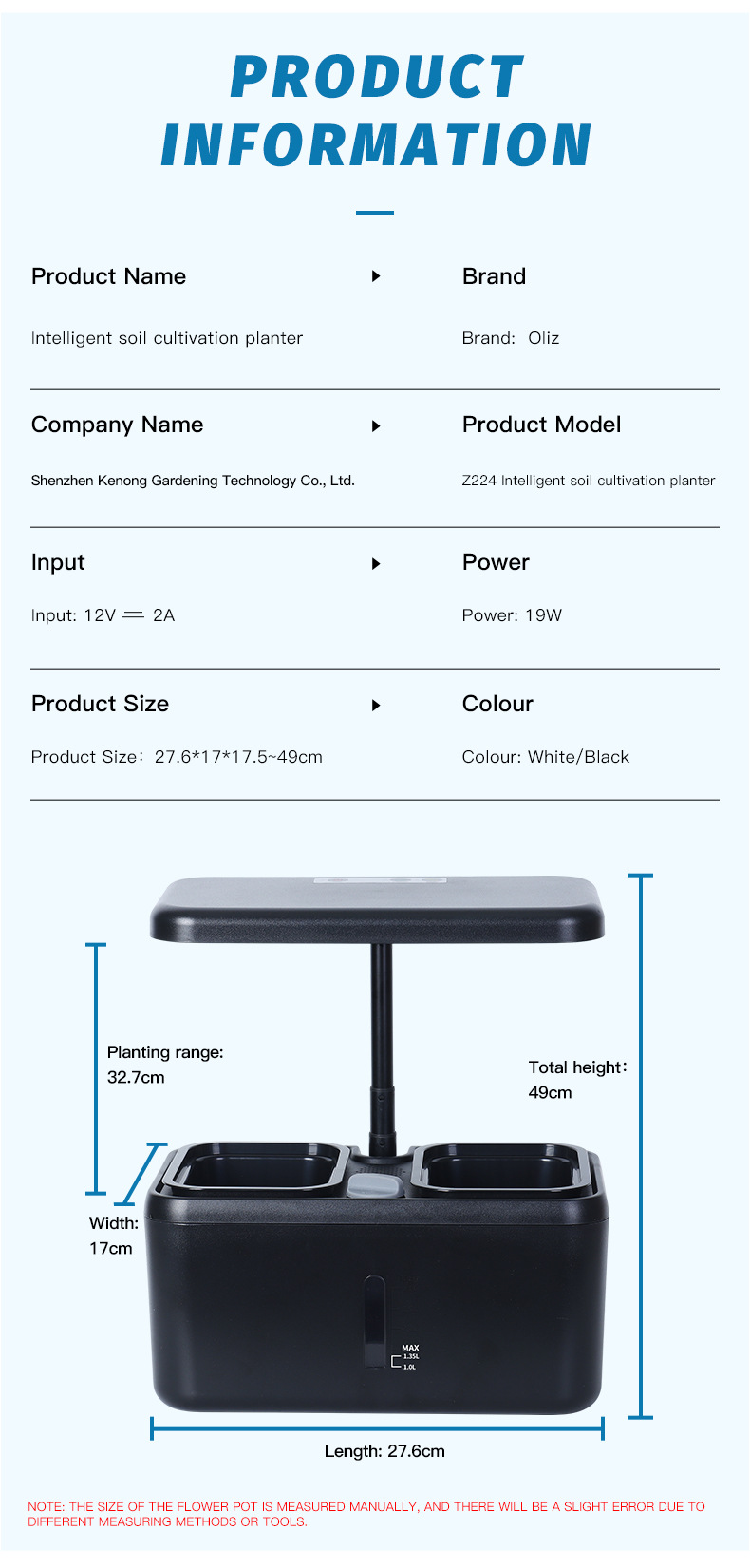 Olinze 지능형 심기 기계 TEMU 쉐이크 톤 무염 재배 야채 심기 기계 수경 야채 보충 빛 국경 간 대외 무역스토어 가기