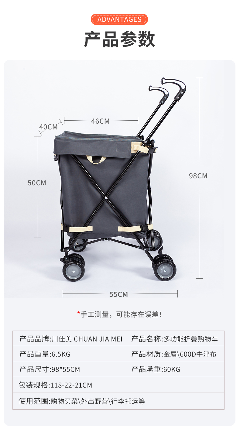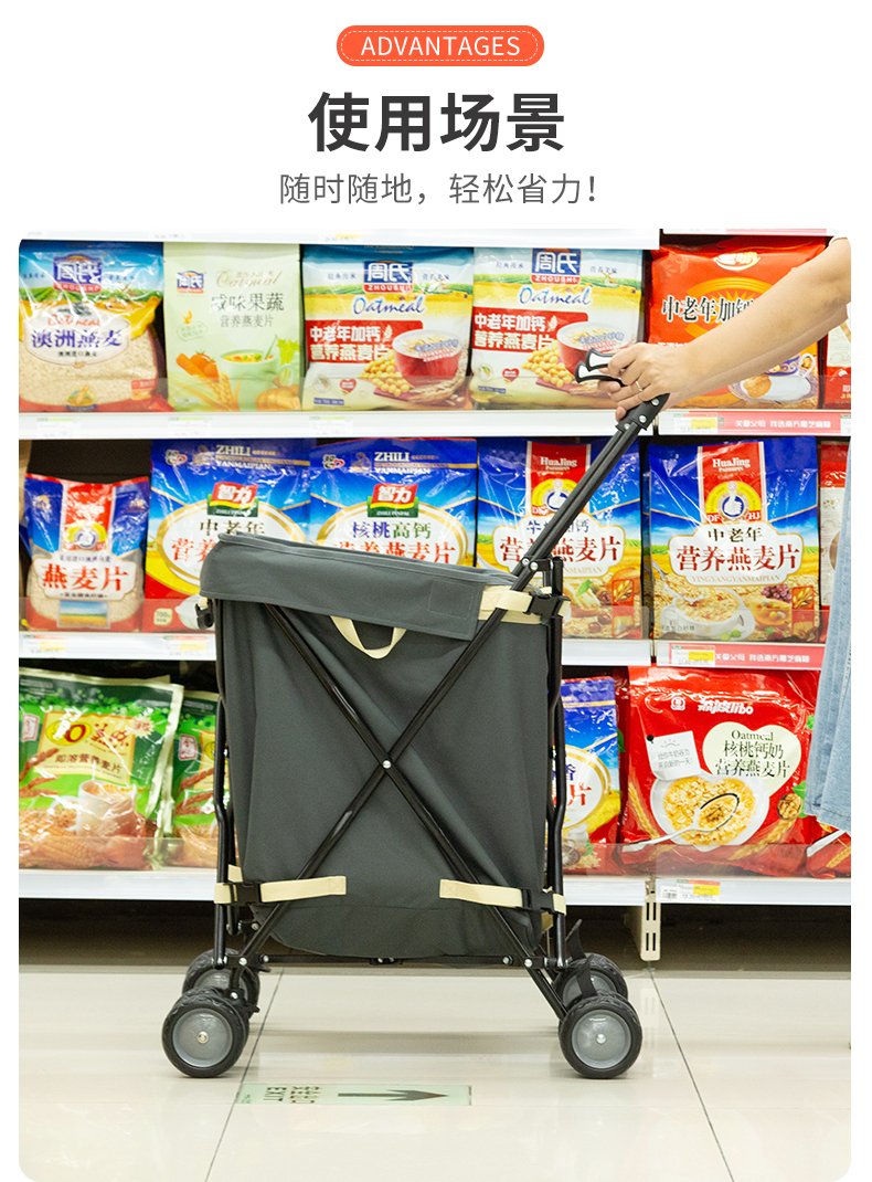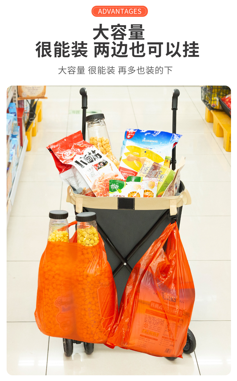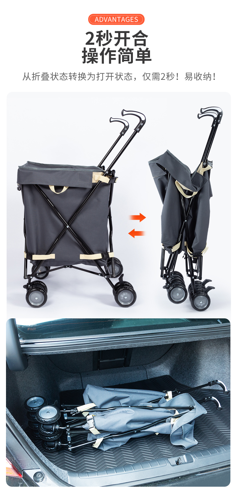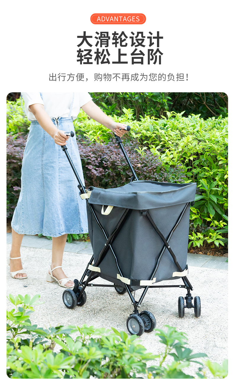 9WOR 캠핑 쇼핑 카트 야외 트레일러 슈퍼마켓 쇼핑 카트 접이식 휴대용 오토바이 빠른스토어 가기
