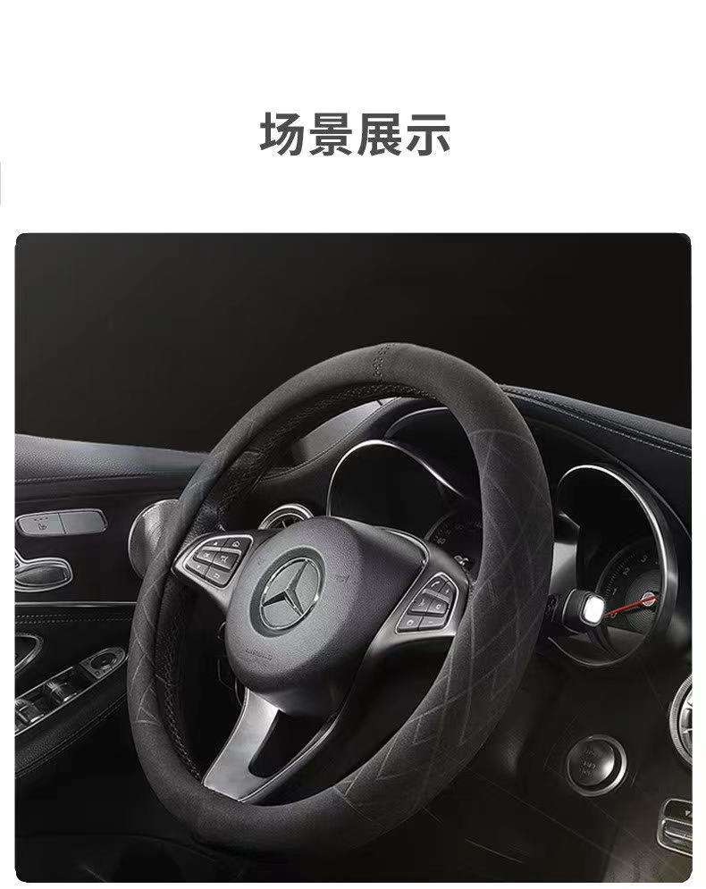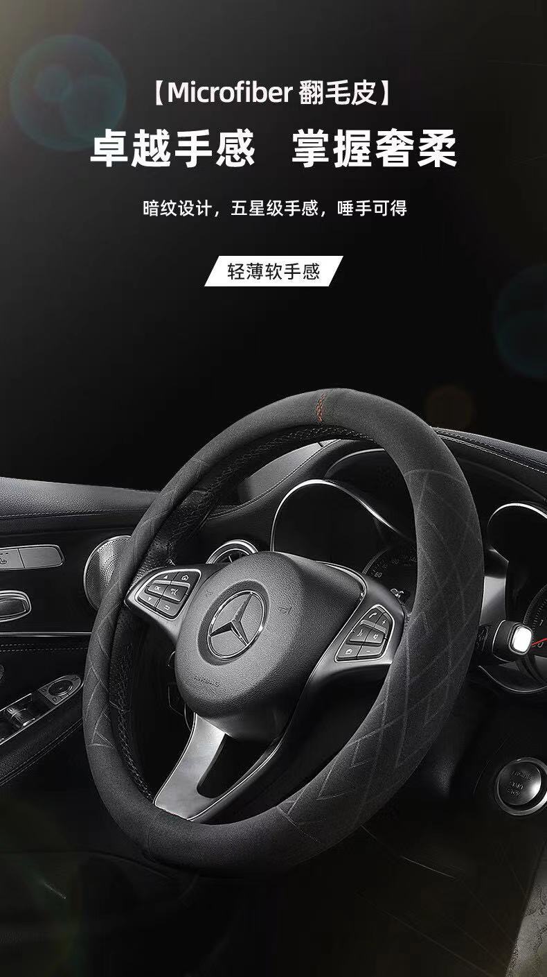 국경 간 자동차 핸들 커버, 범용 스웨이드 슈퍼 섬유 소재, 땀 흡수 및 미끄럼 방지 자동차 핸들 커버, 표준 표시스토어 가기