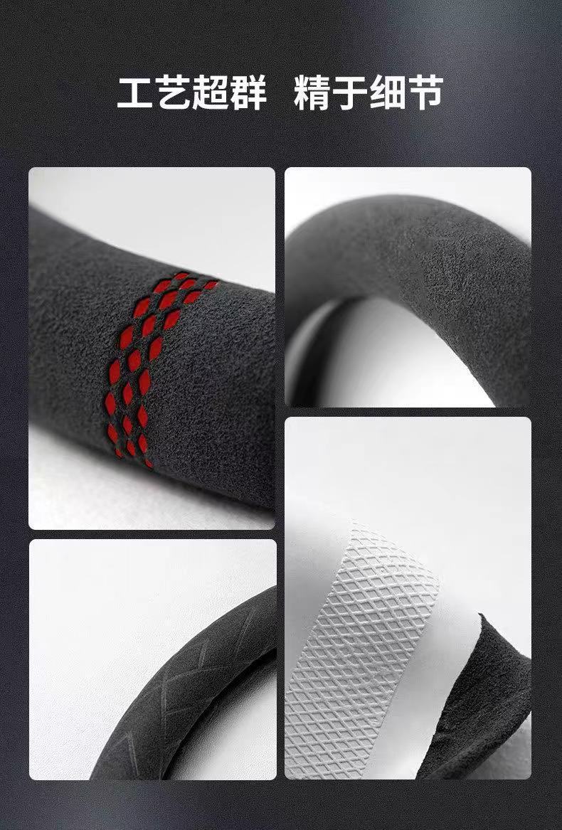 국경 간 자동차 핸들 커버, 범용 스웨이드 슈퍼 섬유 소재, 땀 흡수 및 미끄럼 방지 자동차 핸들 커버, 표준 표시