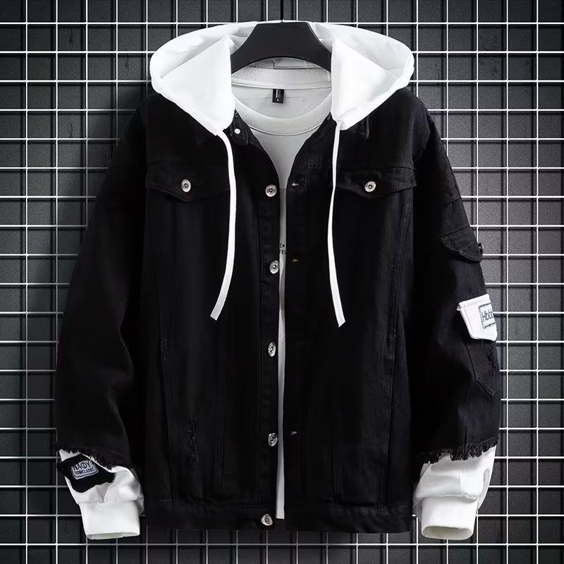 가을 데님 코트 남자 중학교 고등학교 고등학교 패션 재킷 소년 옷 2024 새로운 봄과 가을스토어 가기