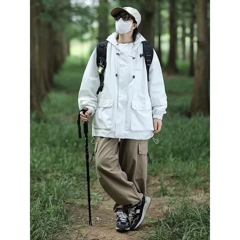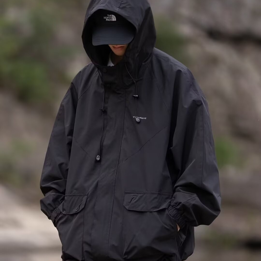 아메리칸 스타일 야외 방수 후드 재킷 남자의 봄과 가을 등산 세트 커플의 유행 브랜드 스포츠 캐주얼 재킷 코트