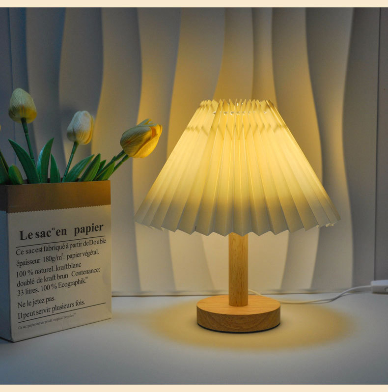Ins Vintage 주름 원격 제어 나이트 라이트 북유럽 홈스테이 침실 장식 테이블 램프 우산 침대 옆 램프 창조적 인 선물