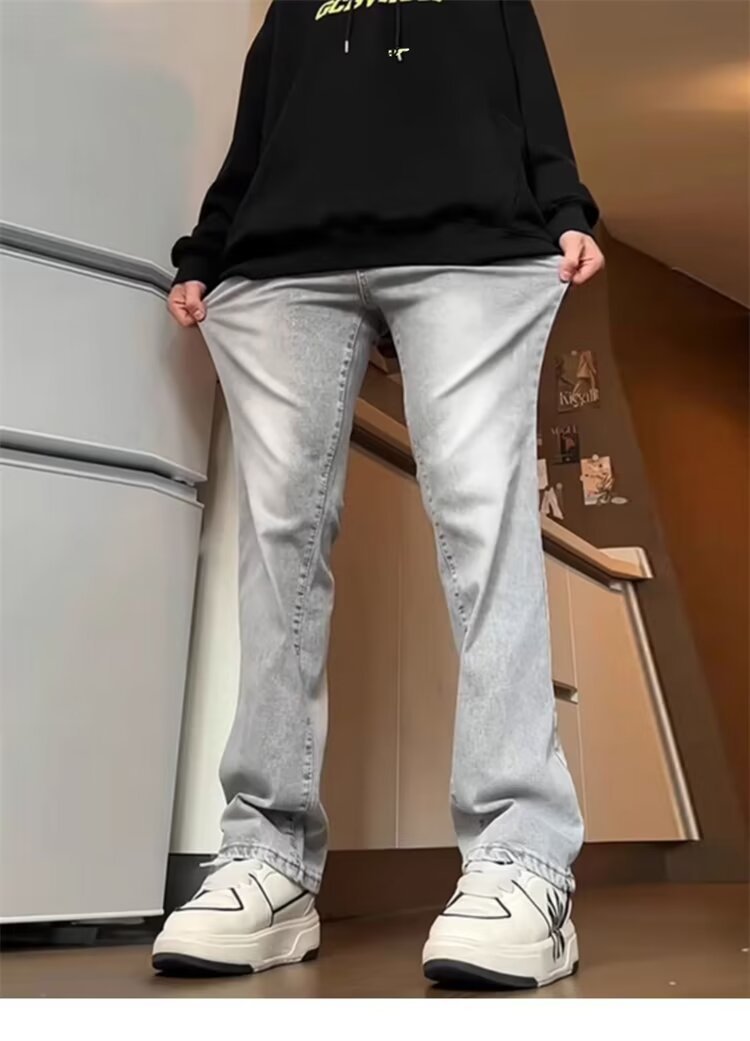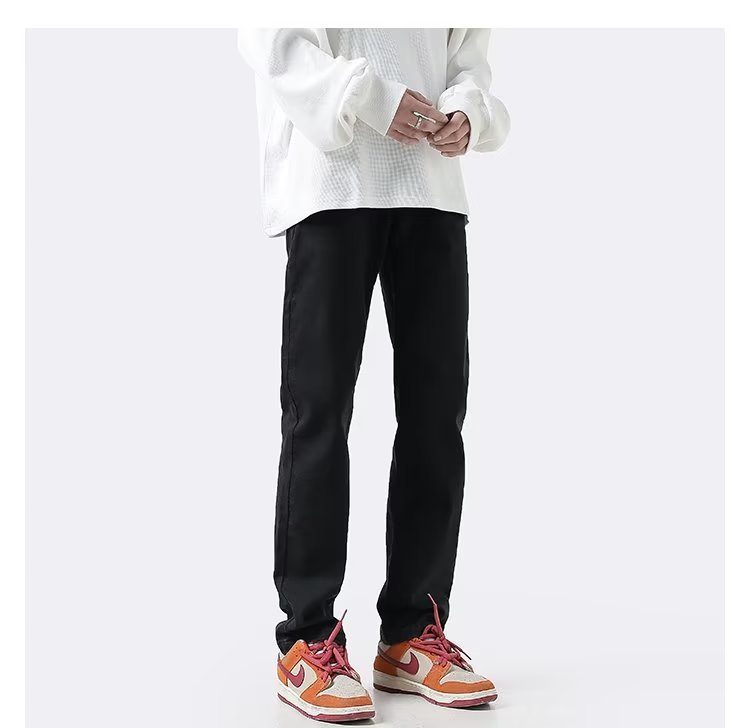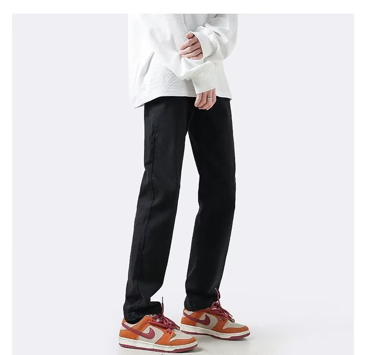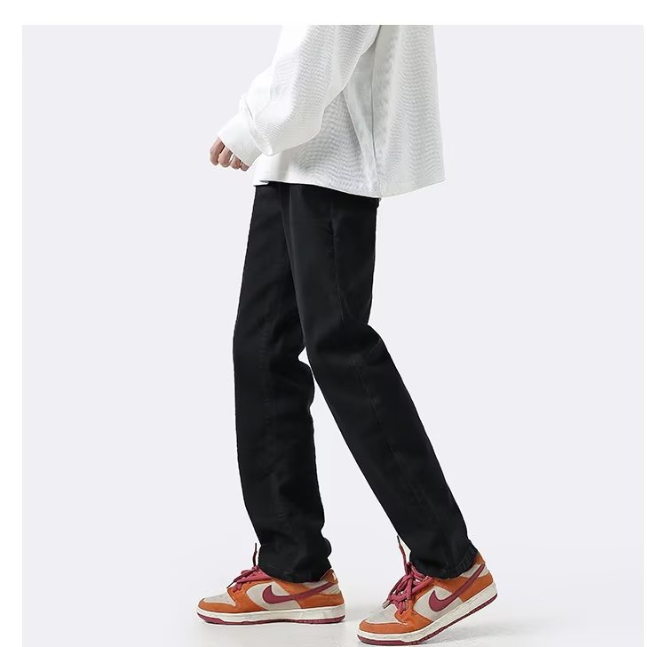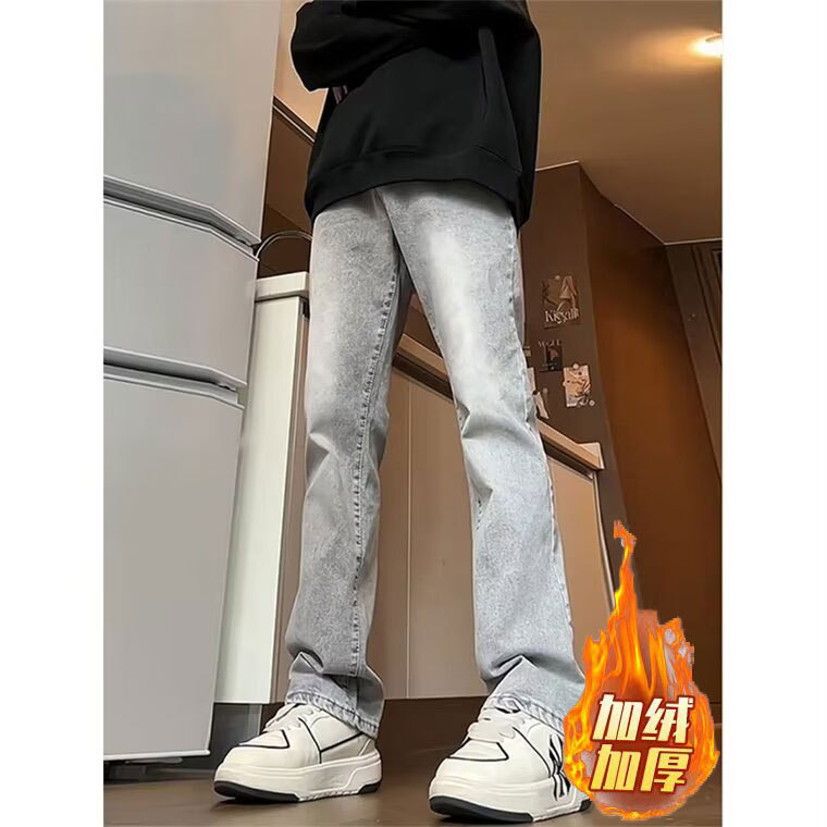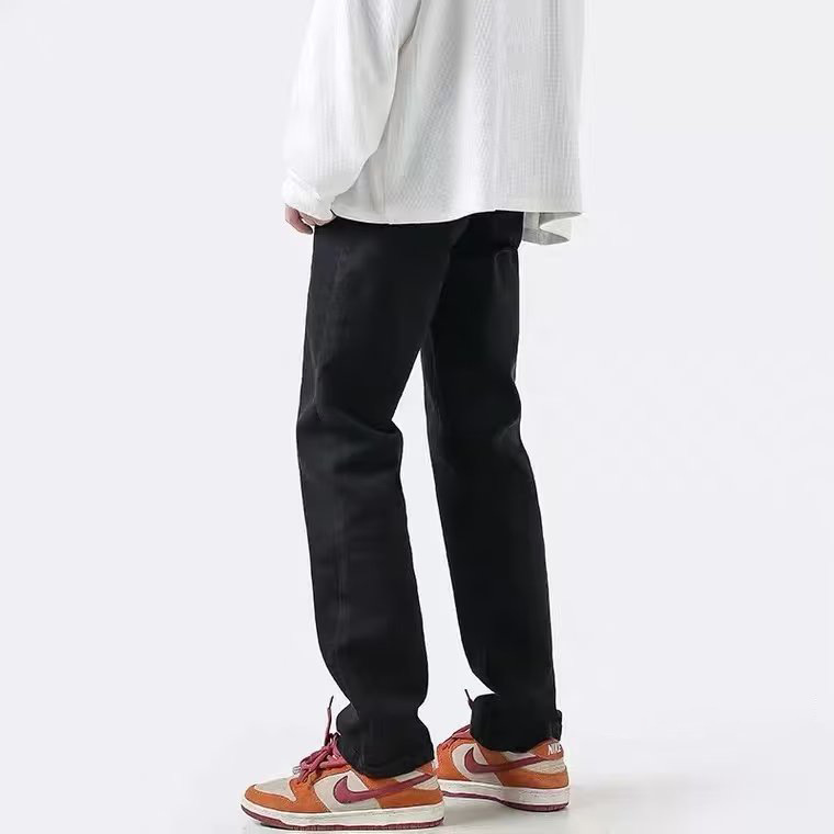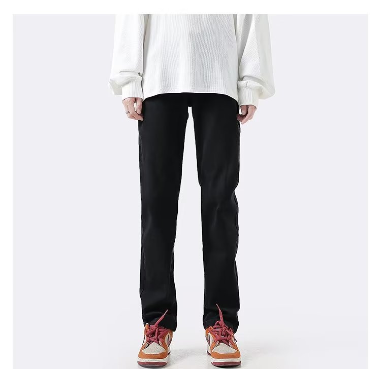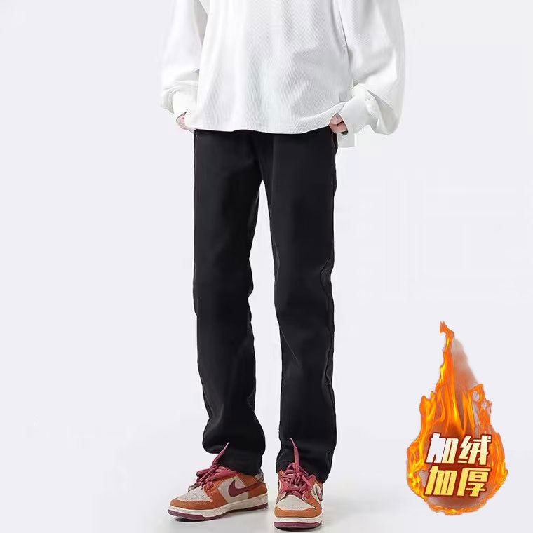 가을 새로운 미국 스타일 하이 스트리트 바이브 스타일 청바지 남성용 루즈 스트레이트 기모 블랙 캐주얼 긴 바지스토어 가기