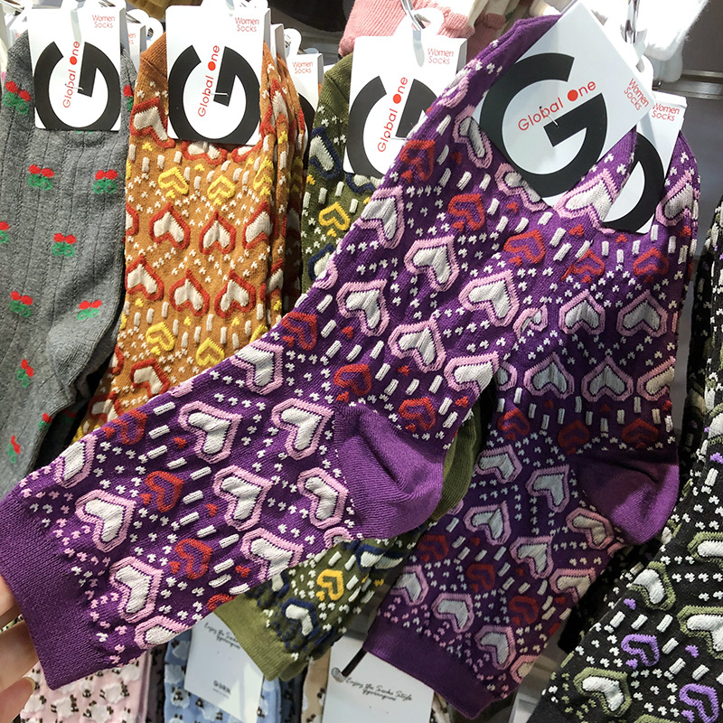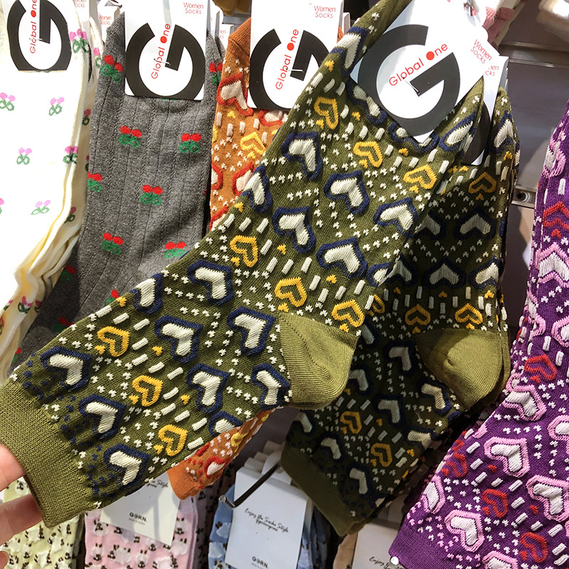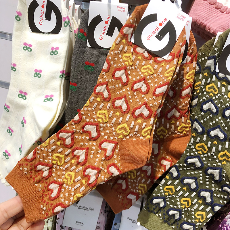 한국 가을과 겨울 새로운면 양말 Maillard 복고풍 스타일 엠보싱 사랑 여성 양말 glalalane면 양말