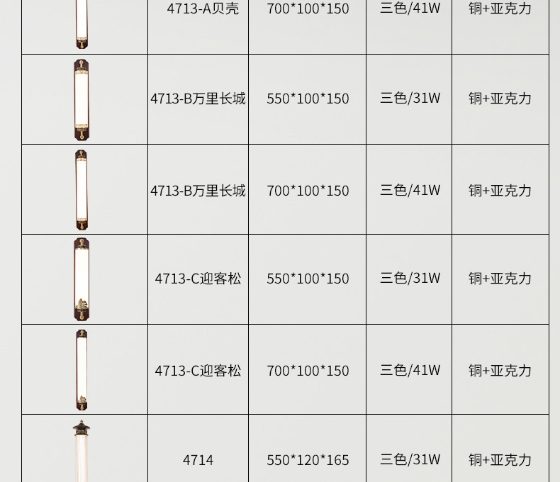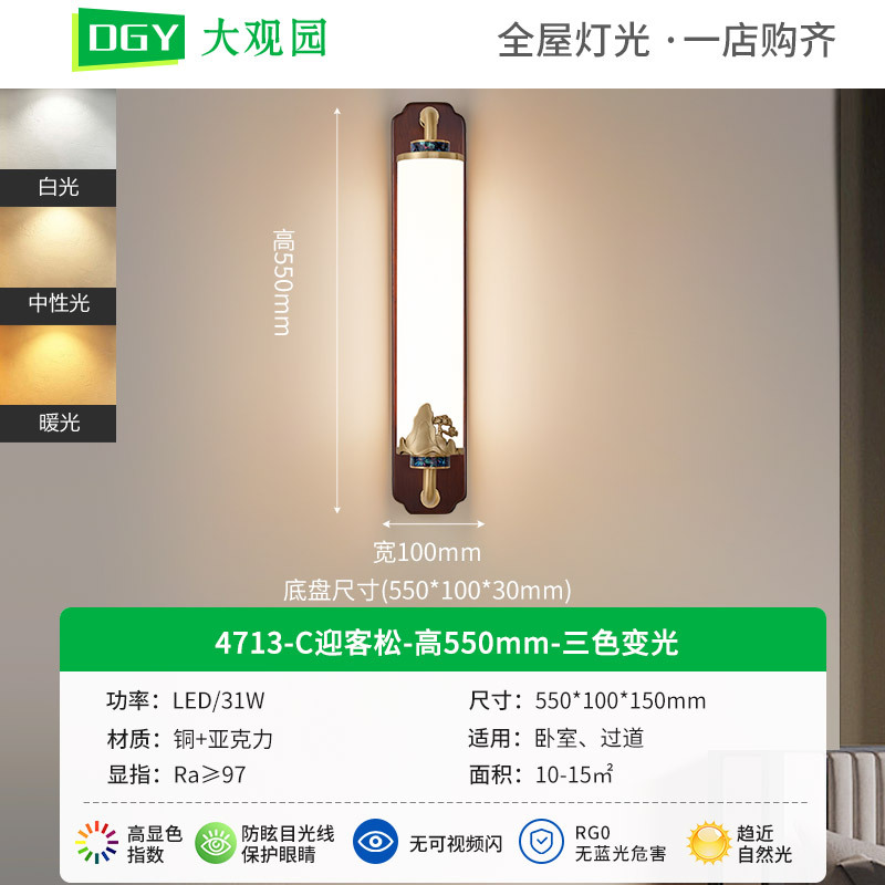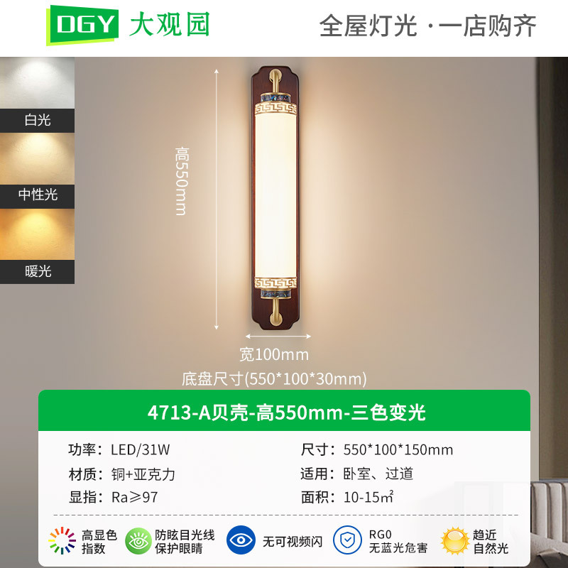 • 모델 B 만리장성-월넛 색상-550mm-31W-3색 조광-전체 스펙트럼