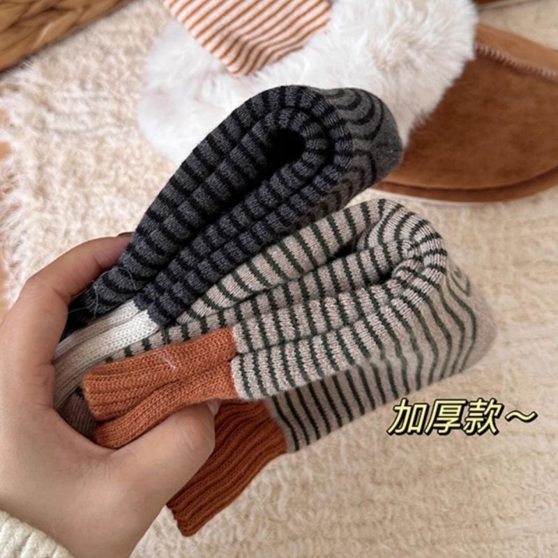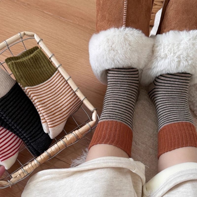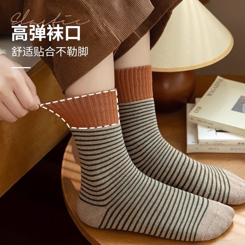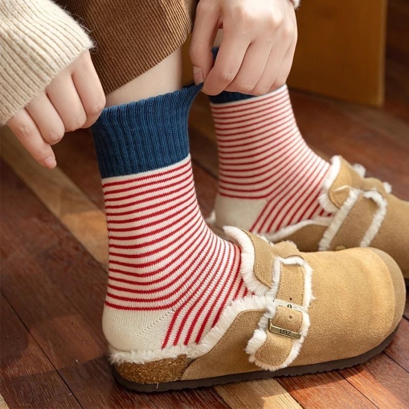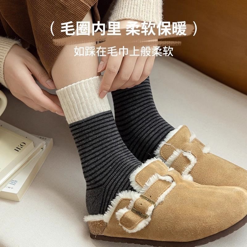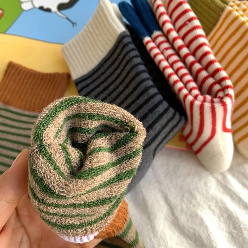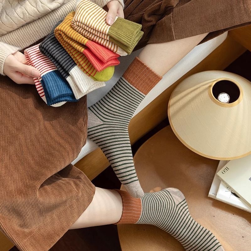 양말 여자 두꺼운 테리 가을과 겨울 중간 쌓인 스택 Maillard Ins Rakou Striped 대조 컬러 레트로 양말 올매치스토어 가기