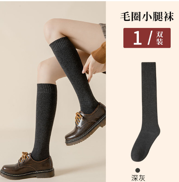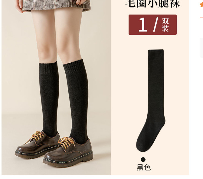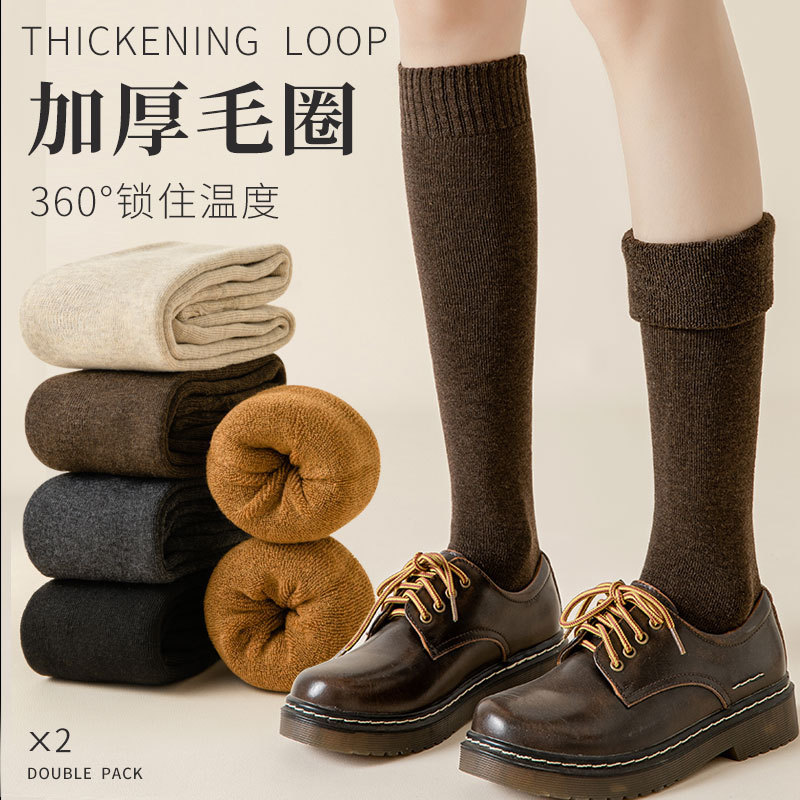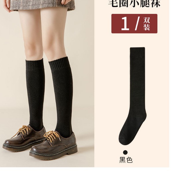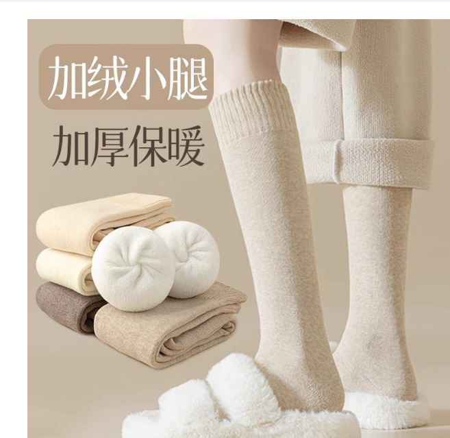 양말 여성의 가을과 겨울 기모 두꺼운 종아리 양말 겨울 테리 따뜻한 내한성 송아지 하이 블랙 롱 양말