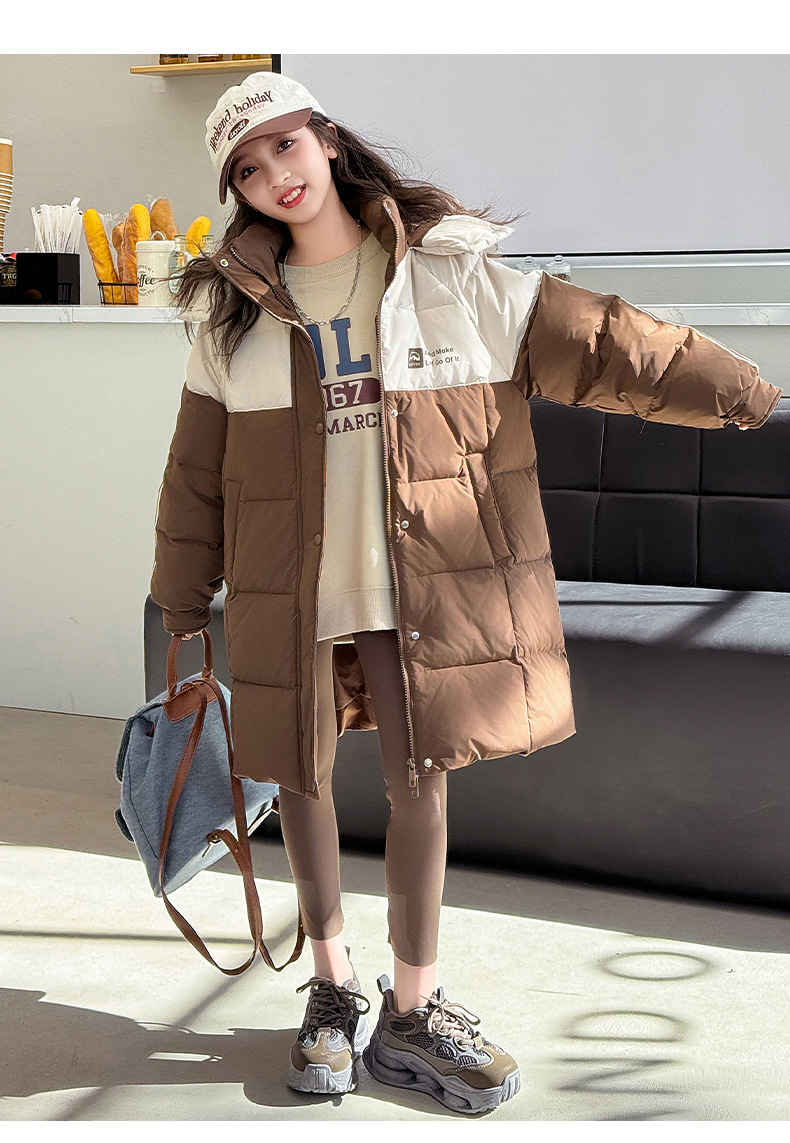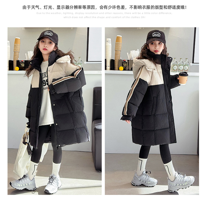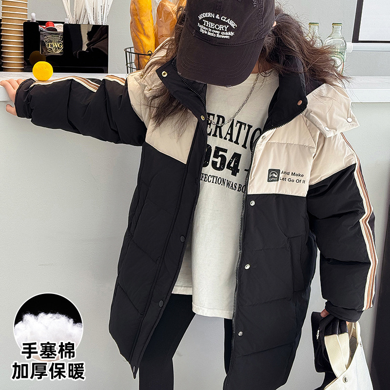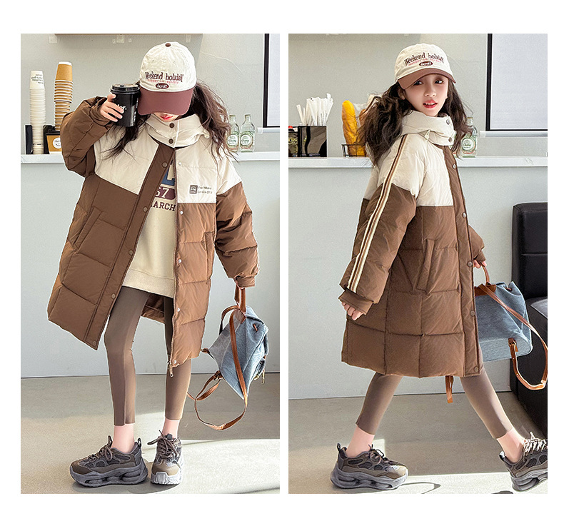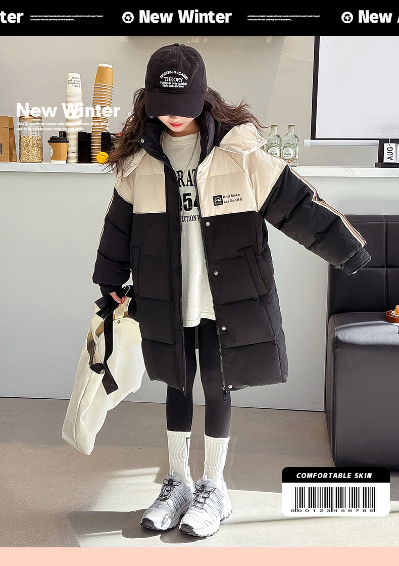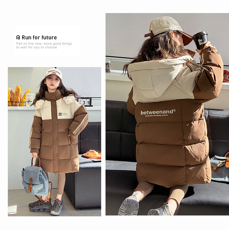 여아 코튼 패딩 재킷 겨울 의류 서양식 아동복은 큰 어린이를위한 중간 길이의 다운 면화 패딩 재킷을 두껍게 만들었습니다.스토어 가기