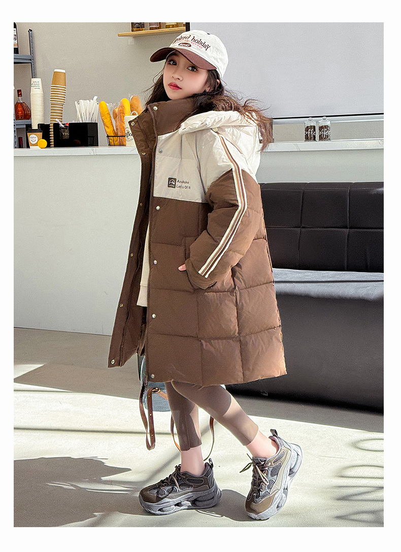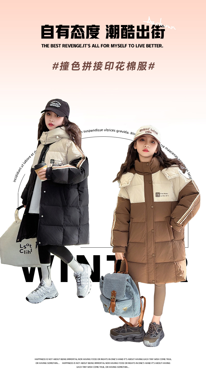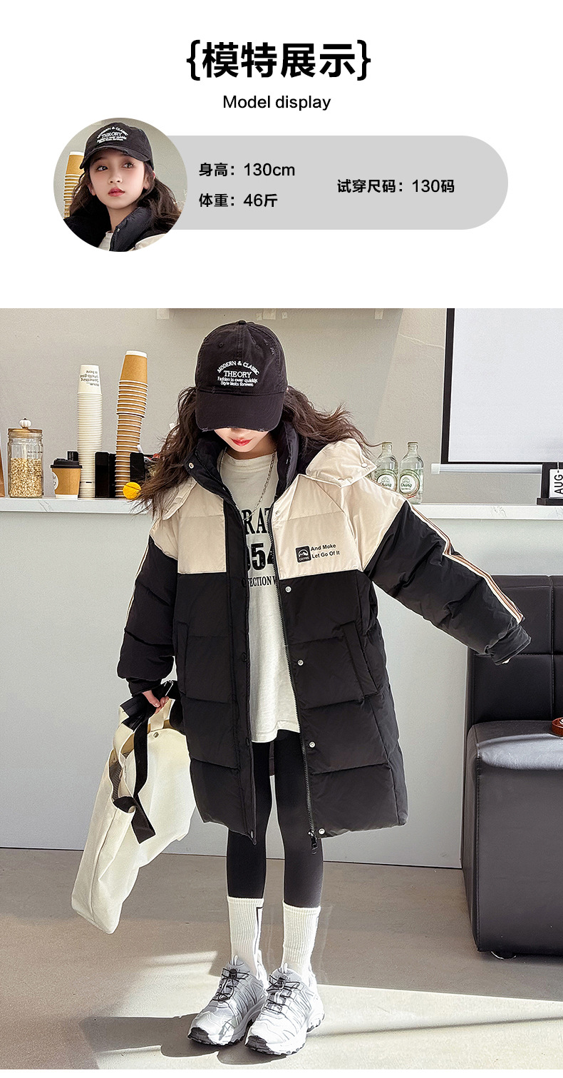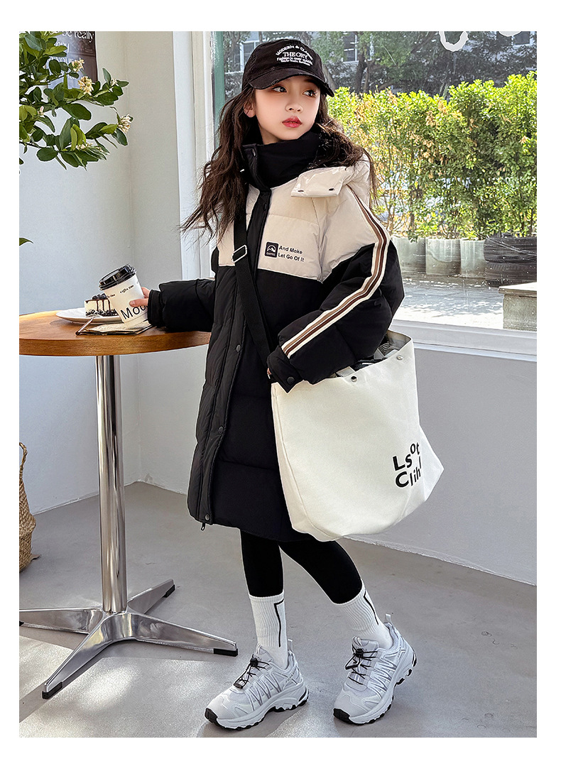 여아 코튼 패딩 재킷 겨울 의류 서양식 아동복은 큰 어린이를위한 중간 길이의 다운 면화 패딩 재킷을 두껍게 만들었습니다.스토어 가기