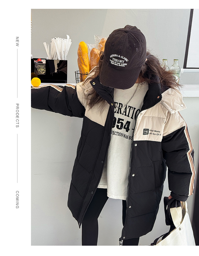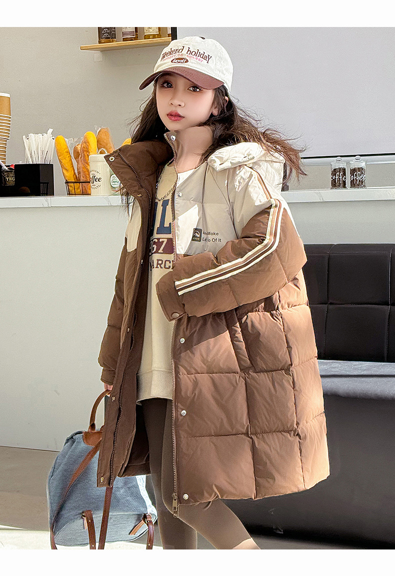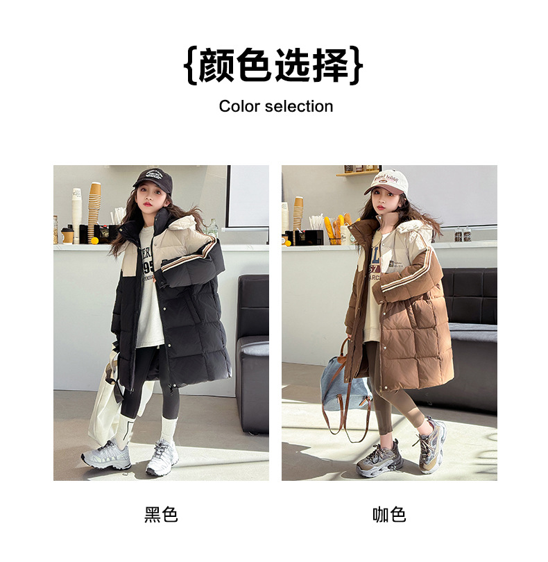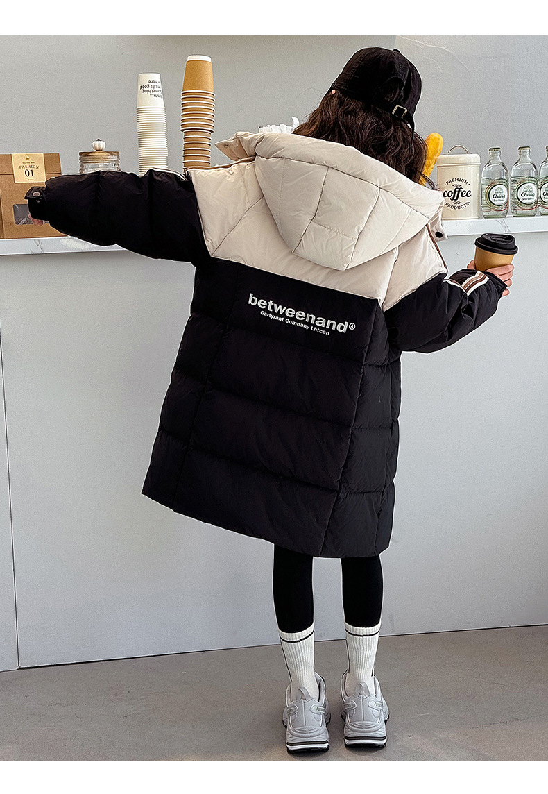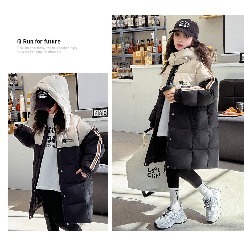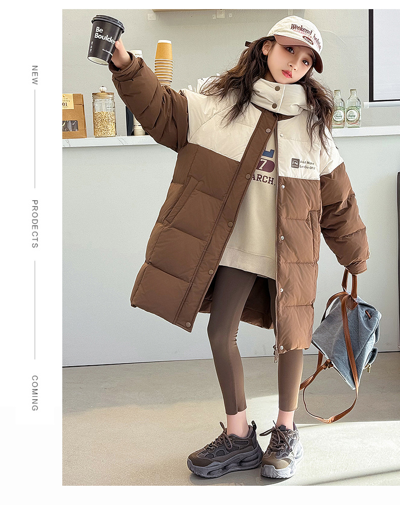 여아 코튼 패딩 재킷 겨울 의류 서양식 아동복은 큰 어린이를위한 중간 길이의 다운 면화 패딩 재킷을 두껍게 만들었습니다.스토어 가기