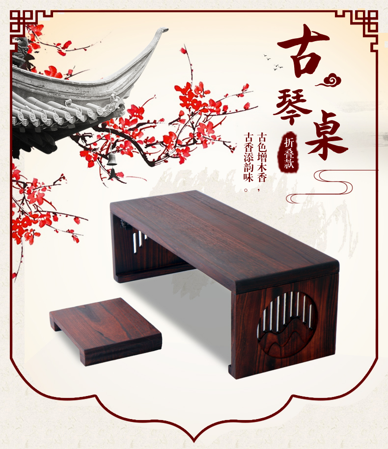9C 접이식 의자 중국 스타일 단단한 나무 골동품 차 테이블 현대 고전적인 선 스타일 Sinology 테이블 음악 상자 Guqin