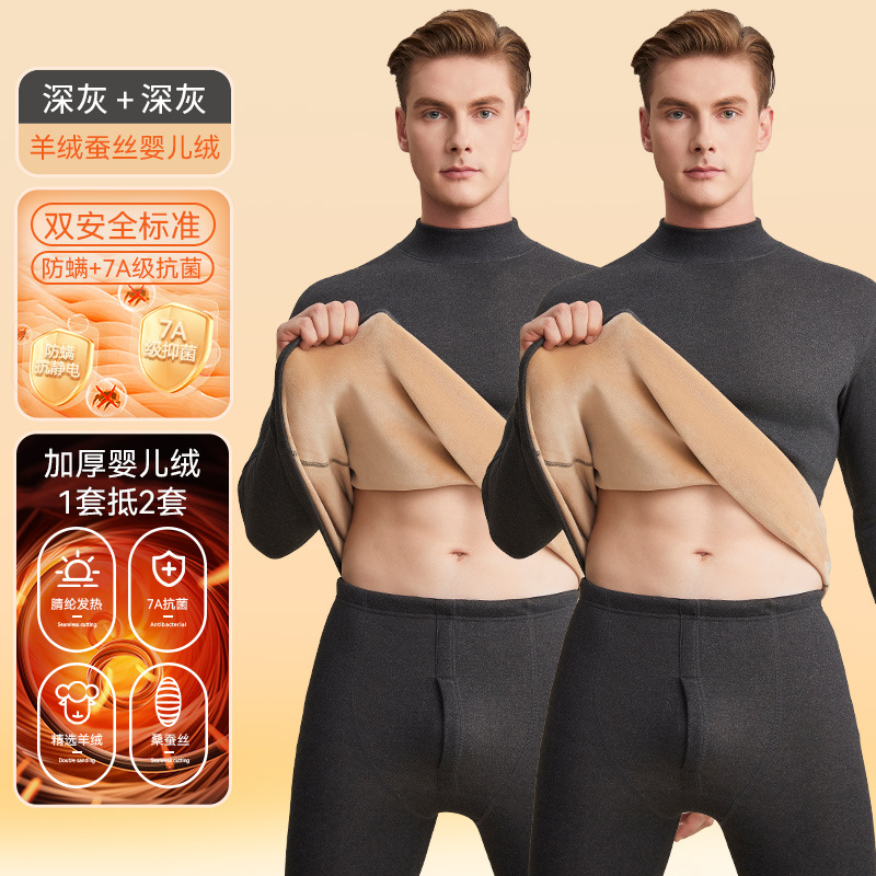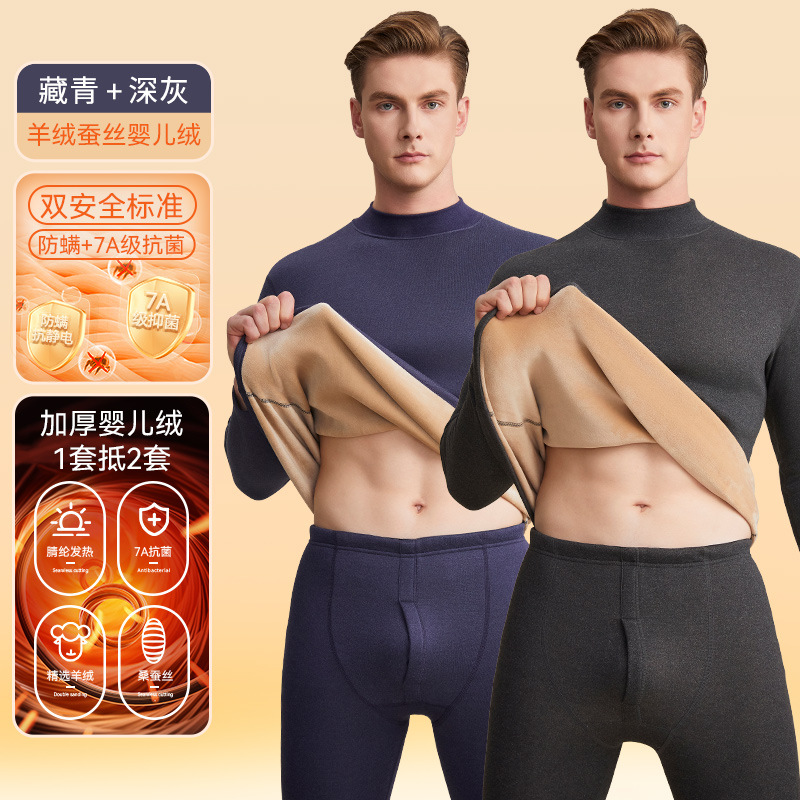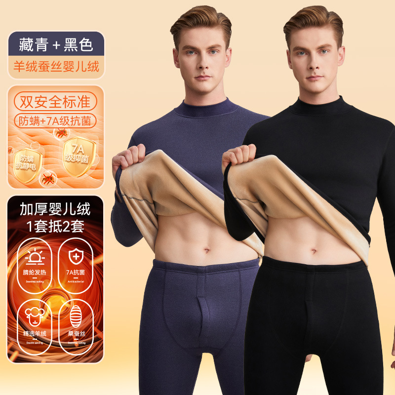 난방 열 속옷 남성용 기모 두꺼운 가을 옷과 바지 내한식 겨울 헤어 생성을 입고 중간 칼라베이스 세트