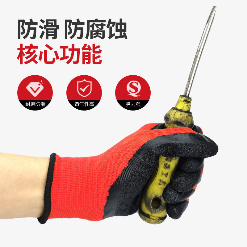 제조업체 13핀 나일론 라텍스 장갑, 찔림 방지, 주름 방지, 고무 코팅, 미끄럼 방지, 내구성, 통기성, 주름형 작업 보호 장갑