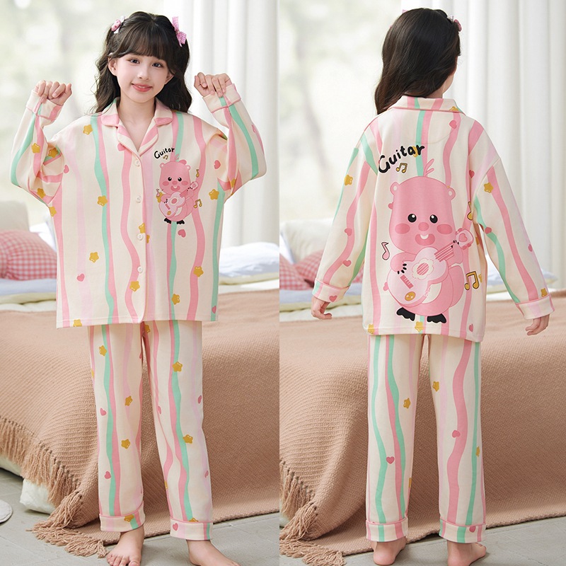 국경 간 봄과 가을 소녀 잠옷 어린이 만화 서양식 잠옷 긴 소매 어린이 아기 홈 의류 세트스토어 가기