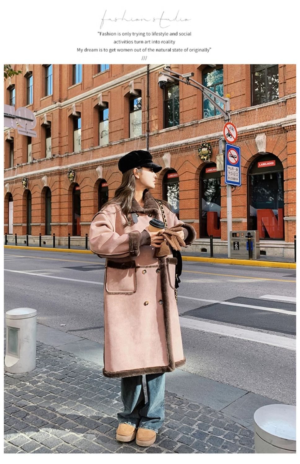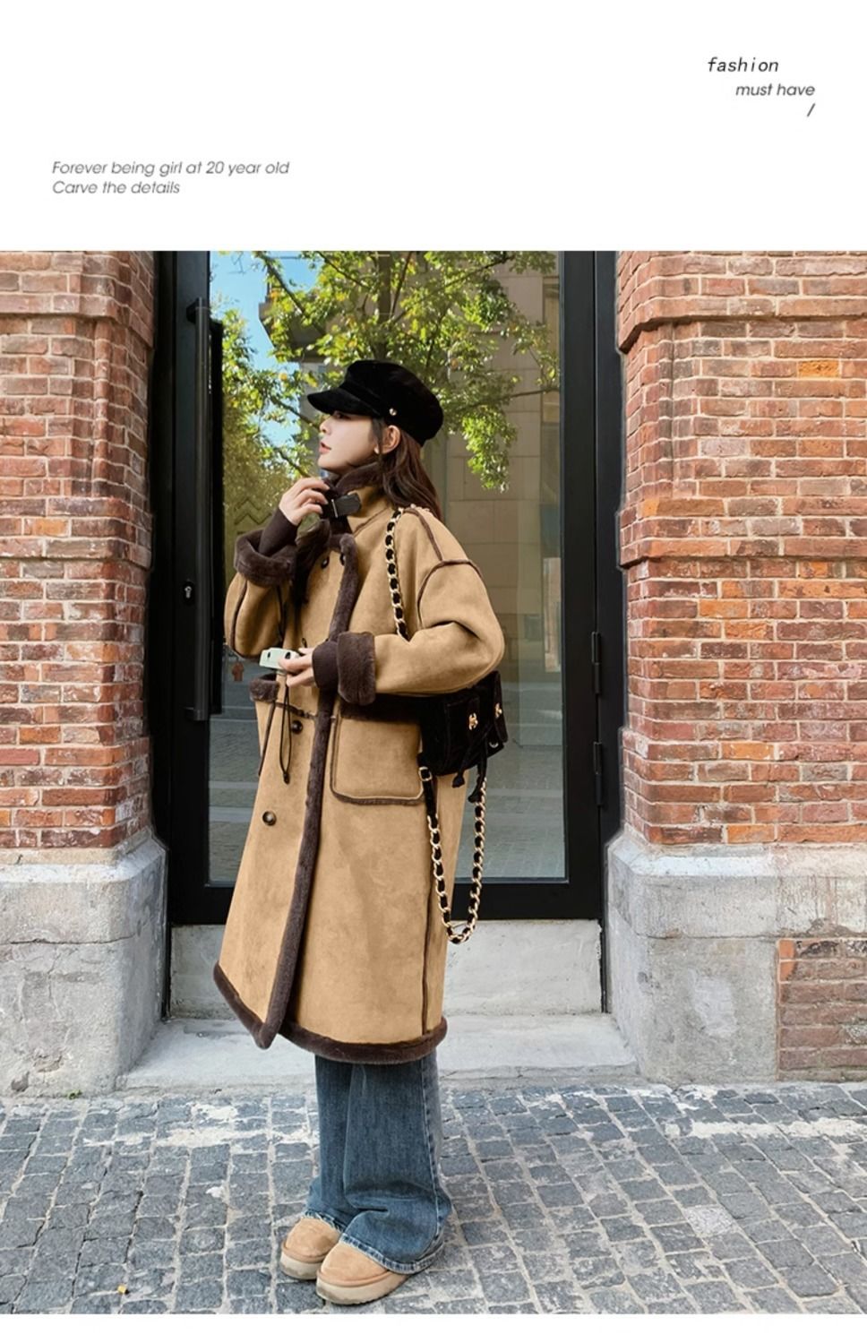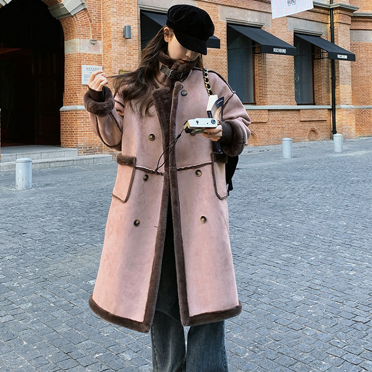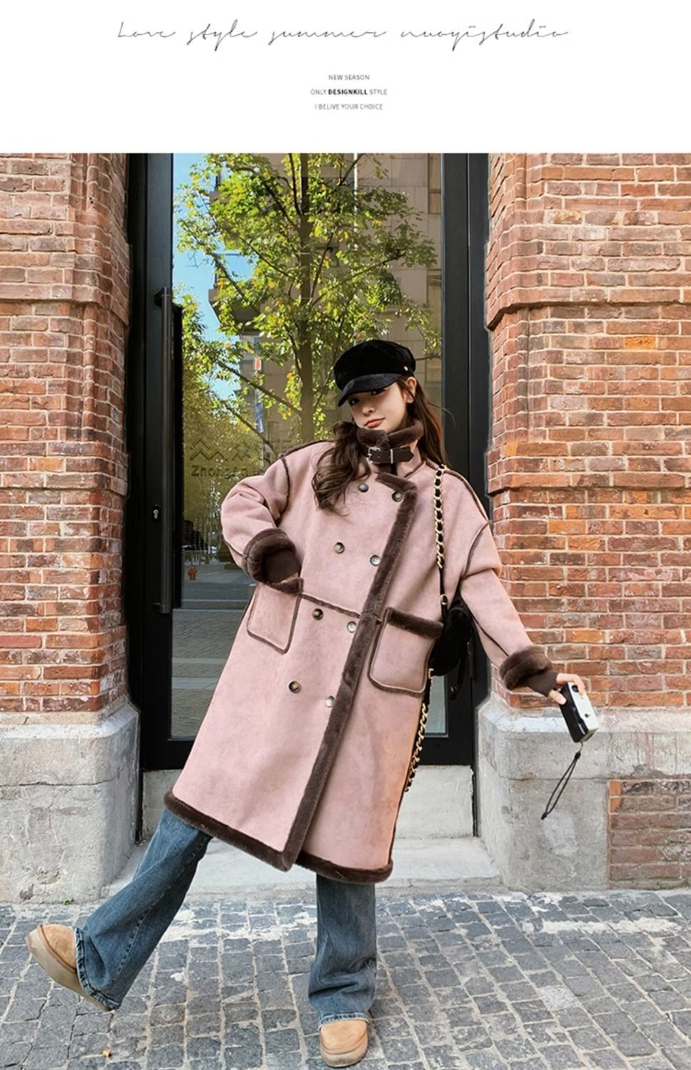 모피 원 코트 여성의 가을과 겨울 하이 엔드 센스 2024 올해의 인기 기모 두꺼운 코트 트렌치 코트스토어 가기