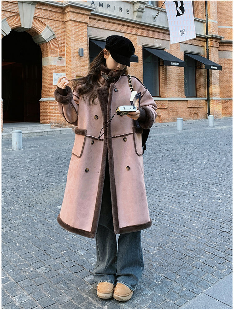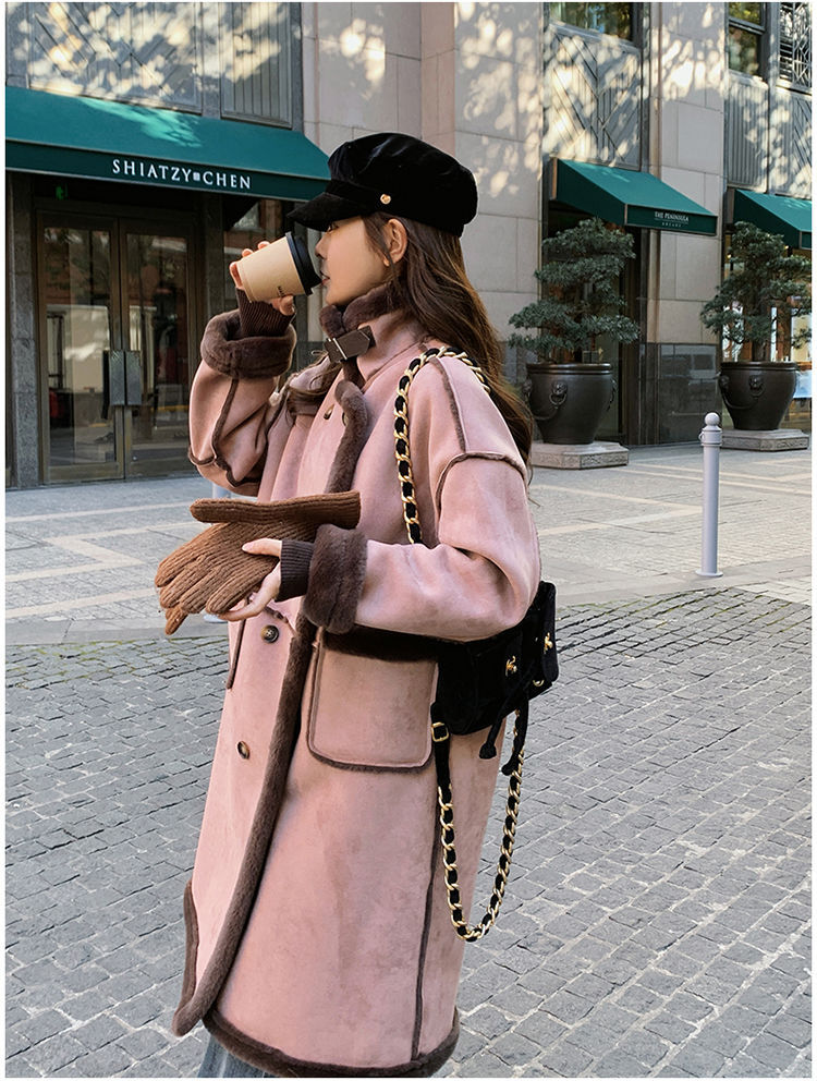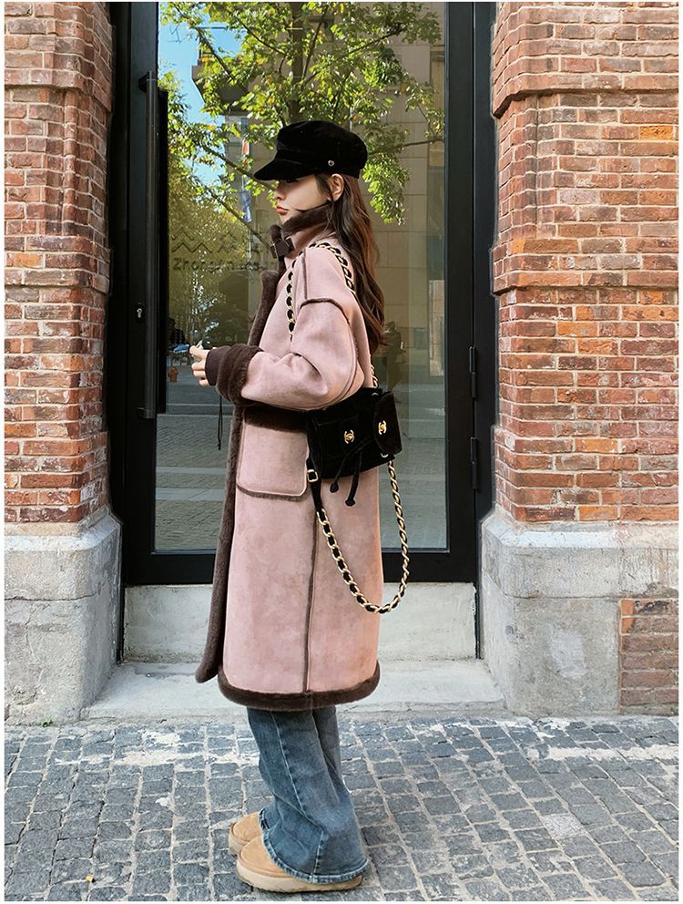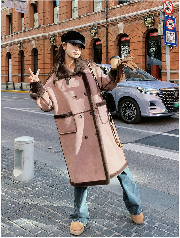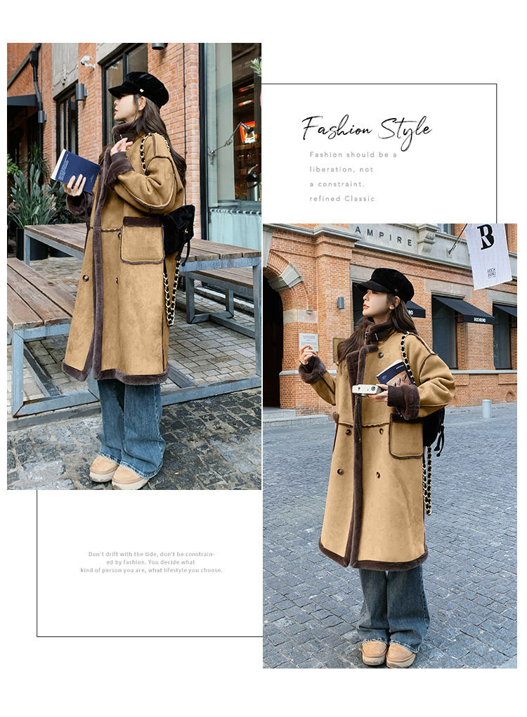 모피 원 코트 여성의 가을과 겨울 하이 엔드 센스 2024 올해의 인기 기모 두꺼운 코트 트렌치 코트스토어 가기