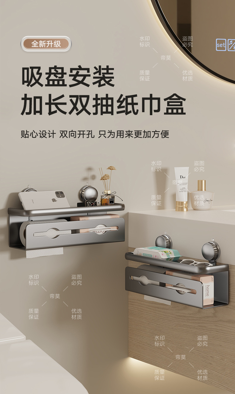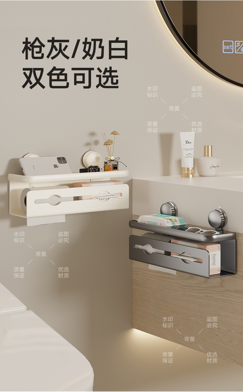 화장실 흡입 컵 조직 상자 화장실 욕실 비 펀치 화장실 롤 종이 보관 랙 벽 교수형 화장실 상자
