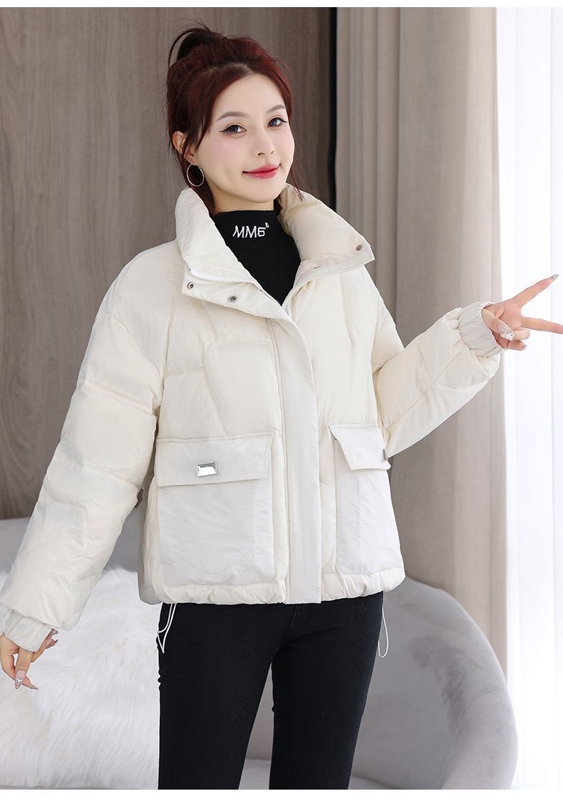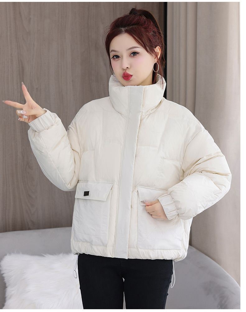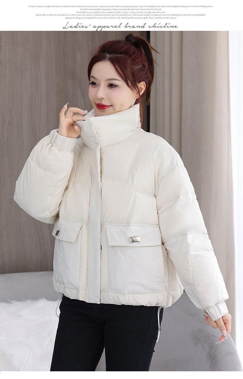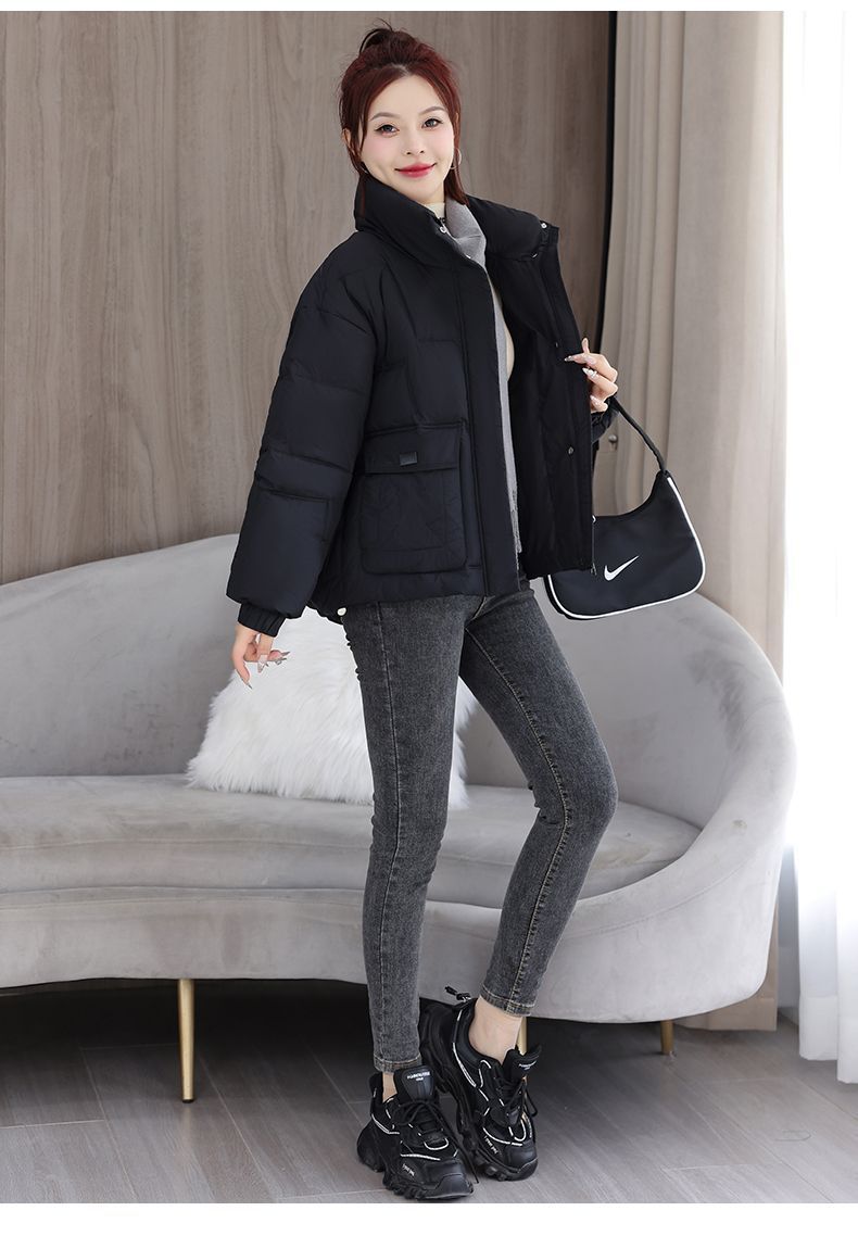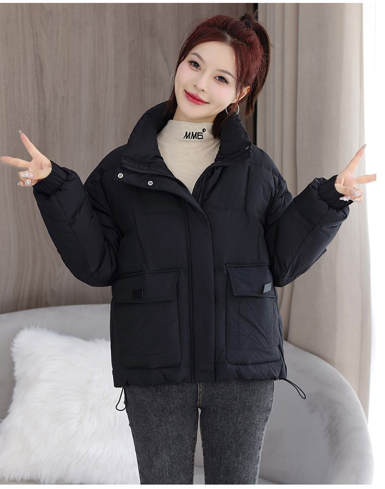 2024 더블 포켓 겨울 코튼 코트 새로운 한국 스타일 느슨한 따뜻한 짧은 코튼 코트 두꺼운 칼라 코튼 코트
