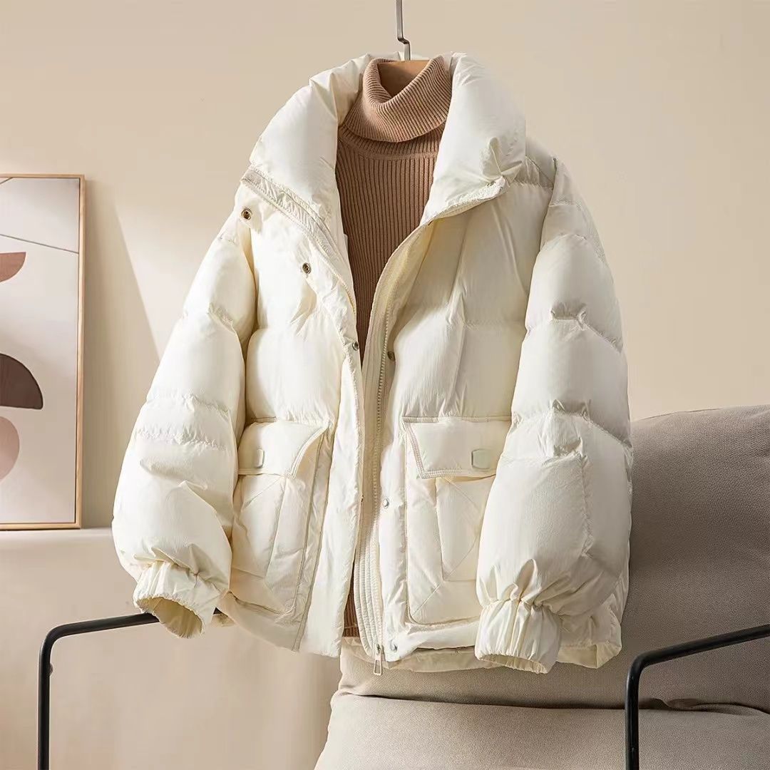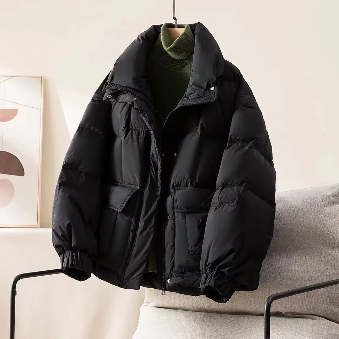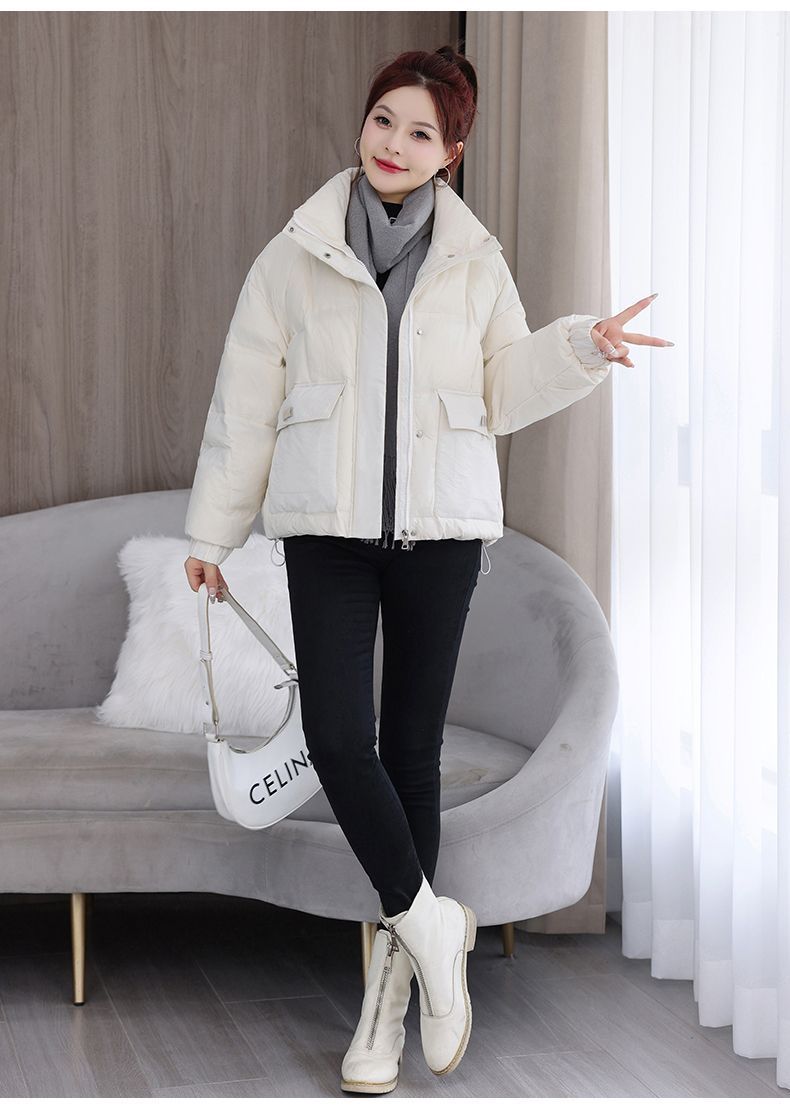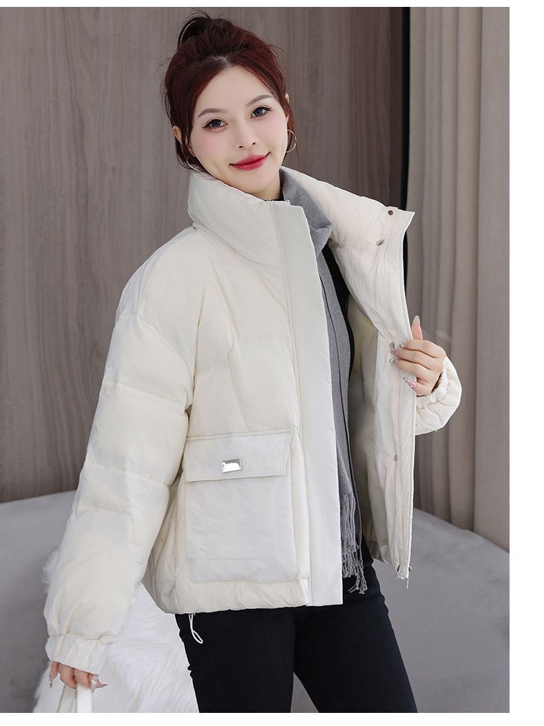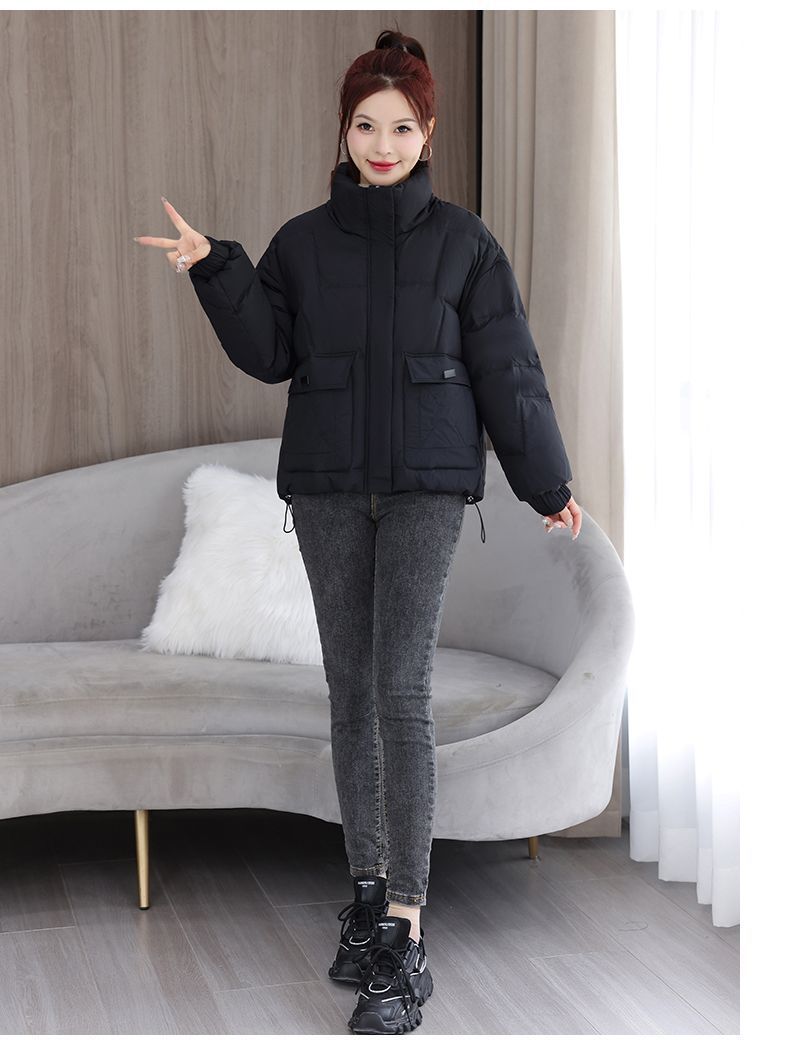 2024 더블 포켓 겨울 코튼 코트 새로운 한국 스타일 느슨한 따뜻한 짧은 코튼 코트 두꺼운 칼라 코튼 코트