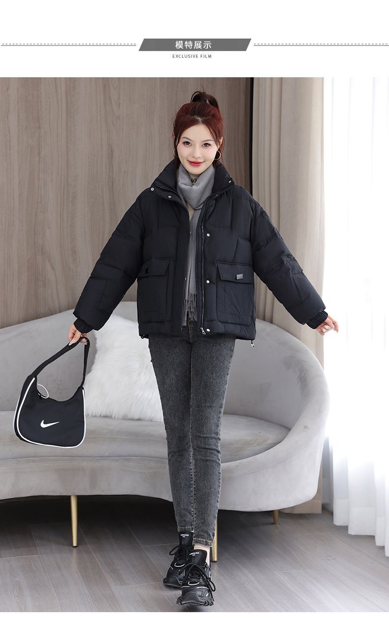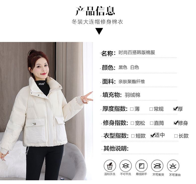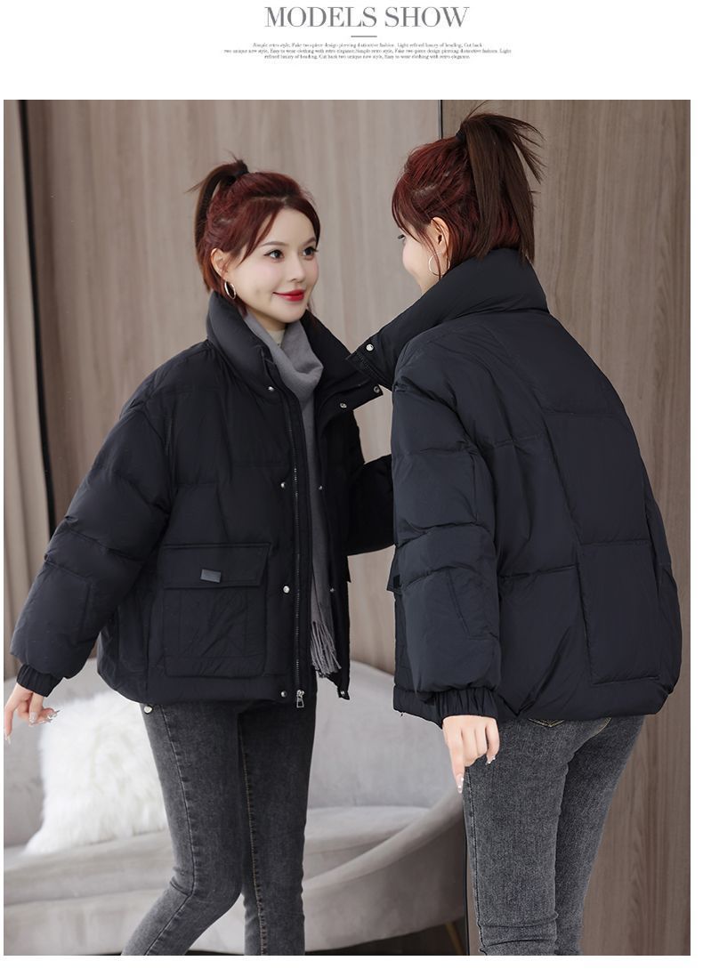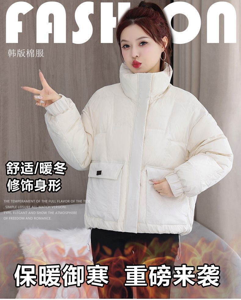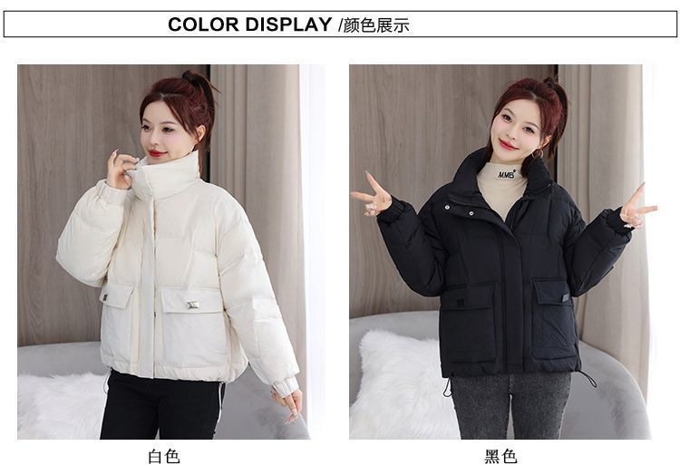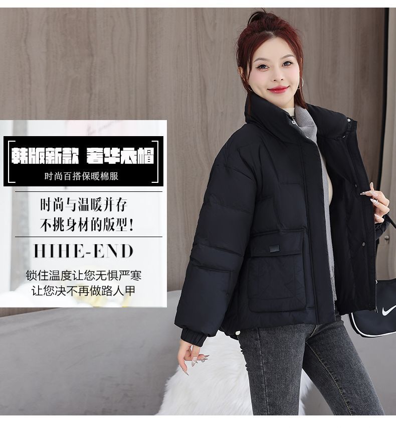 2024 더블 포켓 겨울 코튼 코트 새로운 한국 스타일 느슨한 따뜻한 짧은 코튼 코트 두꺼운 칼라 코튼 코트스토어 가기