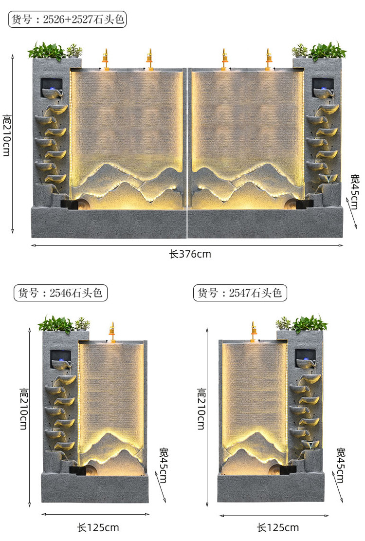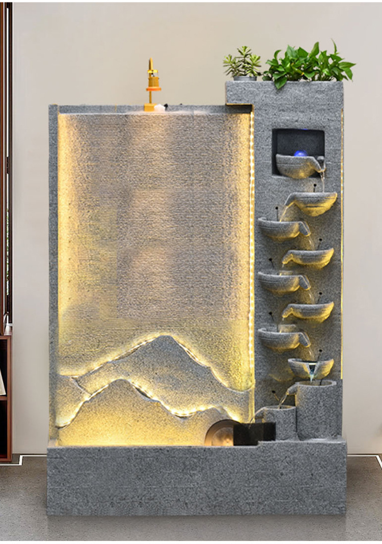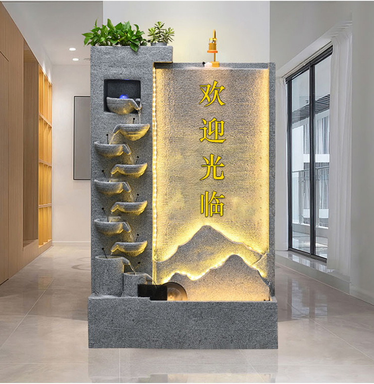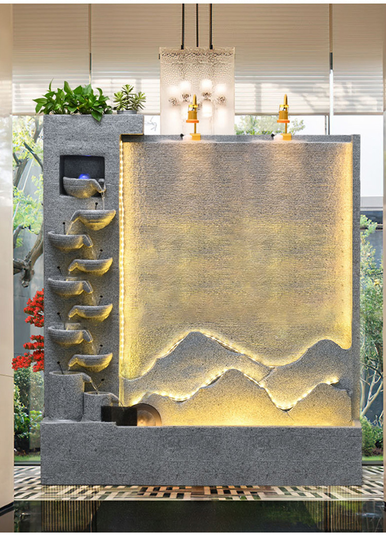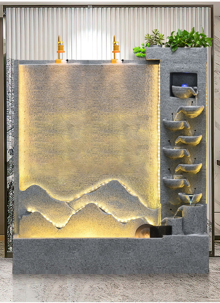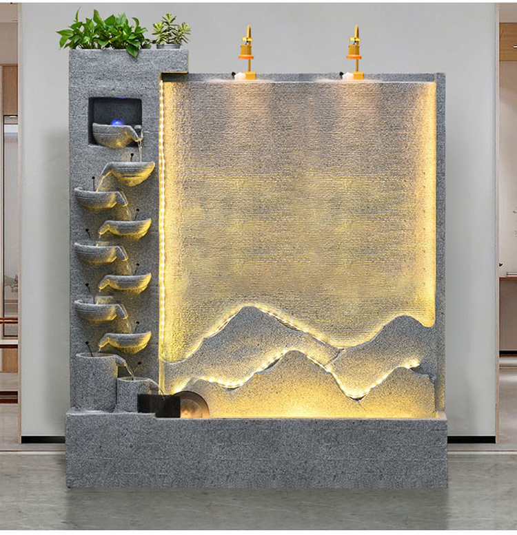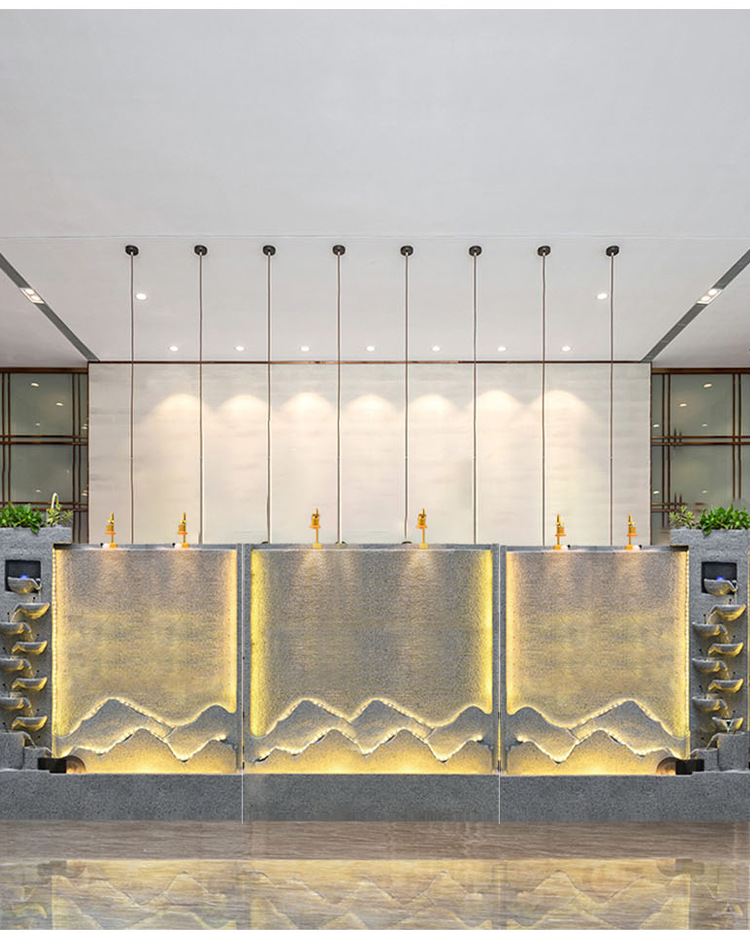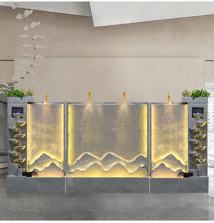 큰 간단한 유럽 거실 물 커튼 벽 물고기 탱크 물 장식품 사무실 입구 바닥 대 바닥 부 재활용 물 스크린 보기스토어 가기