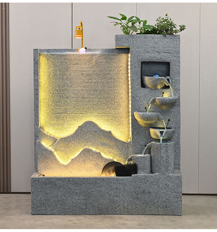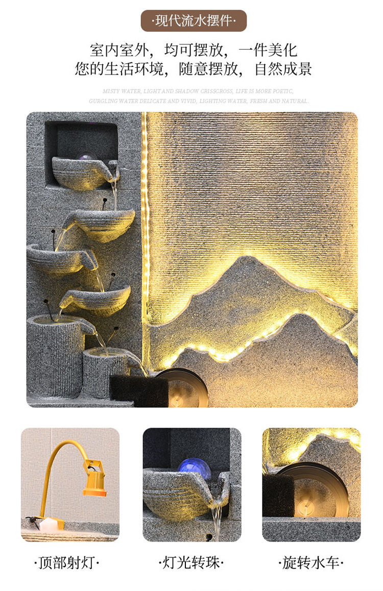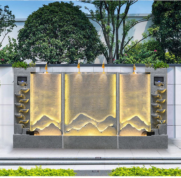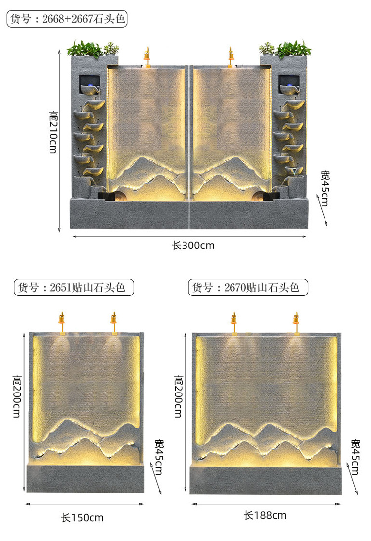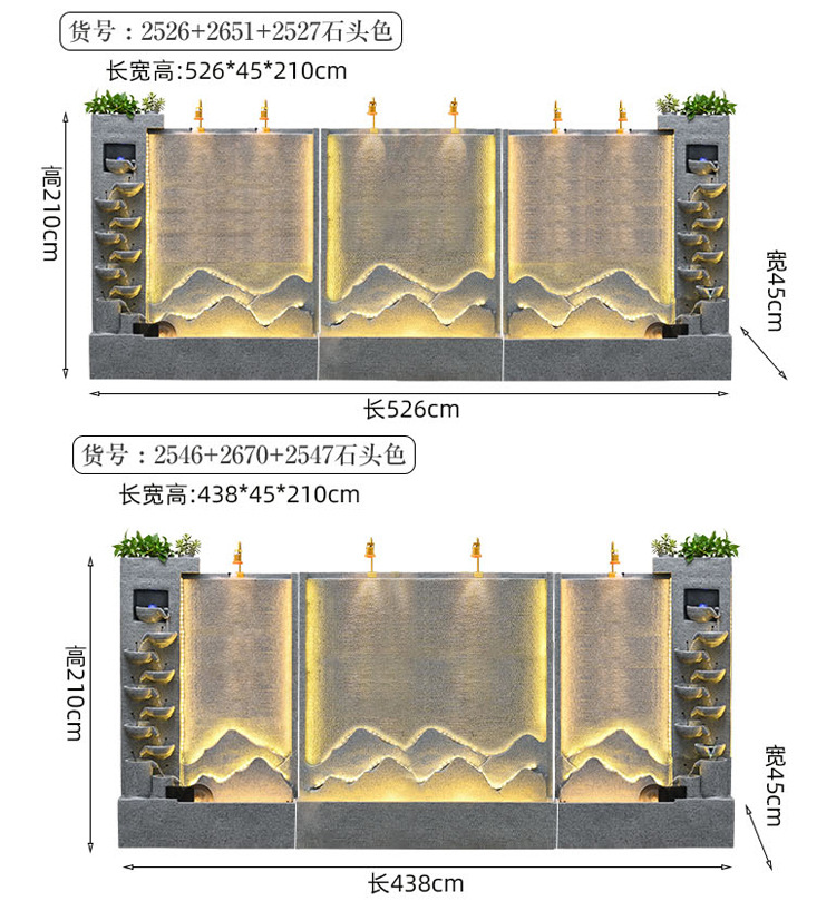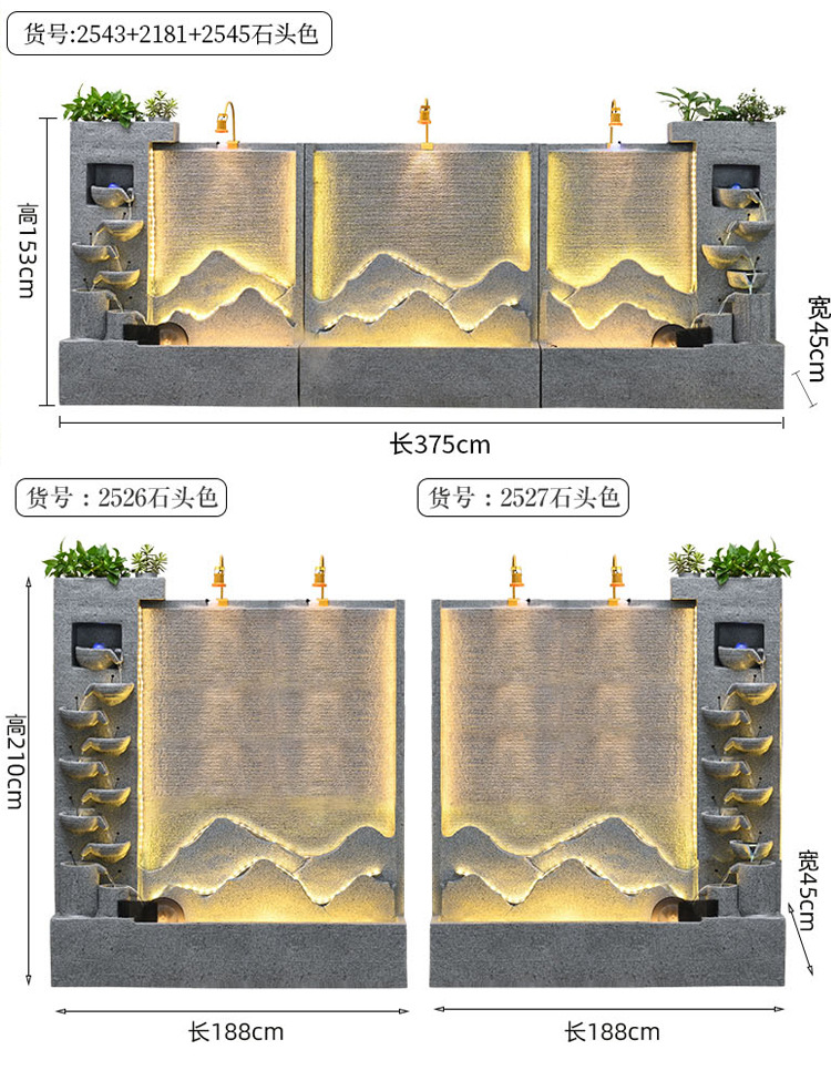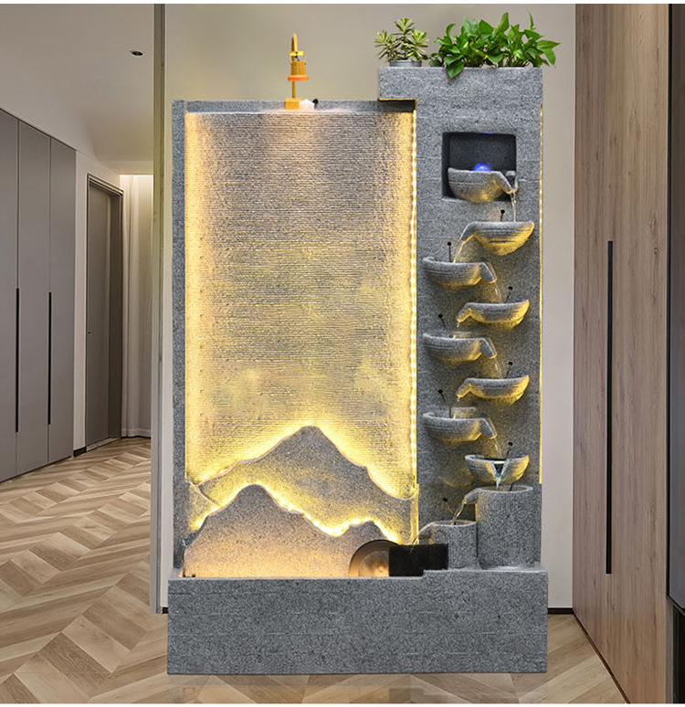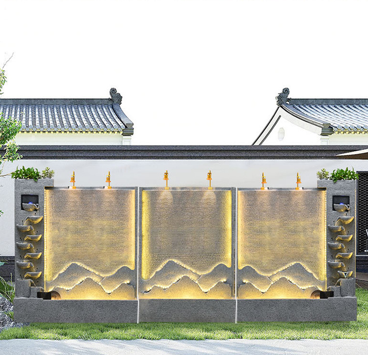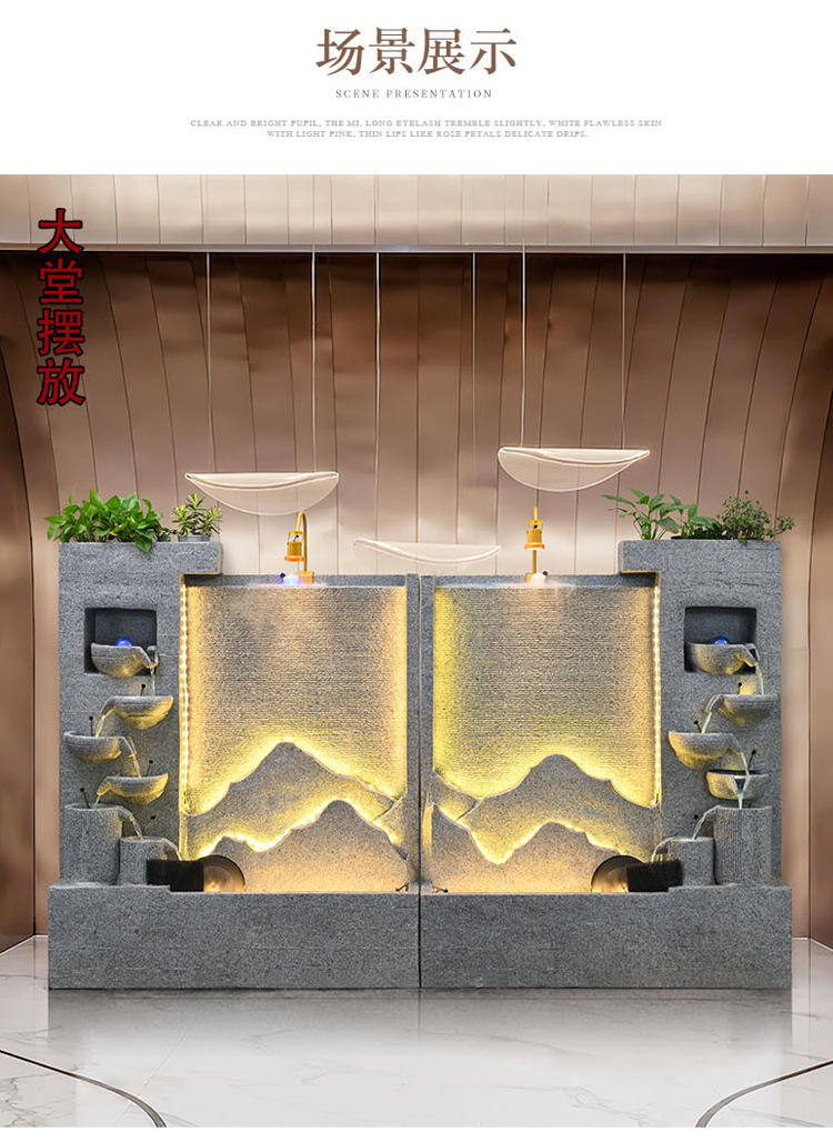 큰 간단한 유럽 거실 물 커튼 벽 물고기 탱크 물 장식품 사무실 입구 바닥 대 바닥 부 재활용 물 스크린 보기스토어 가기