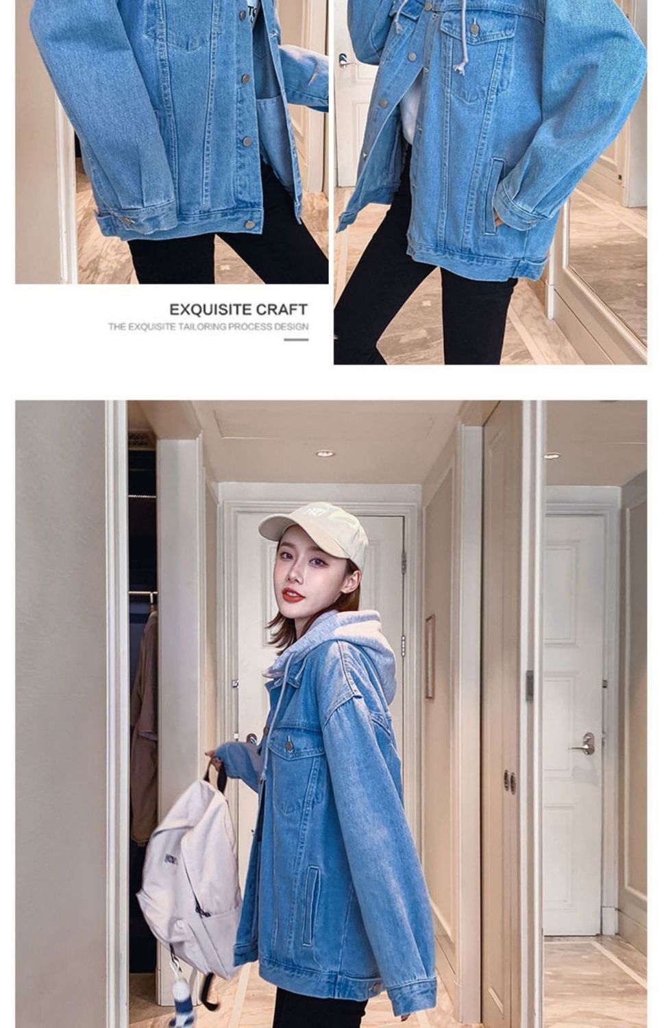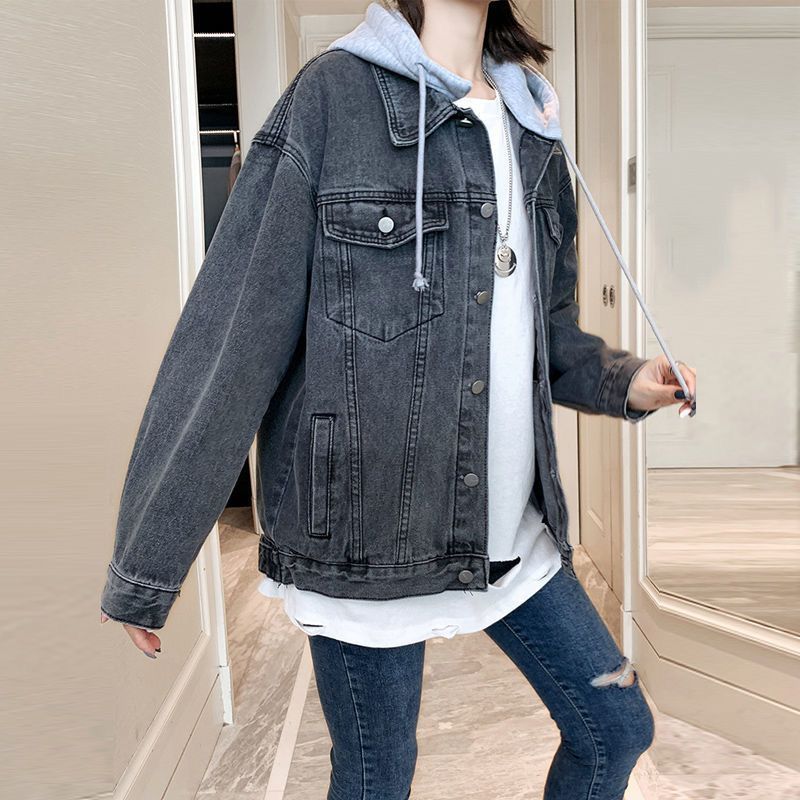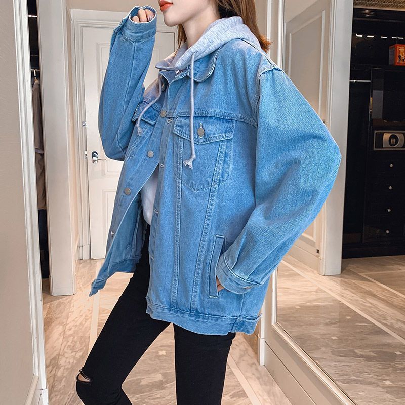 2025 봄 가을 신상 데님 재킷 여성용 한국 스타일 루즈 레트로 다용도 후드 재킷 유행 데님 의류스토어 가기