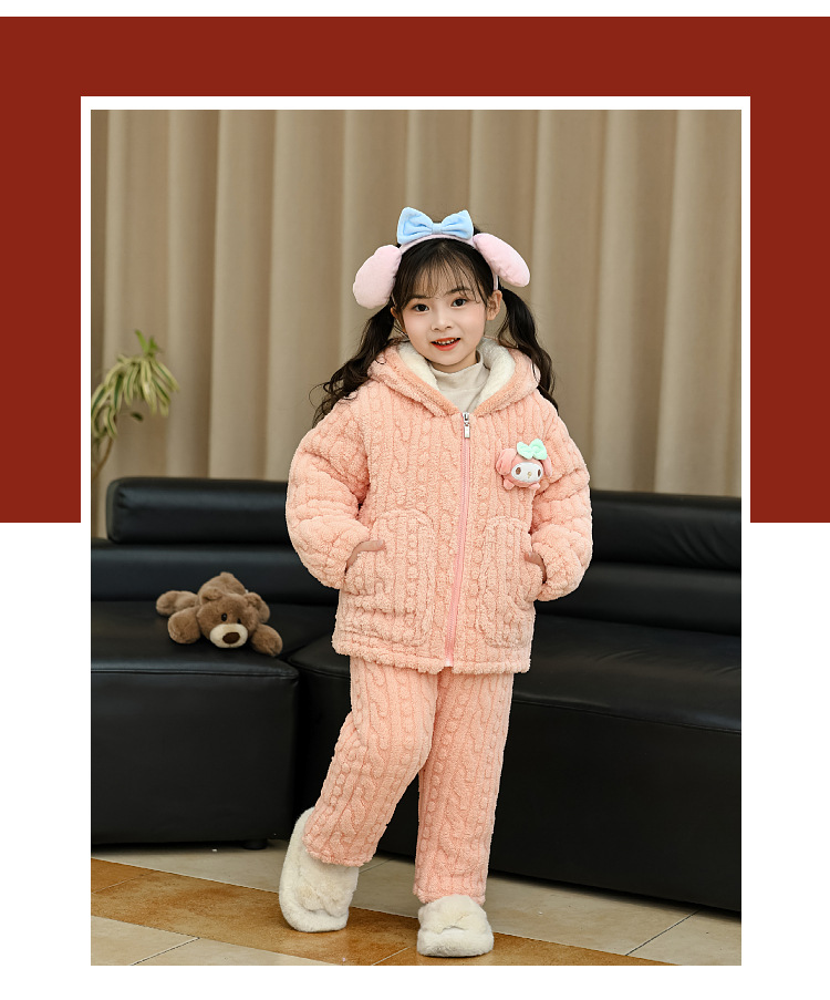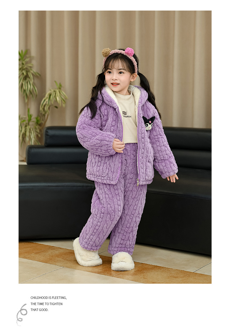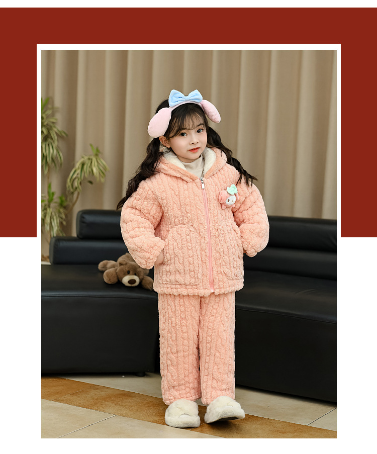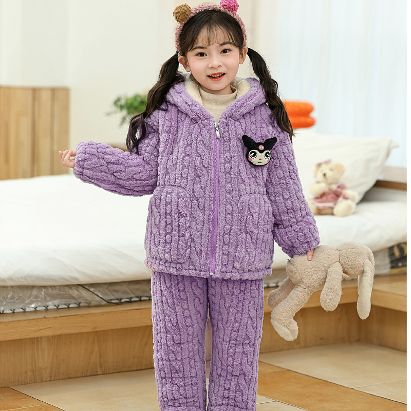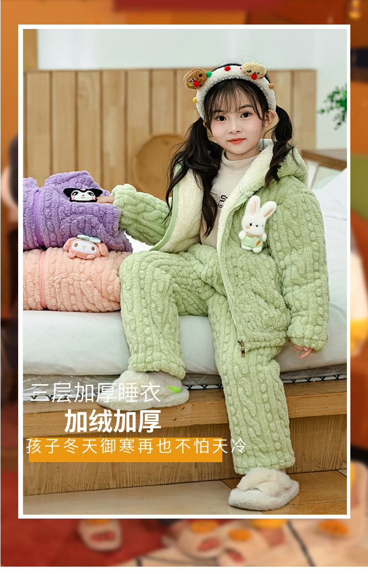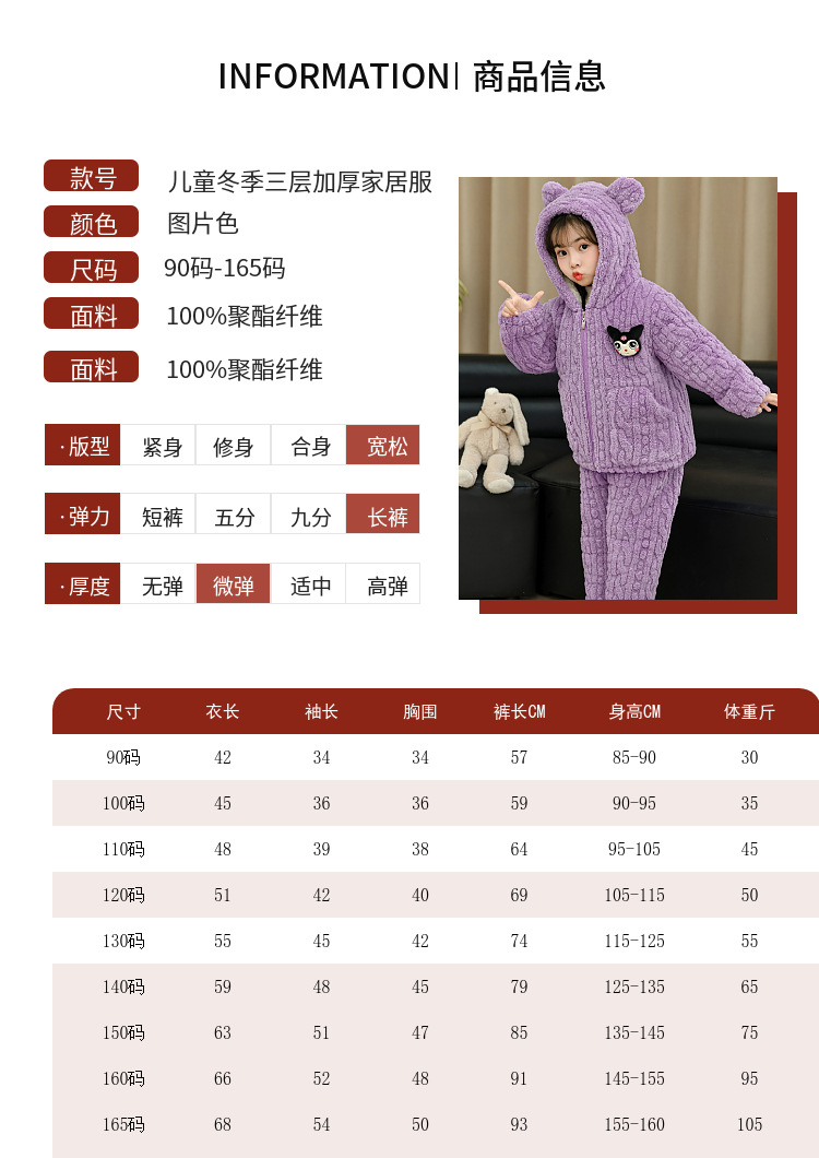 어린이 가을과 겨울 3 층 기모 두꺼운 잠옷 소녀 아기의 큰 어린이 만화 따뜻한 집 옷 세트스토어 가기