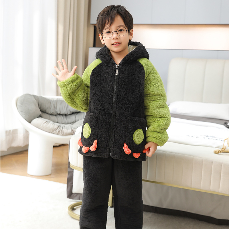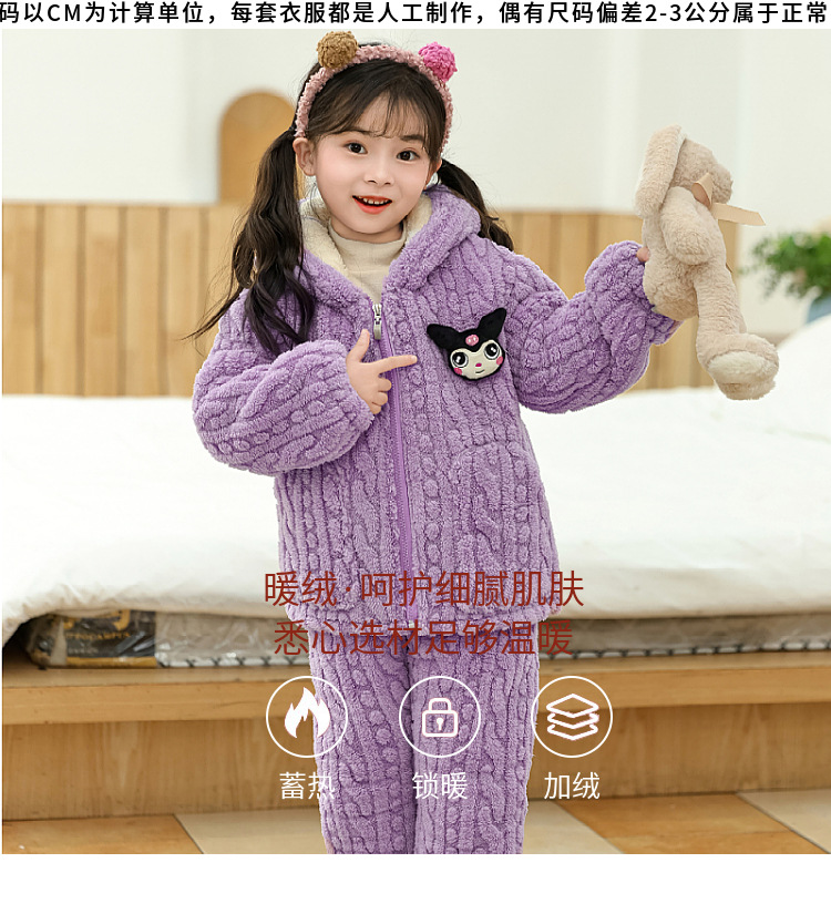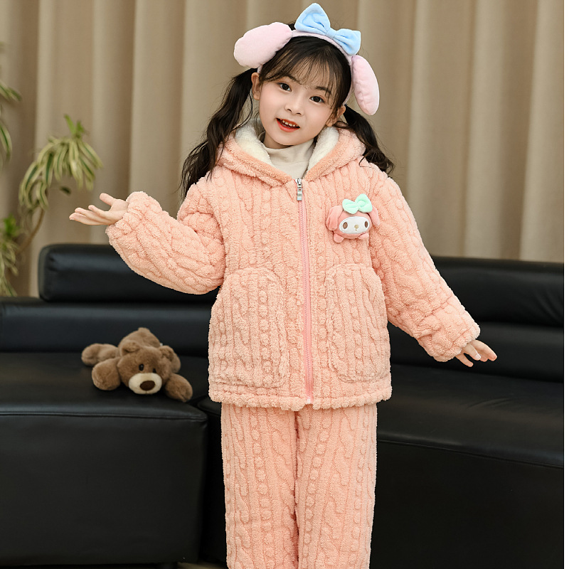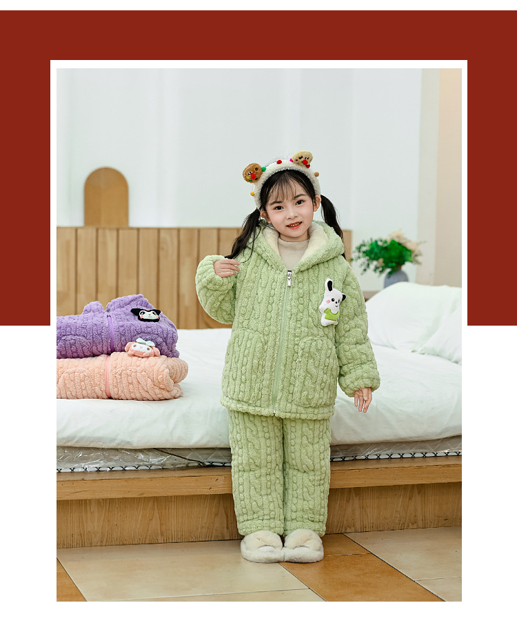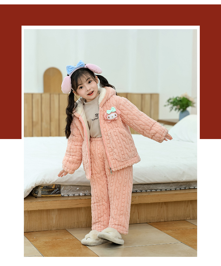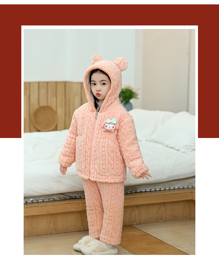 어린이 가을과 겨울 3 층 기모 두꺼운 잠옷 소녀 아기의 큰 어린이 만화 따뜻한 집 옷 세트스토어 가기