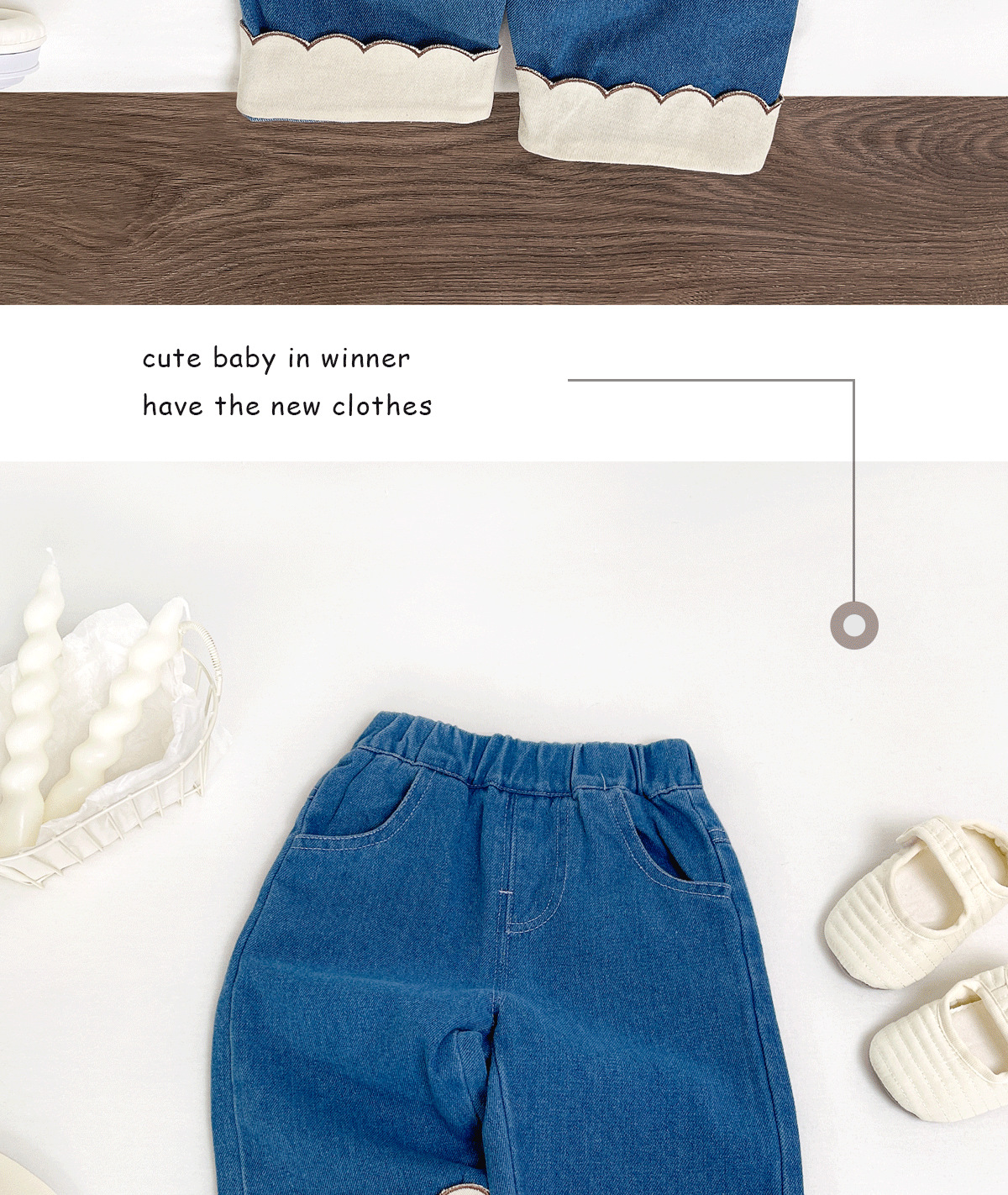 여자 패션 청바지 가을 한국 스타일 아동 의류 아기 소녀 소프트 청바지 아동 바지 레이스 새로운 스타일스토어 가기