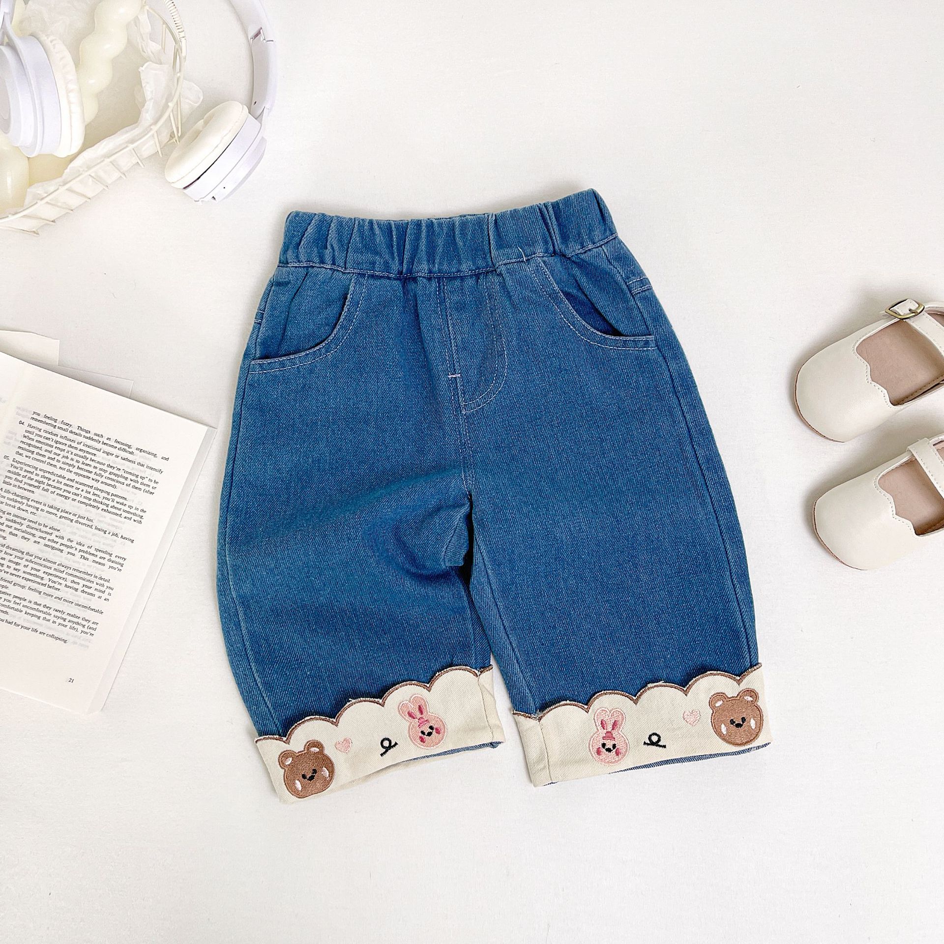 여자 패션 청바지 가을 한국 스타일 아동 의류 아기 소녀 소프트 청바지 아동 바지 레이스 새로운 스타일