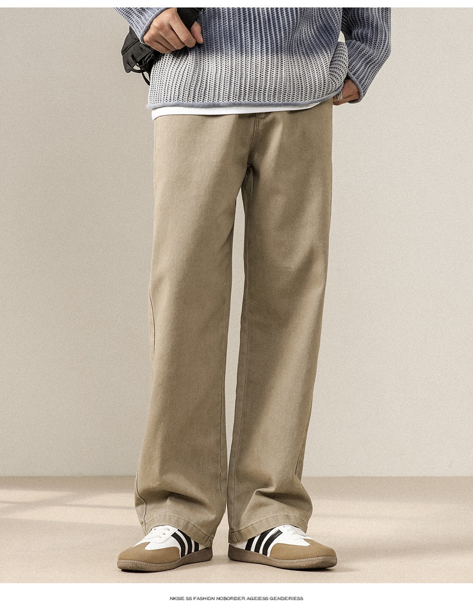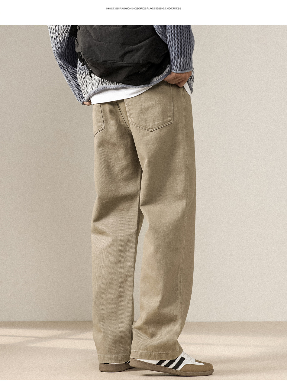스트레이트 캐주얼 바지 남자 기모 새로운 빈티지 워시 청바지 간단한 느슨한 긴 플러스 사이즈 넓은 다리 바지