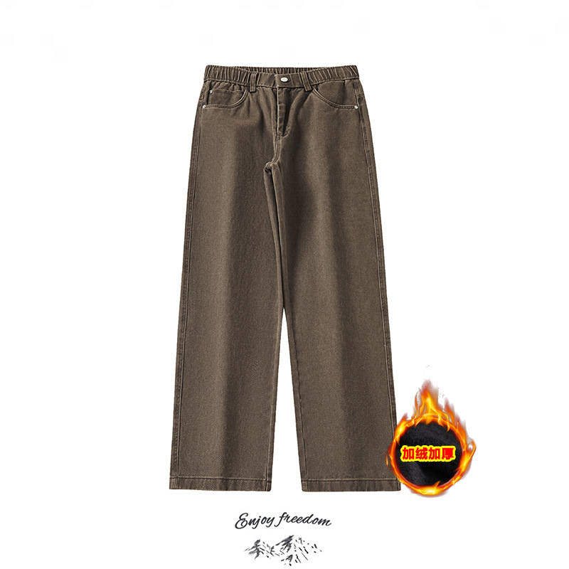 스트레이트 캐주얼 바지 남자 기모 새로운 빈티지 워시 청바지 간단한 느슨한 긴 플러스 사이즈 넓은 다리 바지스토어 가기