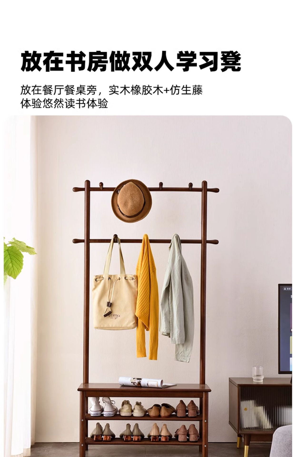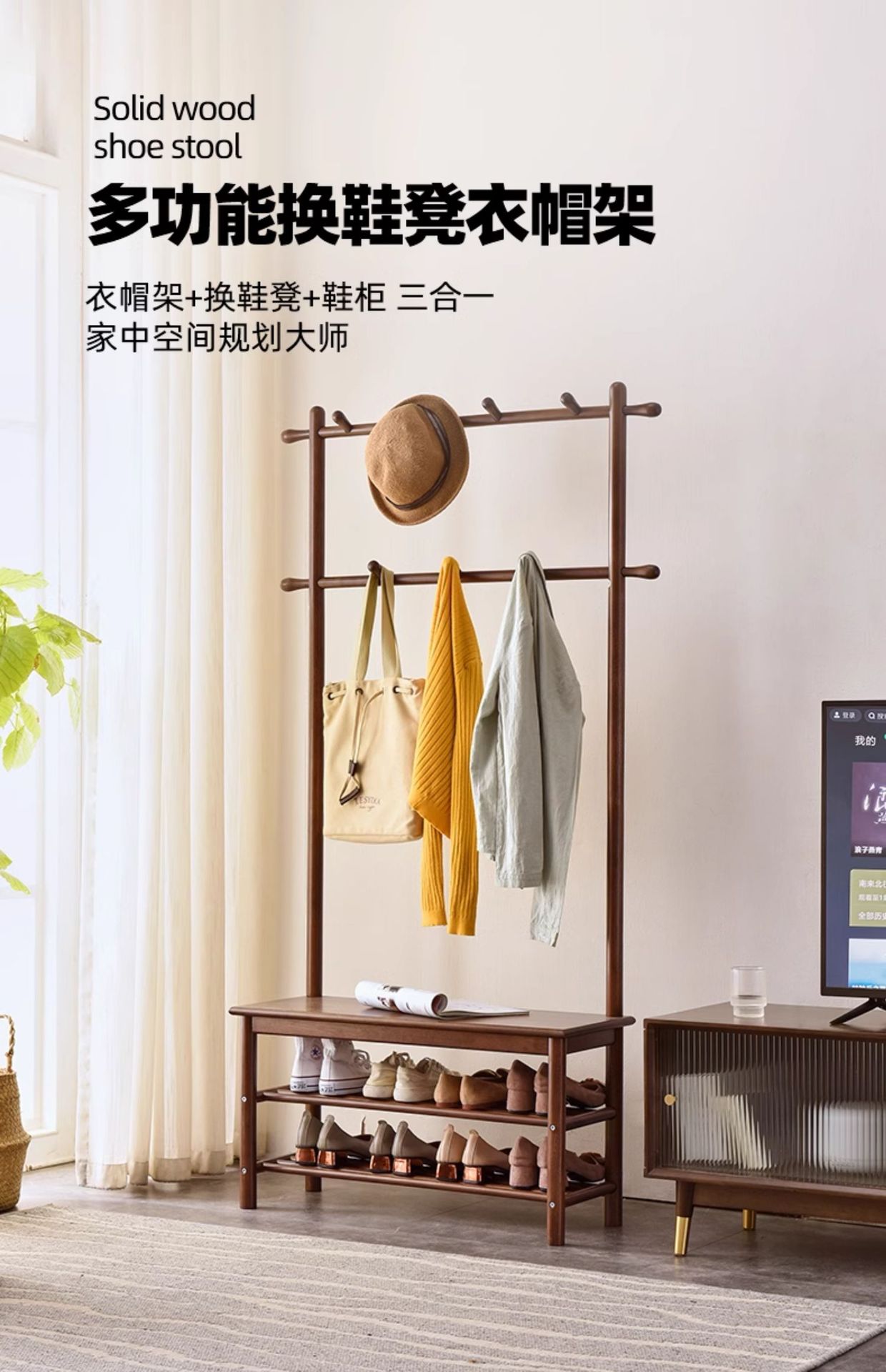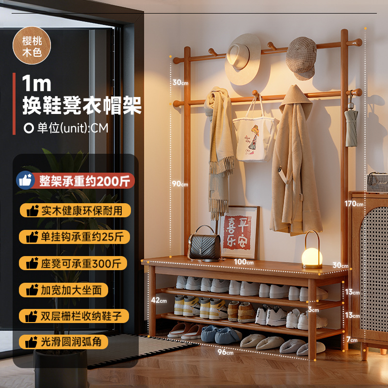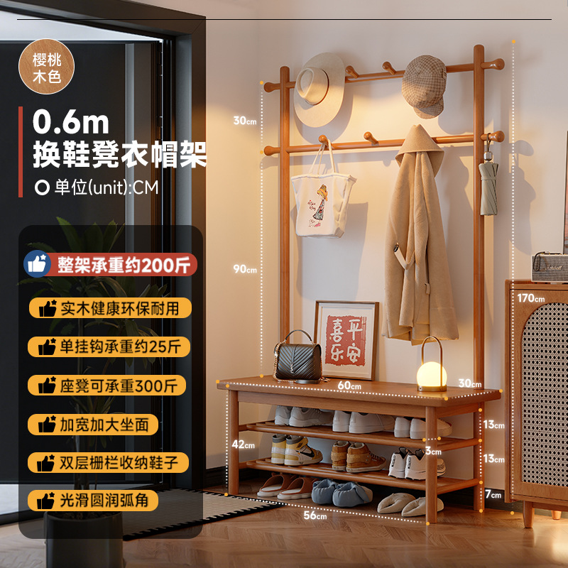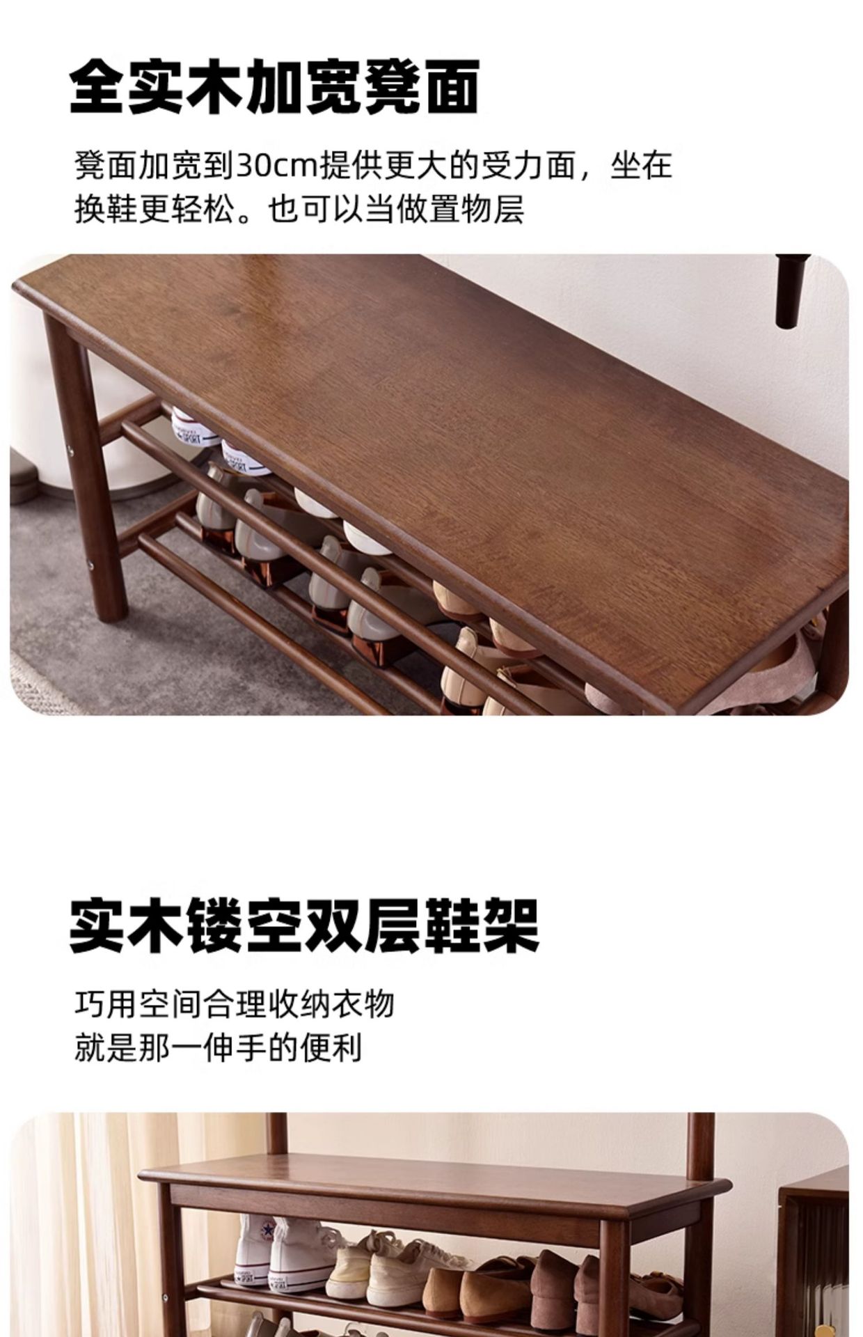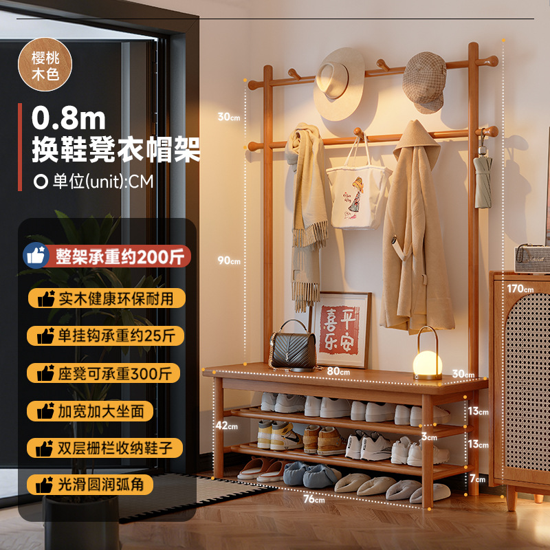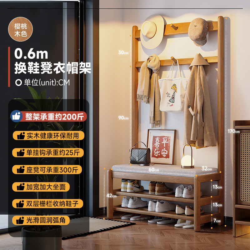 원목 신발 교체대 겸 옷걸이 현관 신발장 겸 의자 신발장 겸 옷걸이 가정용 신발 착화대스토어 가기