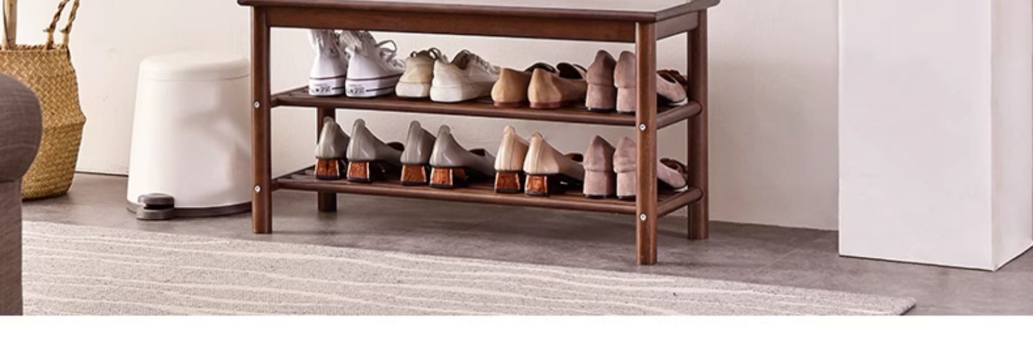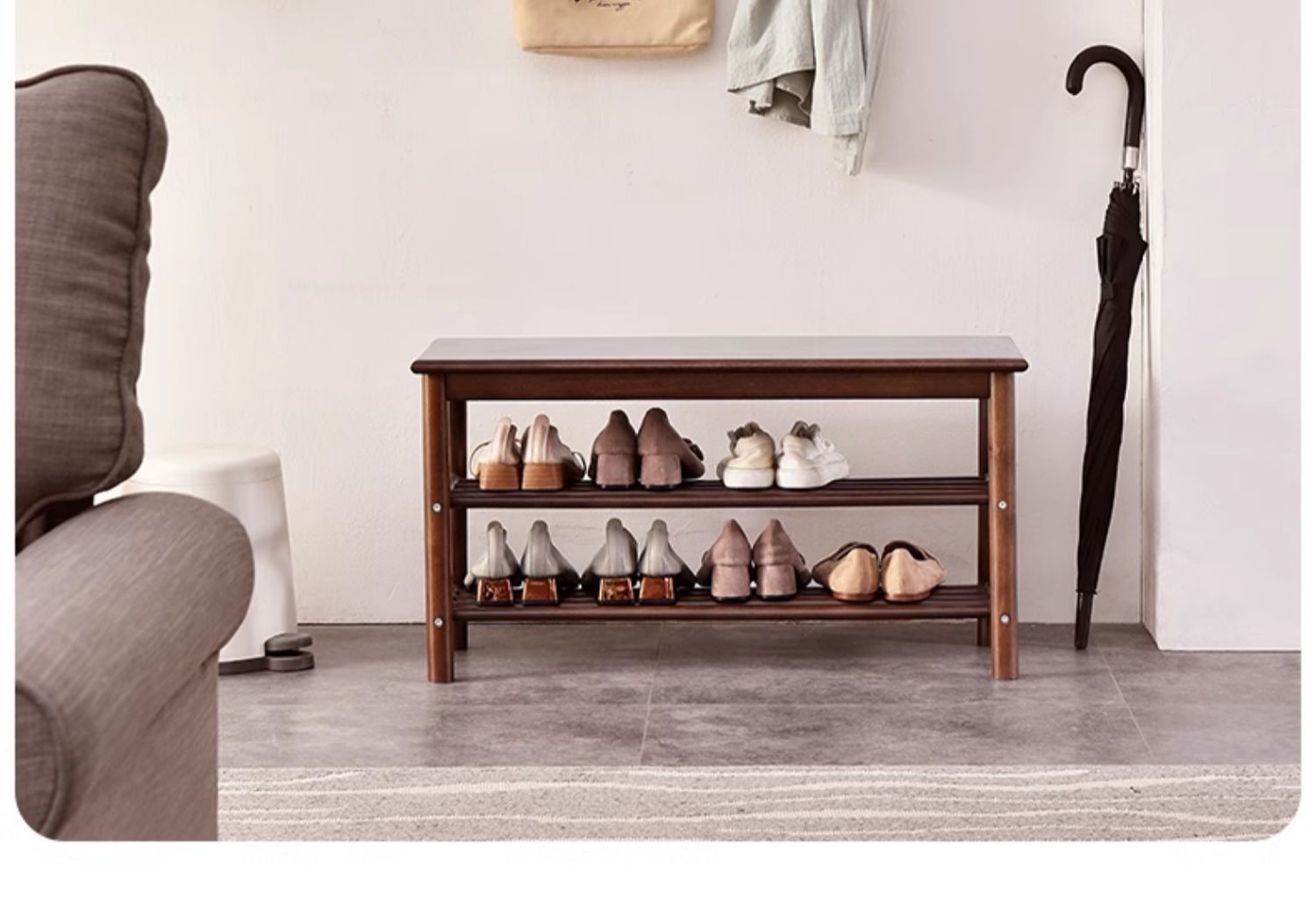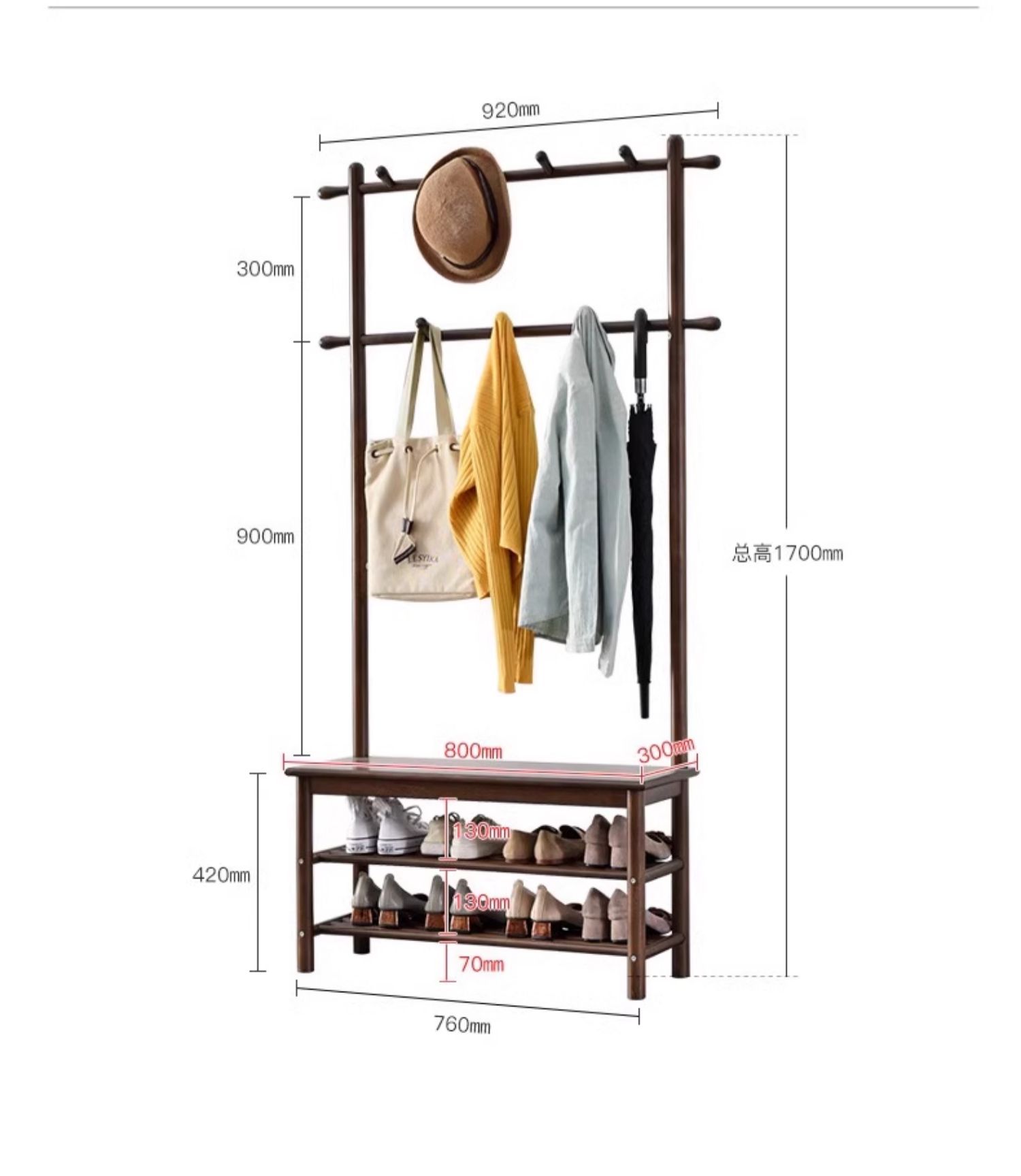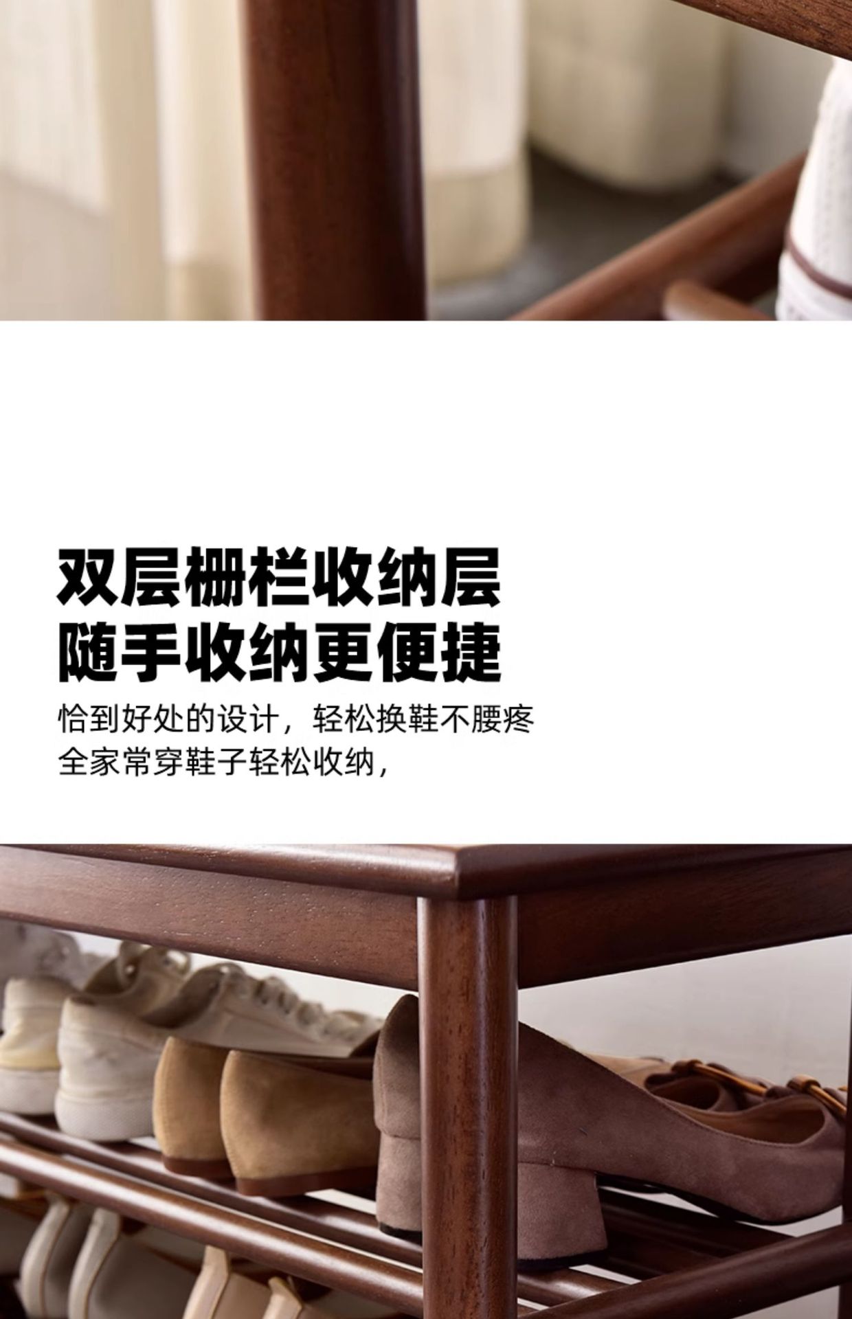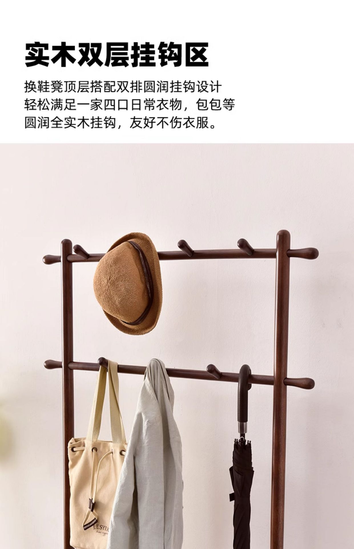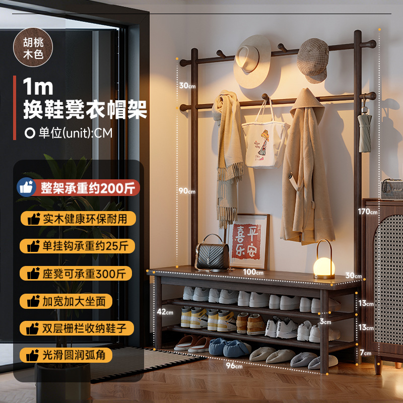 원목 신발 교체대 겸 옷걸이 현관 신발장 겸 의자 신발장 겸 옷걸이 가정용 신발 착화대스토어 가기