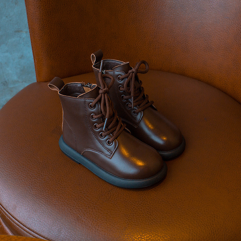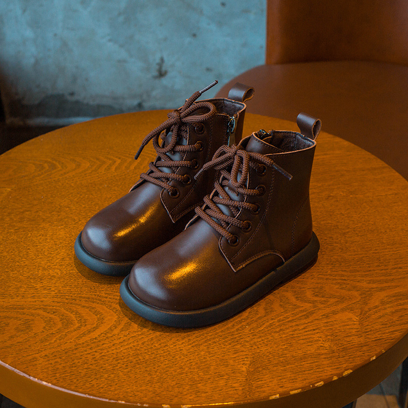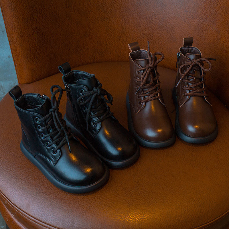 어린이 가죽 부츠 2024 가을 및 겨울 새 소녀 첼시 부츠 캐주얼 학생 마틴 부츠 소년 영국 스타일 어린이 신발